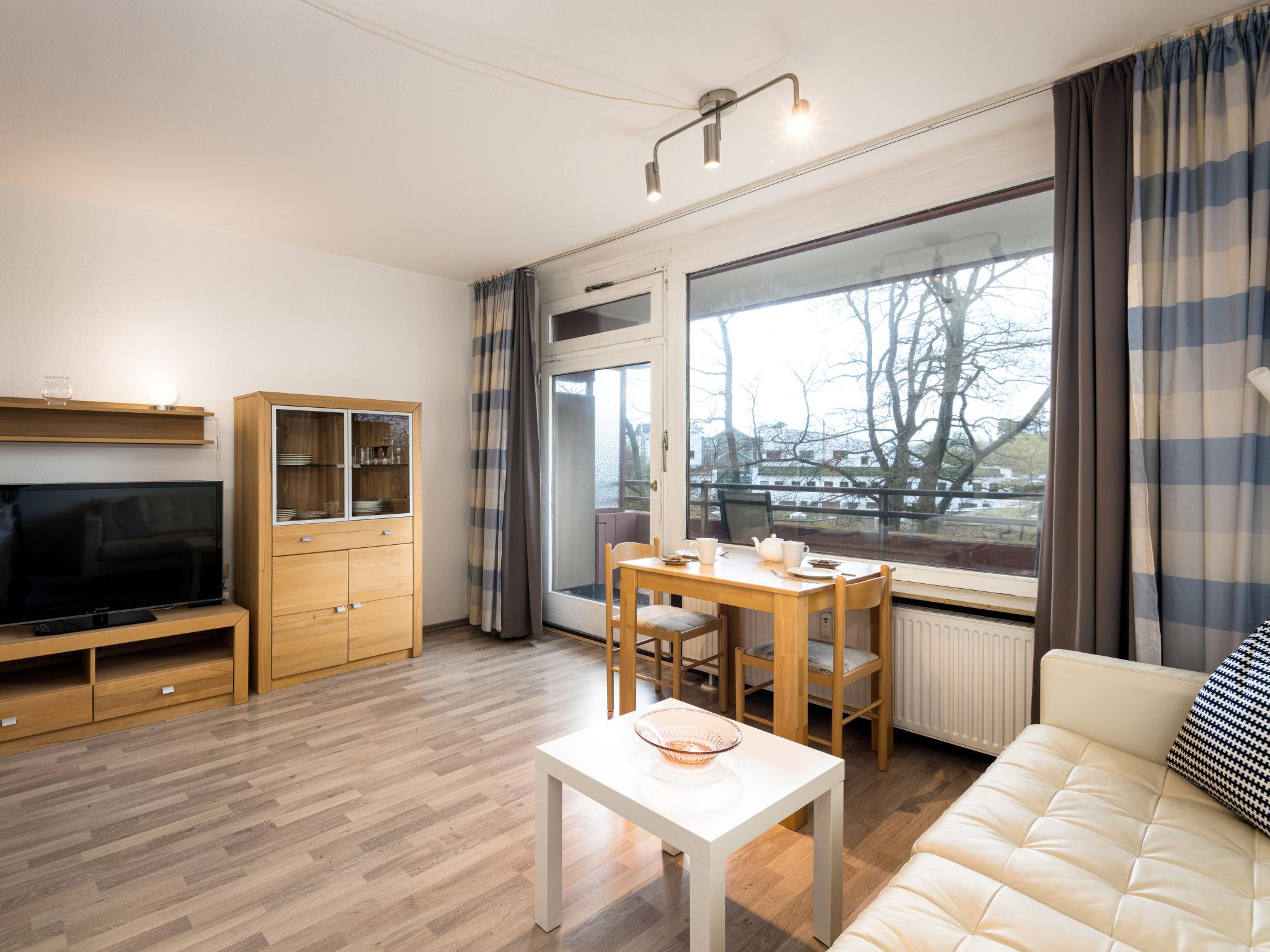 "Fauna (B307)", 1-room apartment 33 m2 on 3rd floor, west facing position. Living/sleeping room with 2 beds (90 cm, length 200 cm), satellite TV. Exit to the balcony. Kitchenette in the entrance (2 ceramic glass hob hotplates, toaster, kettle, electric coffee machine). Bath/shower/WC. Balcony furniture. Facilities: Internet (WiFi, free). Please note: non-smokers only. Maximum 1 pet/ dog allowed. Smoke alarm.