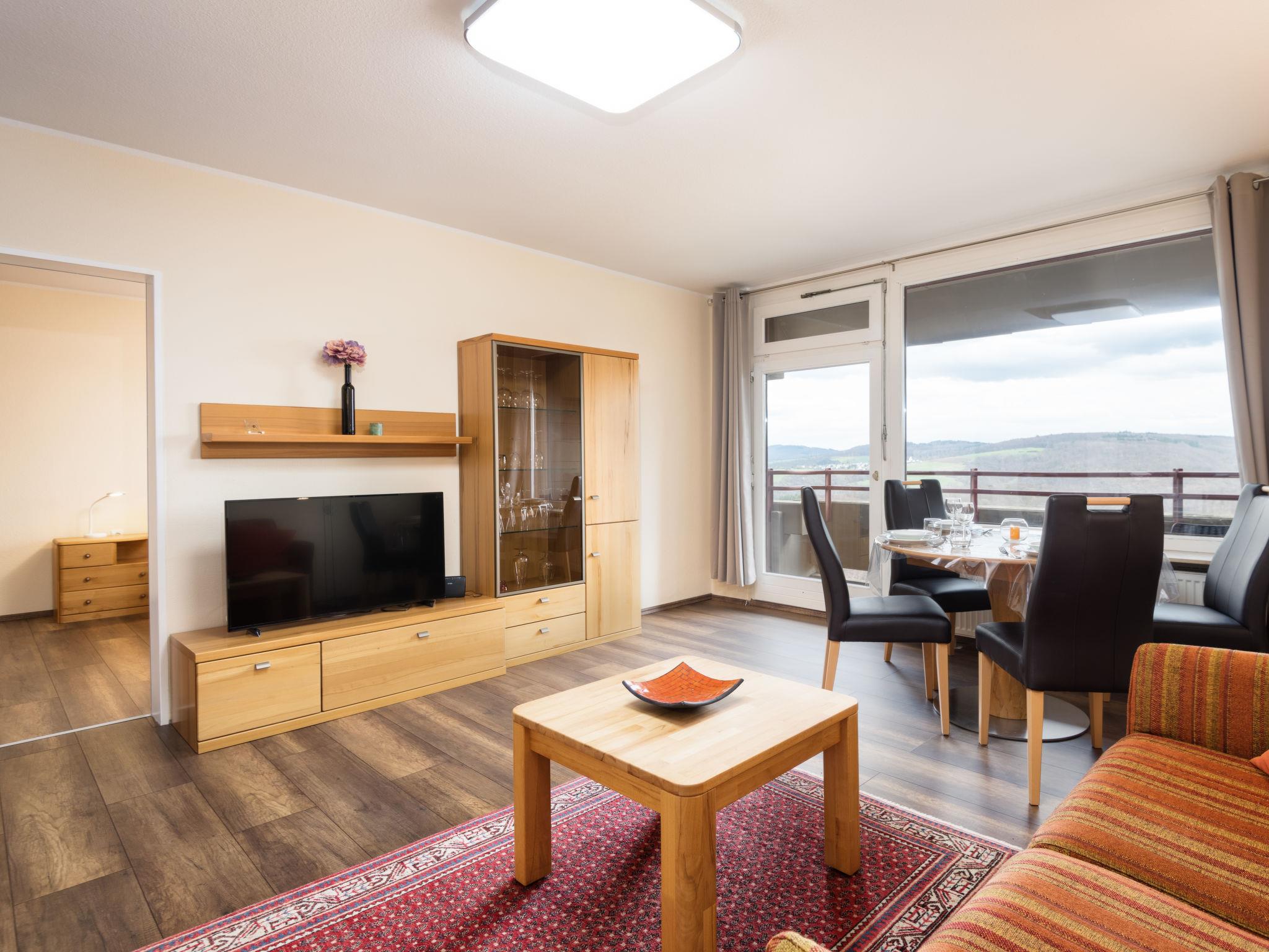 Lahnstein 12 km from Koblenz: Apartment block "Ferienpark Rhein-Lahn". In the district of Lahnstein auf der Höhe 4 km from the centre of Lahnstein, 12 km from the centre of Koblenz, 4 km from the river. For shared use: indoor pool (11 x 6 m, depth 120 cm) with internal staircase. Shower/WC in the pool area. In the complex: reception, WiFi, table tennis, lift, central heating system, washing machine, tumble dryer (for shared use, extra). Parking at the house. E-charging station. Grocery 200 m, supermarket 4.5 km, restaurant 800 m, bakery 4.5 km, bicycle rental 4.5 km, 45 minute walk to the centre, bus stop "Kurklinik" 200 m, railway station "Koblenz (HBF)" 12 km, park "Kurpark" 200 m, outdoor swimming pool 1.5 km, indoor swimming pool 5 km, thermal baths "Emser Therme" 10 km. Golf course (18 hole) 16 km, tennis 500 m, minigolf 6 km, walking paths from the house 100 m, cycle lane 4.5 km, children's playground 100 m. Nearby attractions: Burg Lahneck 3 km, Marksburg 7 km, Deutsches Eck Koblenz / Seilbahn 10 km, Schloss Stolzenfels 13 km. Hiking paths: Lahn-Höhenweg 100 m, Rheinsteig (11) 100 m, Jakobswege Rhein-Lahn. Please note: car recommended. Lahn River 4 km. Boat trips (KD) on the Rhine 4.5 km. Moselle River 10 km. A small kiosk with a small animal enclosure is 300 m away. The Rhein-Lahn holiday park is located 200 m above the town of Lahnstein, in the heart of the 530 km² Nassau Nature Park. It consists of two interconnected apartment buildings and its own Interhome service office. Smoking is permitted on the balconies of the apartments. An 11 kW electric charging station is located in the parking lot. Usage and billing are handled through the Interhome service office.