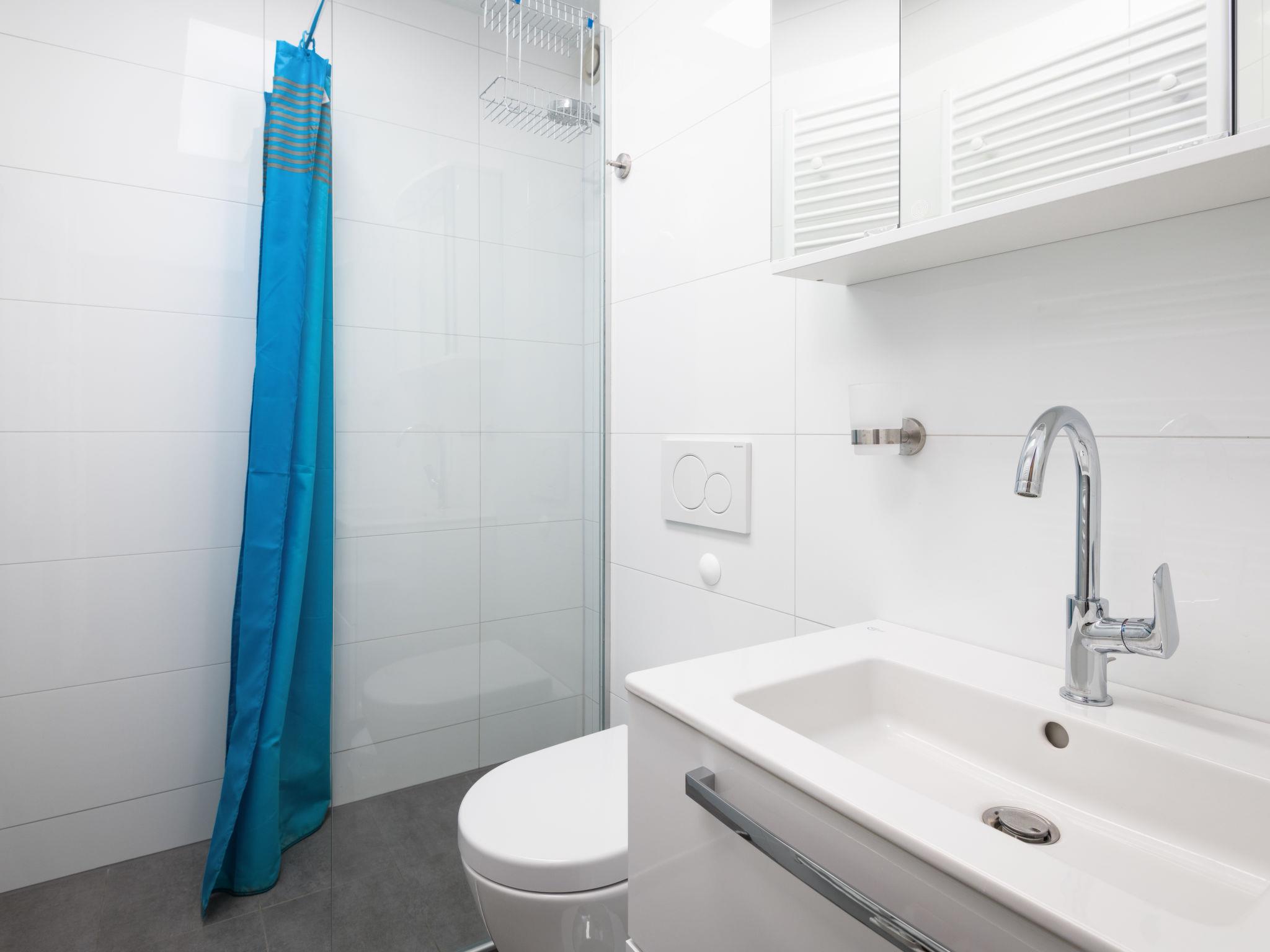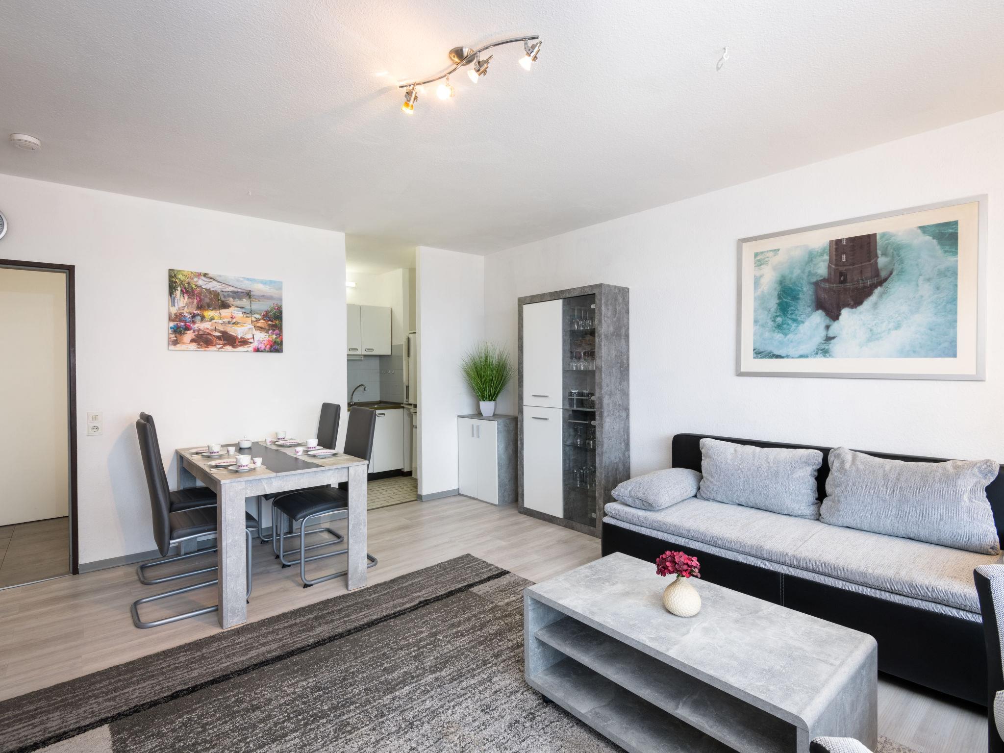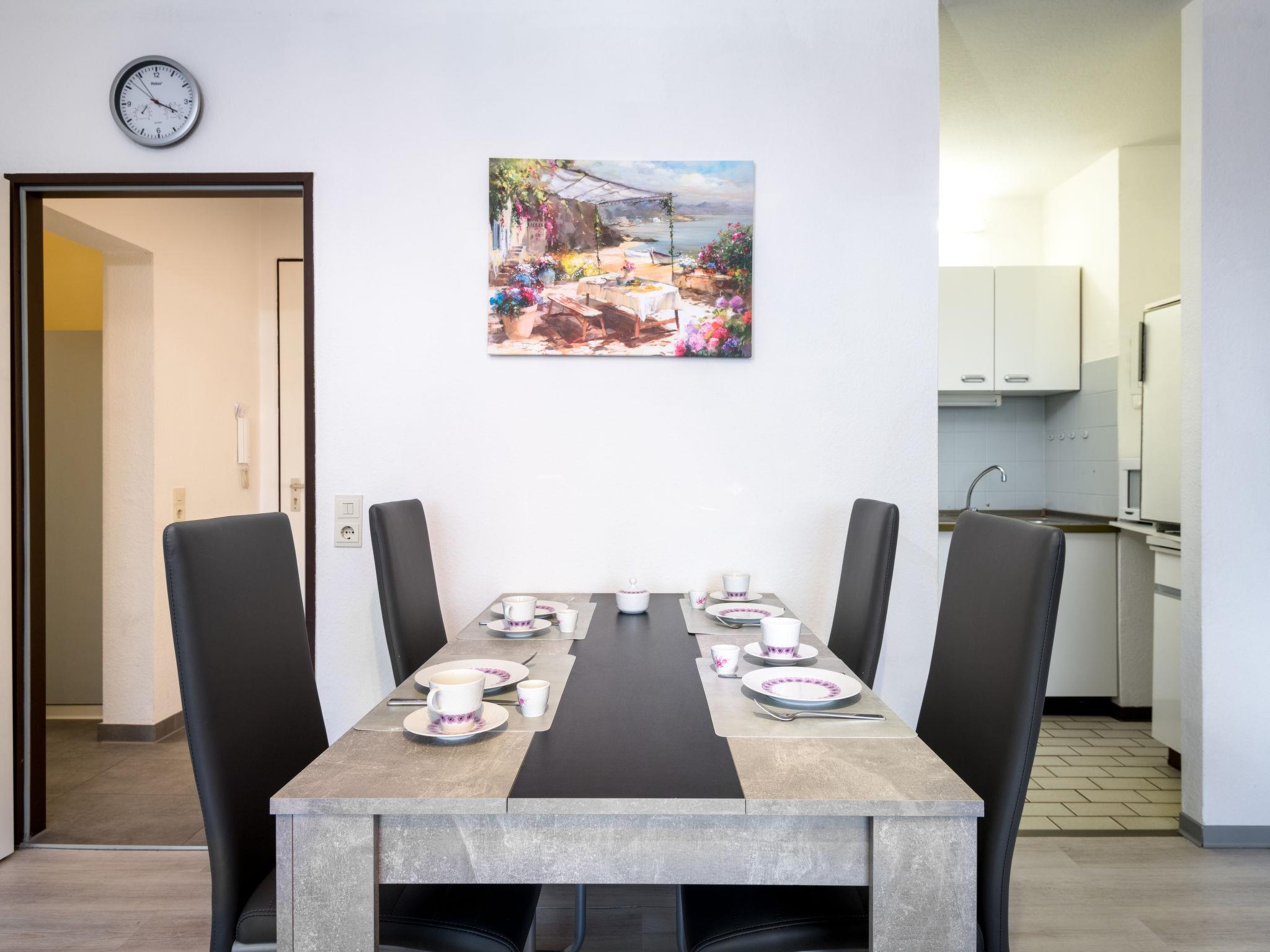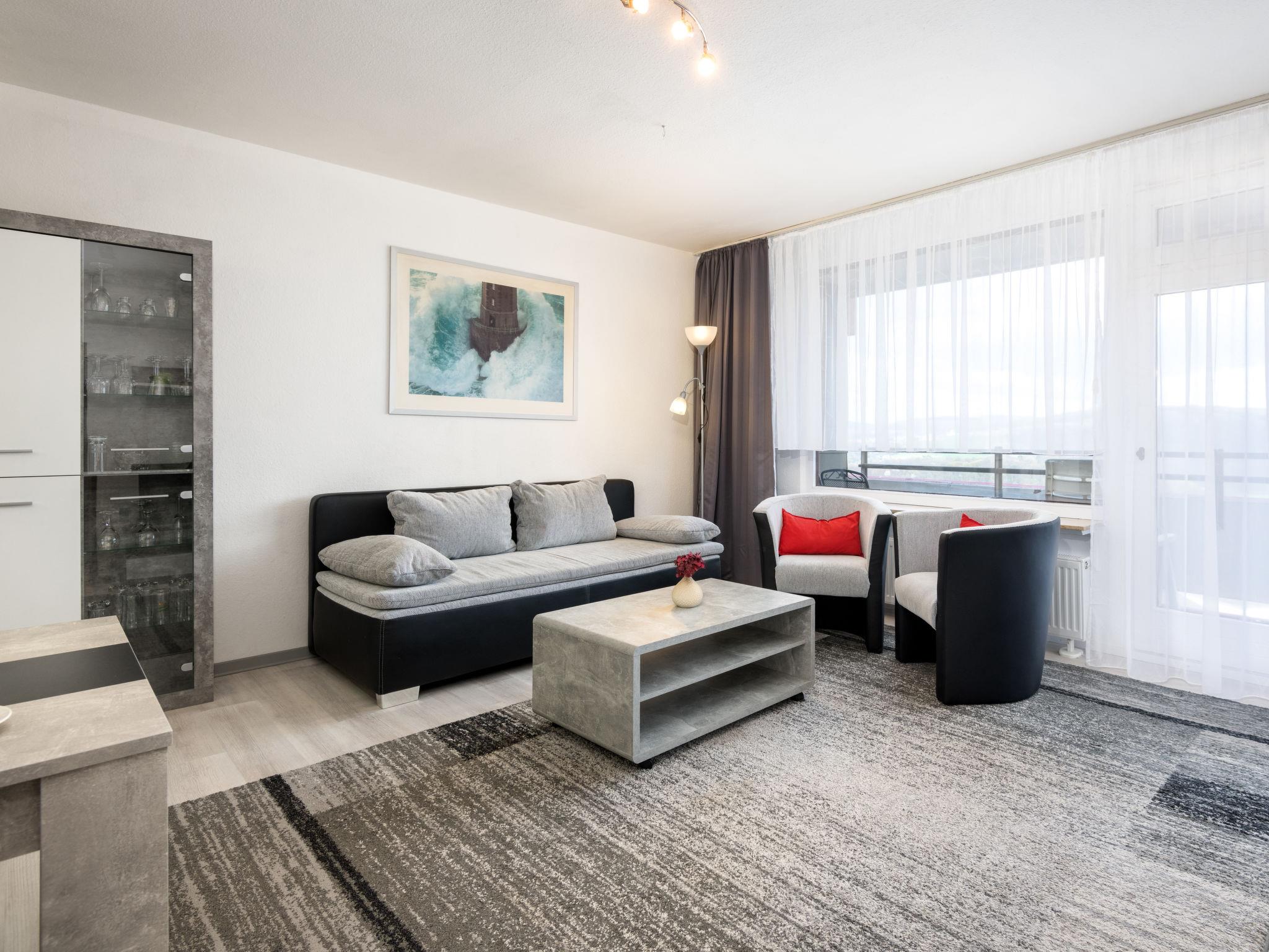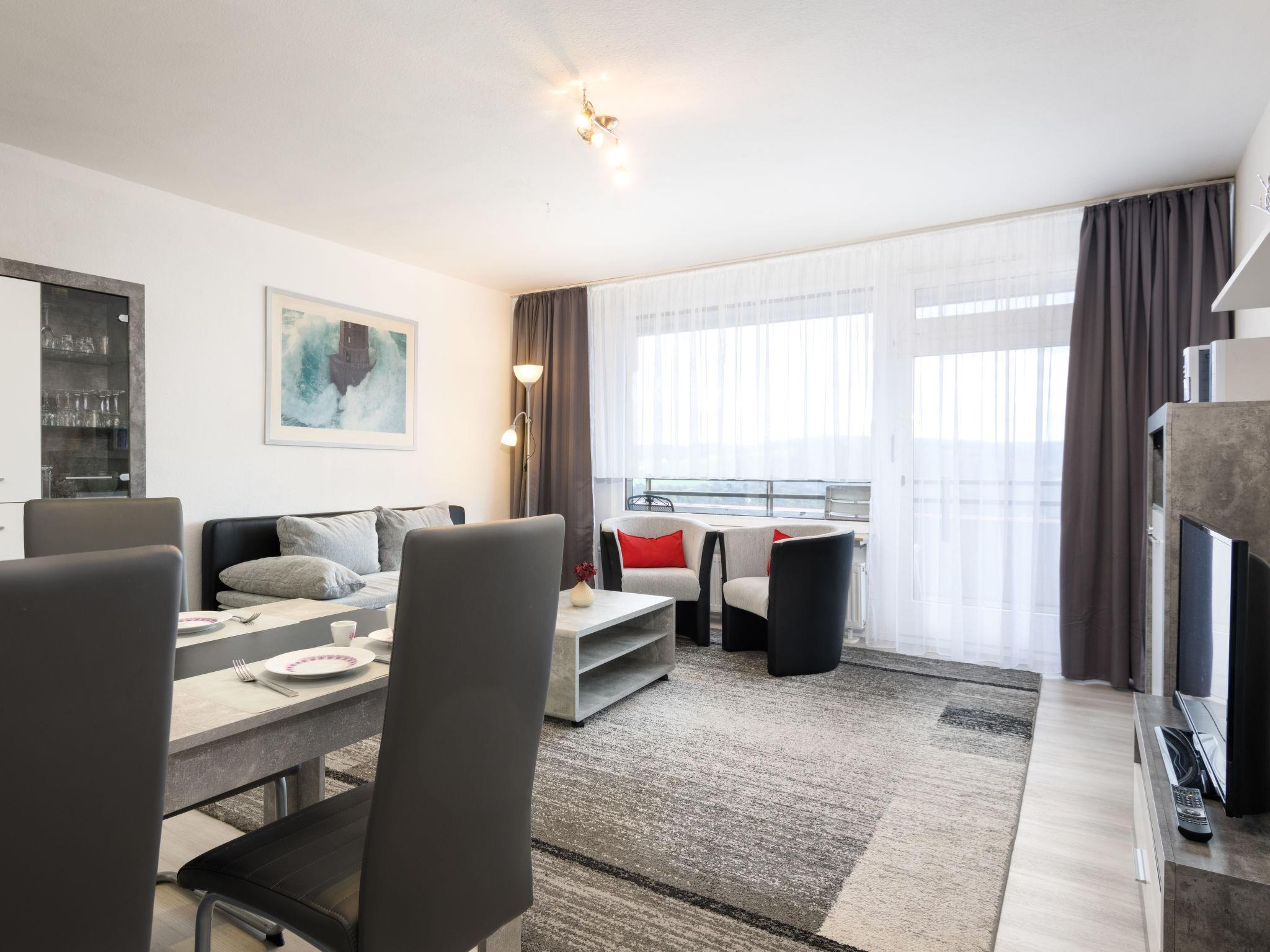 "Waldidylle (A601)", 2-room apartment 56 m2 on 6th floor, east facing position. Modern and tasteful furnishings: living/dining room with 1 double sofabed (160 cm, length 200 cm), satellite TV (flat screen). Exit to the balcony. 1 room with 1 double bed (2 x 90 cm, length 200 cm). Kitchenette (oven, dishwasher, 4 ceramic glass hob hotplates, toaster, kettle, microwave, electric coffee machine). Shower/WC. Balcony furniture. Marvellous panoramic view of the countryside. Facilities: iron. Internet (WiFi, free). Please note: non-smokers only. Maximum 1 pet/ dog allowed. Smoke alarm.