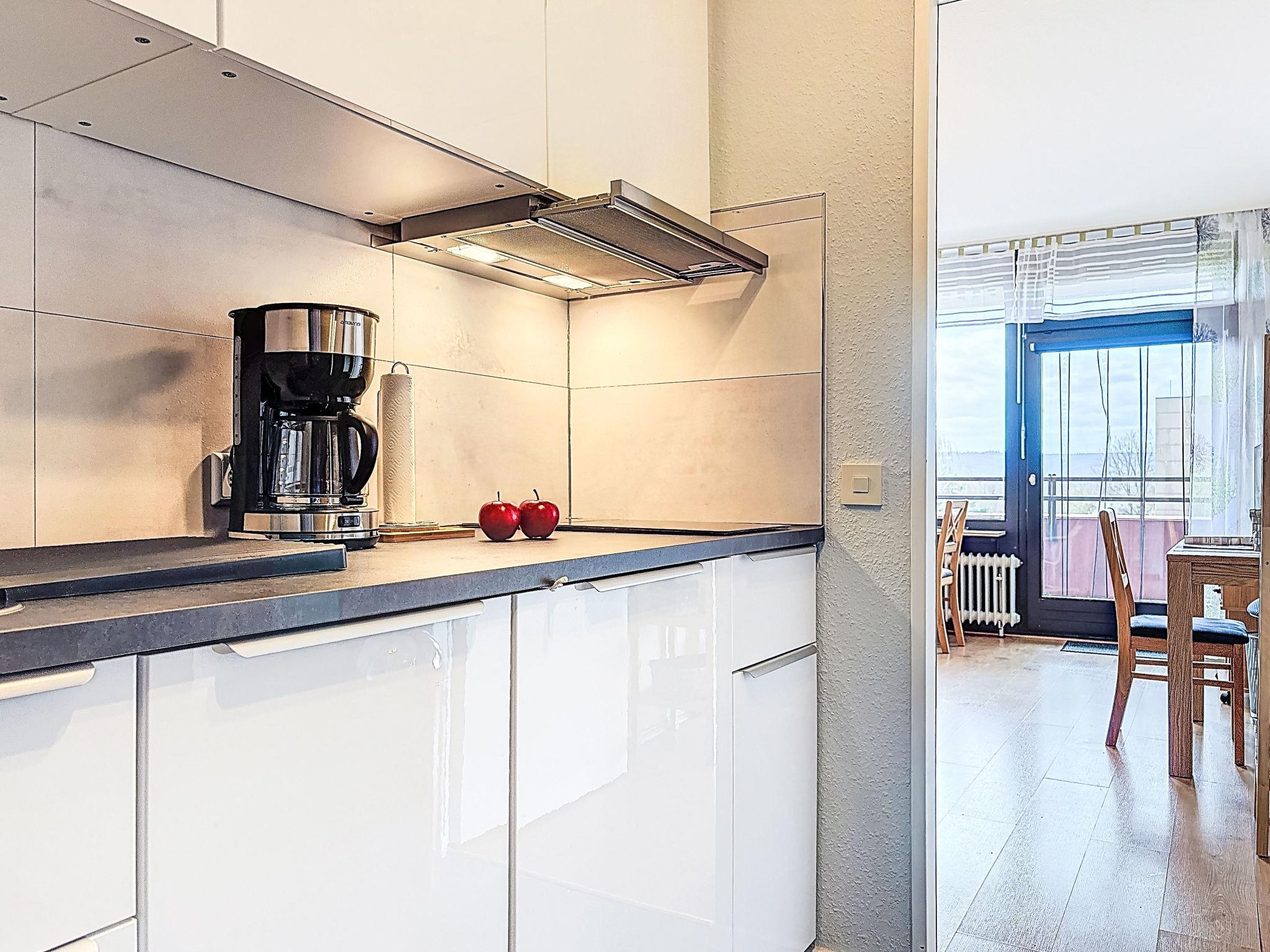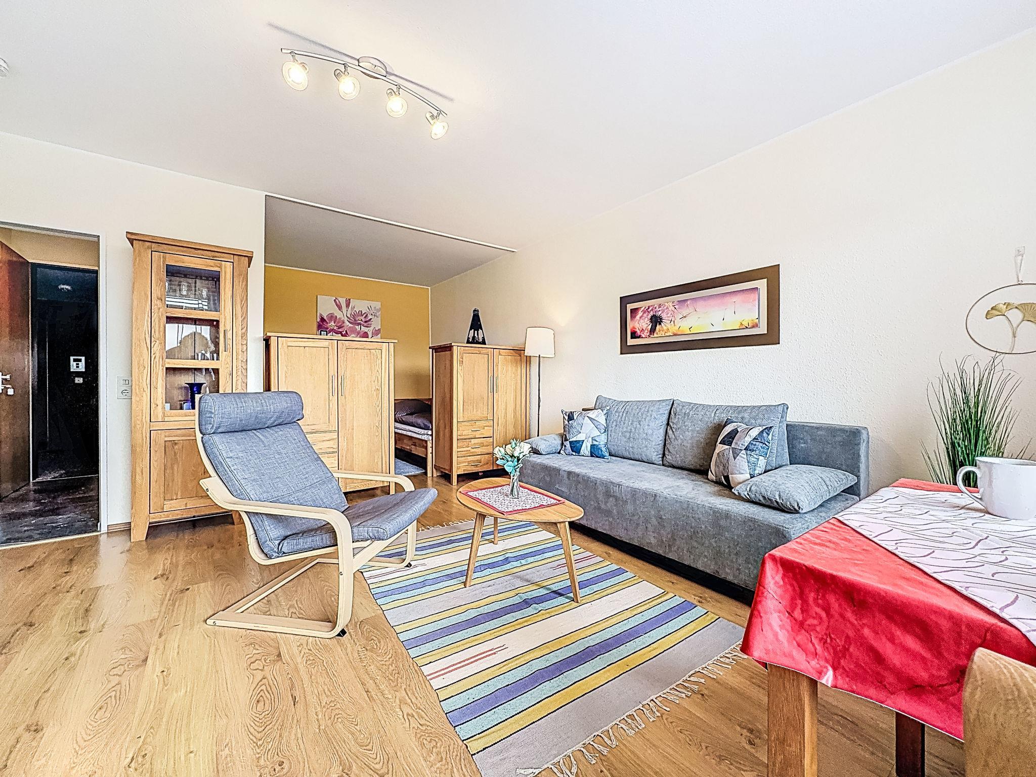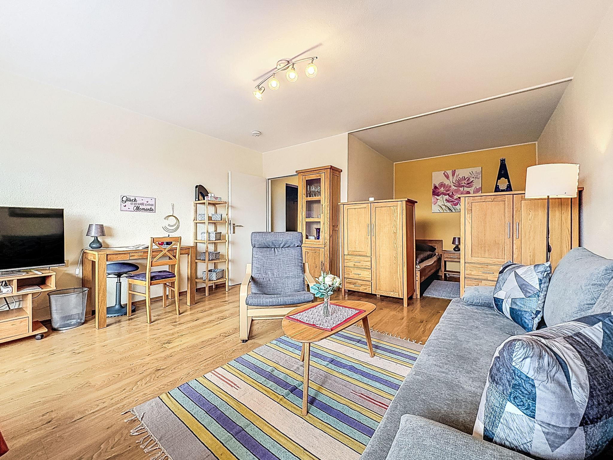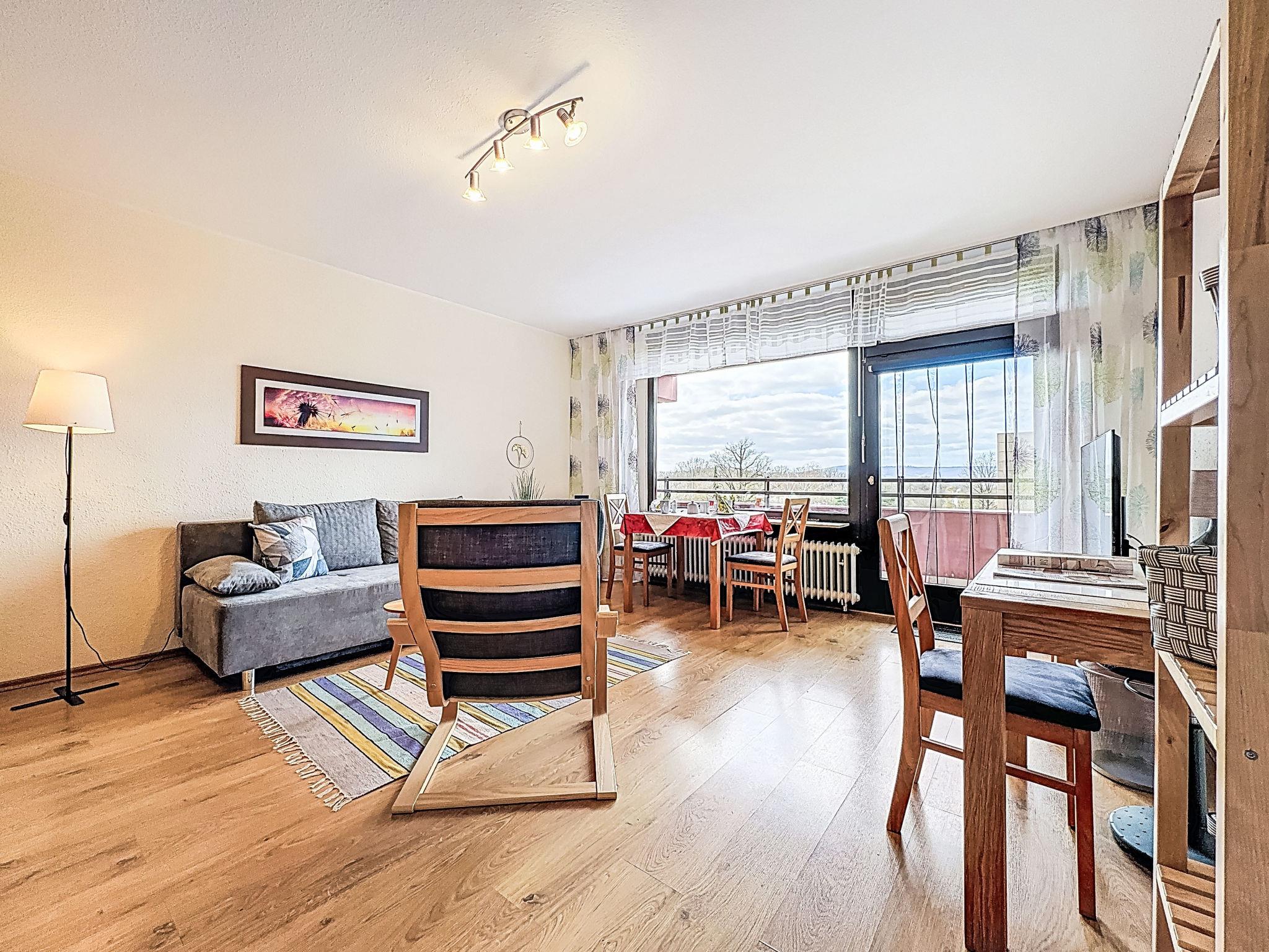"Abendsonne (A507)", 1-room apartment 38 m2 on 5th floor, west facing position. Object suitable for 3 adults. Beautiful and cosy furnishings: living/sleeping room with 1 sofabed (100 cm, length 200 cm), dining table and satellite TV (flat screen). Exit to the balcony. Alcove with 2 beds (100 cm, length 200 cm). Kitchenette in the entrance (dishwasher, 2 ceramic glass hob hotplates, toaster, kettle, microwave, electric coffee machine). Bath/WC. Balcony furniture. Beautiful view of the countryside. Facilities: Internet (WiFi, free). Please note: non-smokers only. Smoke alarm.