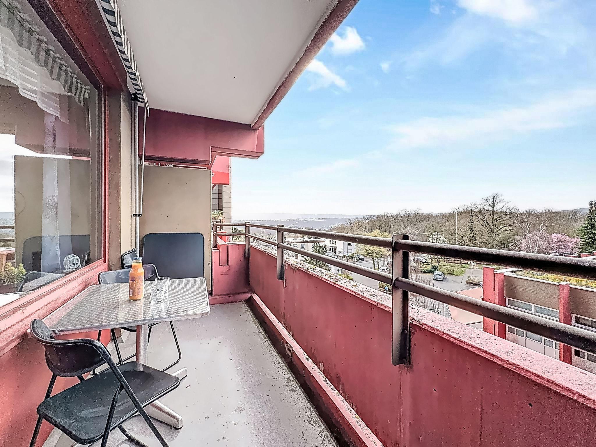 Lahnstein 12 km from Koblenz: Apartment block "Ferienpark Rhein-Lahn". In the district of Lahnstein auf der Höhe 4 km from the centre of Lahnstein, 12 km from the centre of Koblenz, 4 km from the river. For shared use: indoor pool (11 x 6 m, depth 120 cm) with internal staircase. Shower/WC in the pool area. In the complex: reception, WiFi, table tennis, lift, central heating system, washing machine, tumble dryer (for shared use, extra). Parking at the house. E-charging station. Grocery 200 m, supermarket 4.5 km, restaurant 800 m, bakery 4.5 km, bicycle rental 4.5 km, 45 minute walk to the centre, bus stop "Kurklinik" 200 m, railway station "Koblenz (HBF)" 12 km, park "Kurpark" 200 m, outdoor swimming pool 1.5 km, indoor swimming pool 5 km, thermal baths "Emser Therme" 10 km. Golf course (18 hole) 16 km, tennis 500 m, minigolf 6 km, walking paths from the house 100 m, cycle lane 4.5 km, children's playground 100 m. Nearby attractions: Burg Lahneck 3 km, Marksburg 7 km, Deutsches Eck Koblenz / Seilbahn 10 km, Schloss Stolzenfels 13 km. Hiking paths: Lahn-Höhenweg 100 m, Rheinsteig (11) 100 m, Jakobswege Rhein-Lahn. Please note: car recommended. Lahn River 4 km. Boat trips (KD) on the Rhine 4.5 km. Moselle River 10 km. A small kiosk with a small animal enclosure is 300 m away. The Rhein-Lahn holiday park is located 200 m above the town of Lahnstein, in the heart of the 530 km² Nassau Nature Park. It consists of two interconnected apartment buildings and its own Interhome service office. Smoking is permitted on the balconies of the apartments. An 11 kW electric charging station is located in the parking lot. Usage and billing are handled through the Interhome service office.