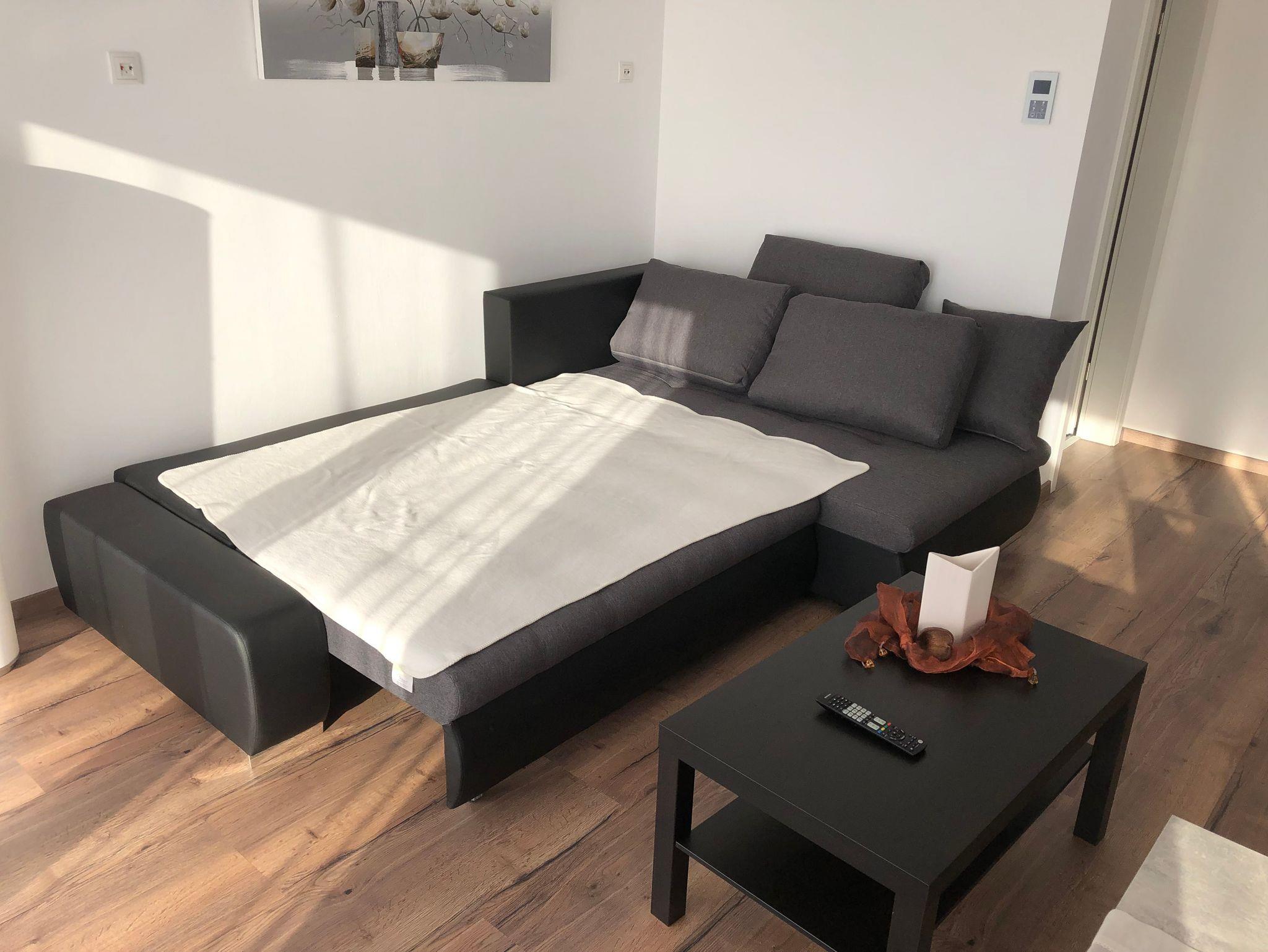 Der Wohnbereich verfügt über eine ausziehbare Schlafcouch um 2 weiteren