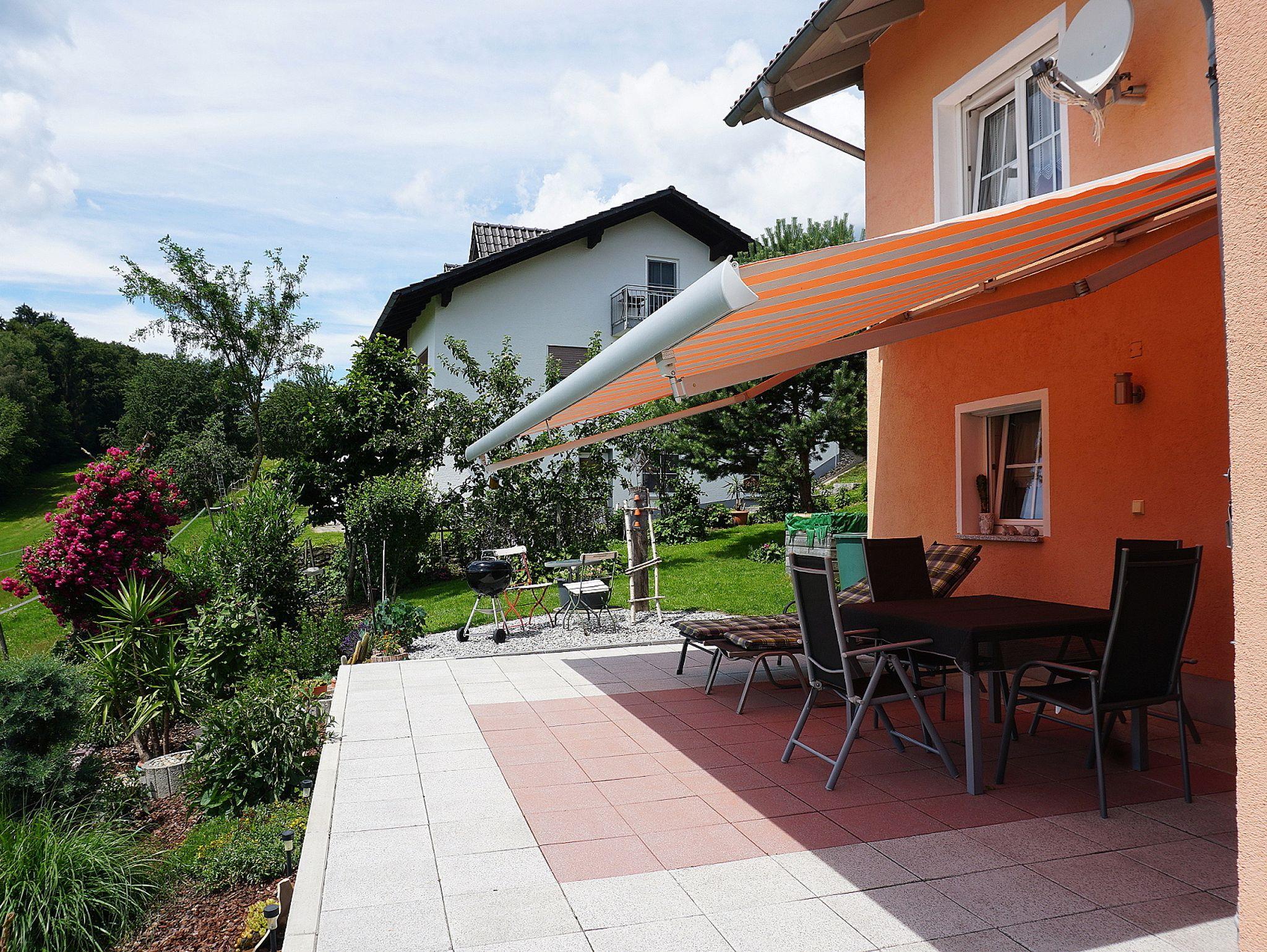 Die große Terrasse ca.50 m² ist mit Gartenmöbel ausgestattet und mit einer Markise beschattet, genießen Sie den herrlichen Panoramablick, mit etwas Glück an manchen Tagen bis zu den Alpen.