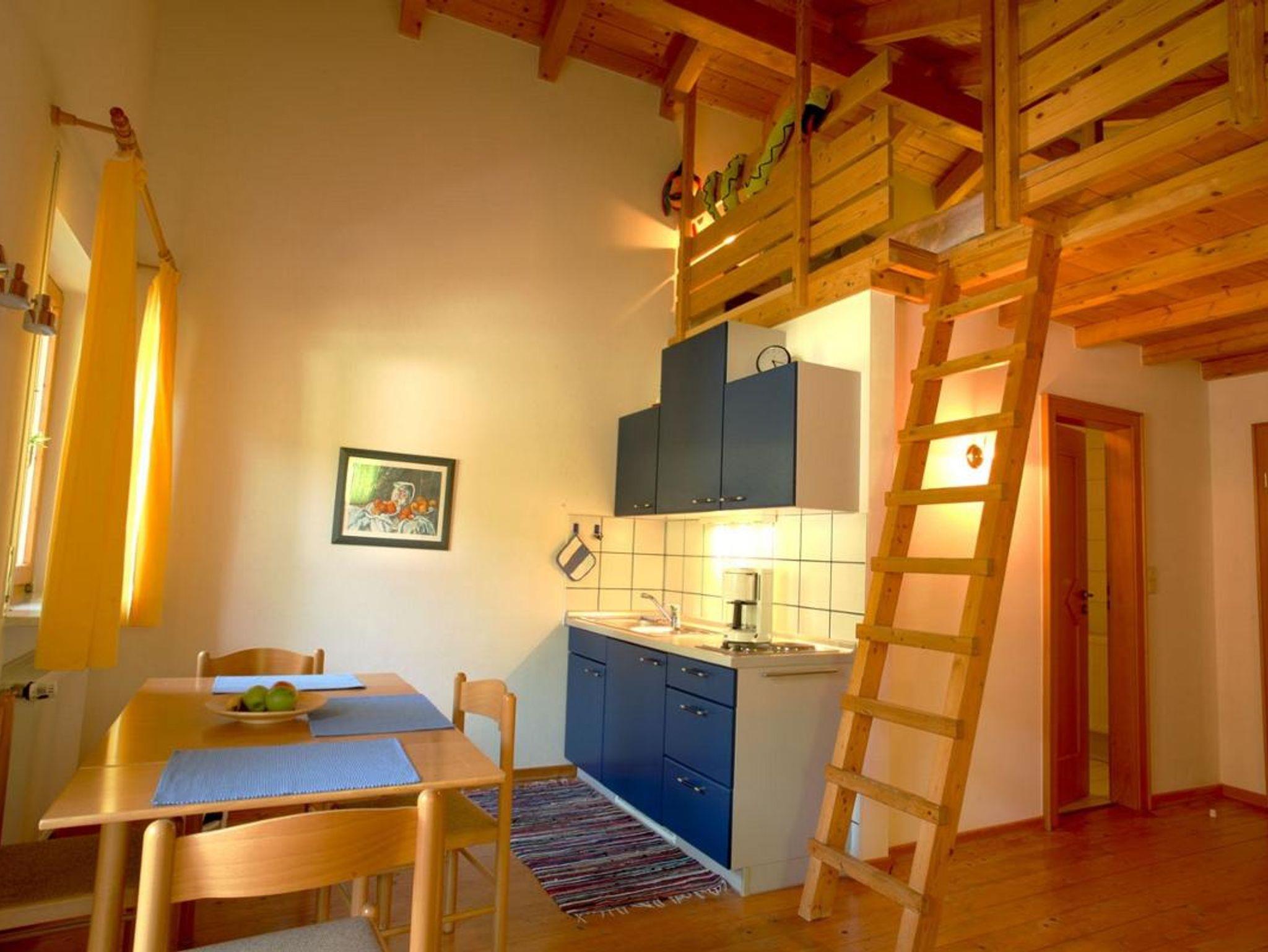 Im Apartment 6 liegen Wohn- und Schlafbereich auf einer Ebene. Zusätzlich verfügt Apartment 6 über eine Galerie mit 2 Schlafplätzen. Das Apartment liegt nach Osten und hat einen Balkon
