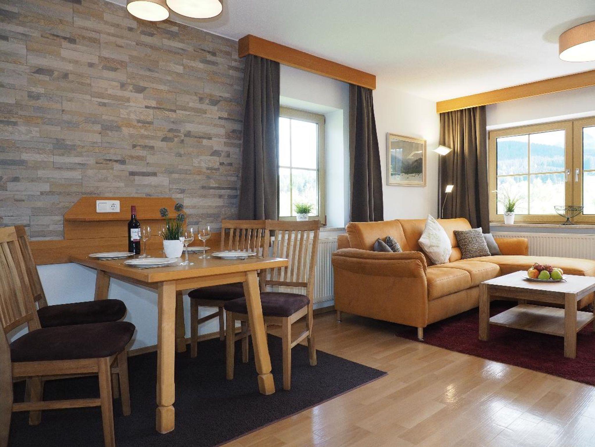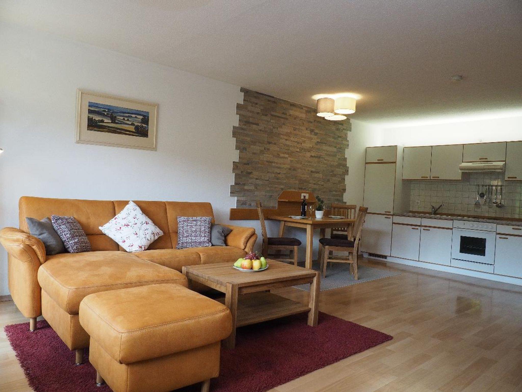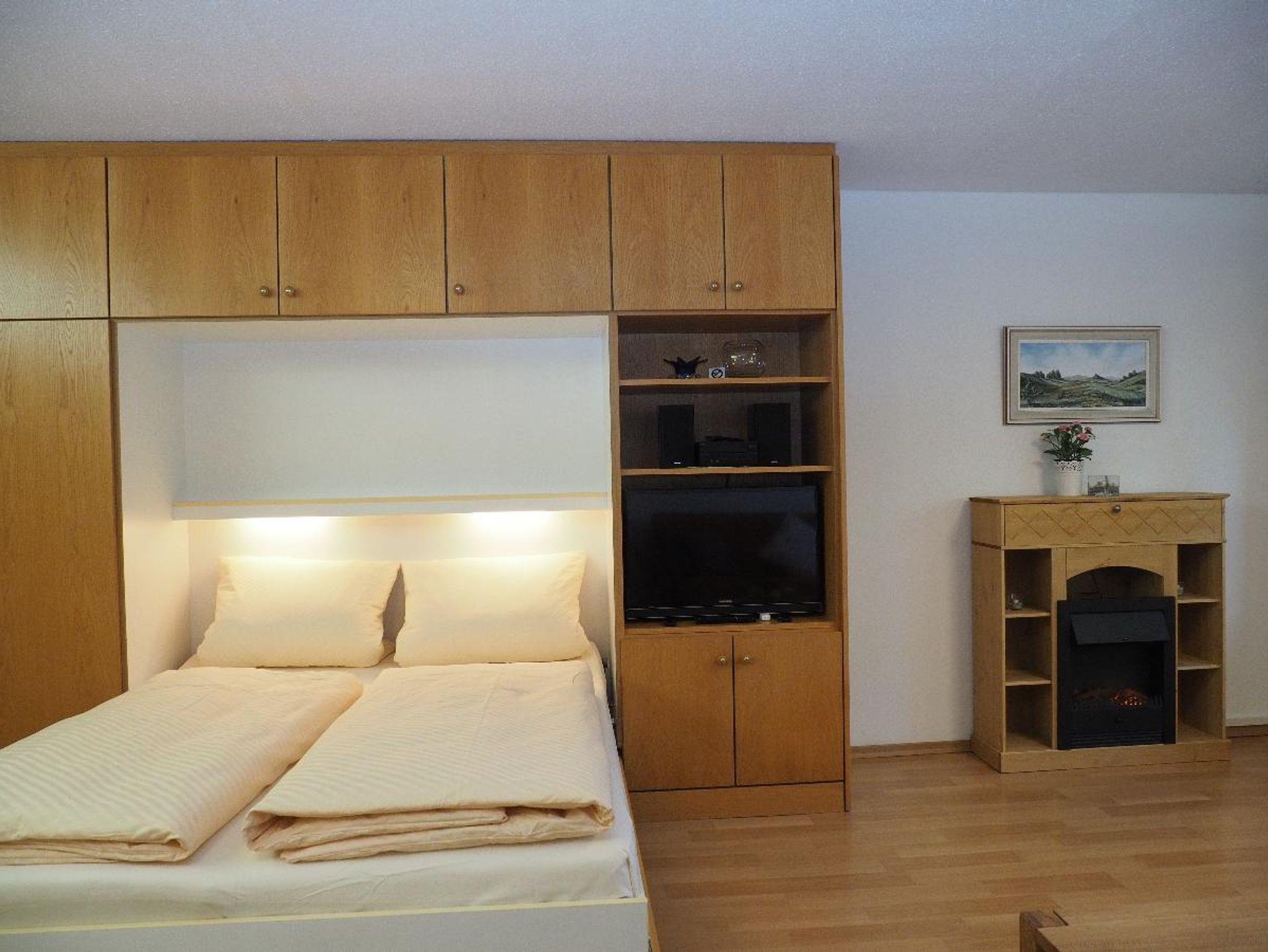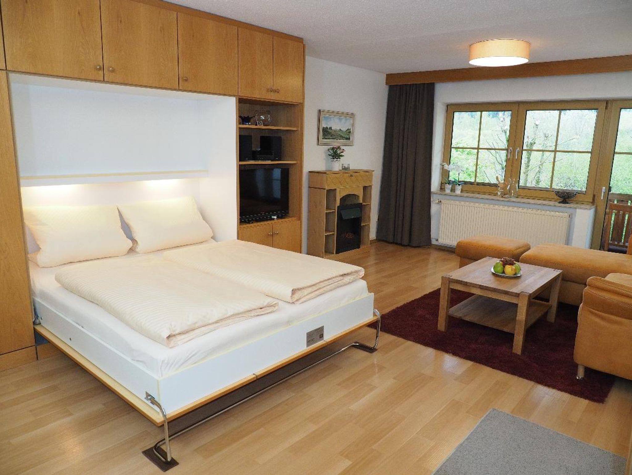 Unser 2-Zimmer-Appartement für bis zu 4 Personen bietet Ihnen neben einem kombinierten Wohn- und Schlafraum mit verstaubaren Betten ein separates Schlafzimmer, eine komplett ausgestattete Küche mit Spülmaschine und Mikrowelle, Bad mit WC sowie ein separates WC, Flachbild-TV mit Sat-Anschluss, Kamin, DAB+-Stereoanlage mit CD und USB-Anschluss sowie einen reservierten KFZ-Stellplatz.