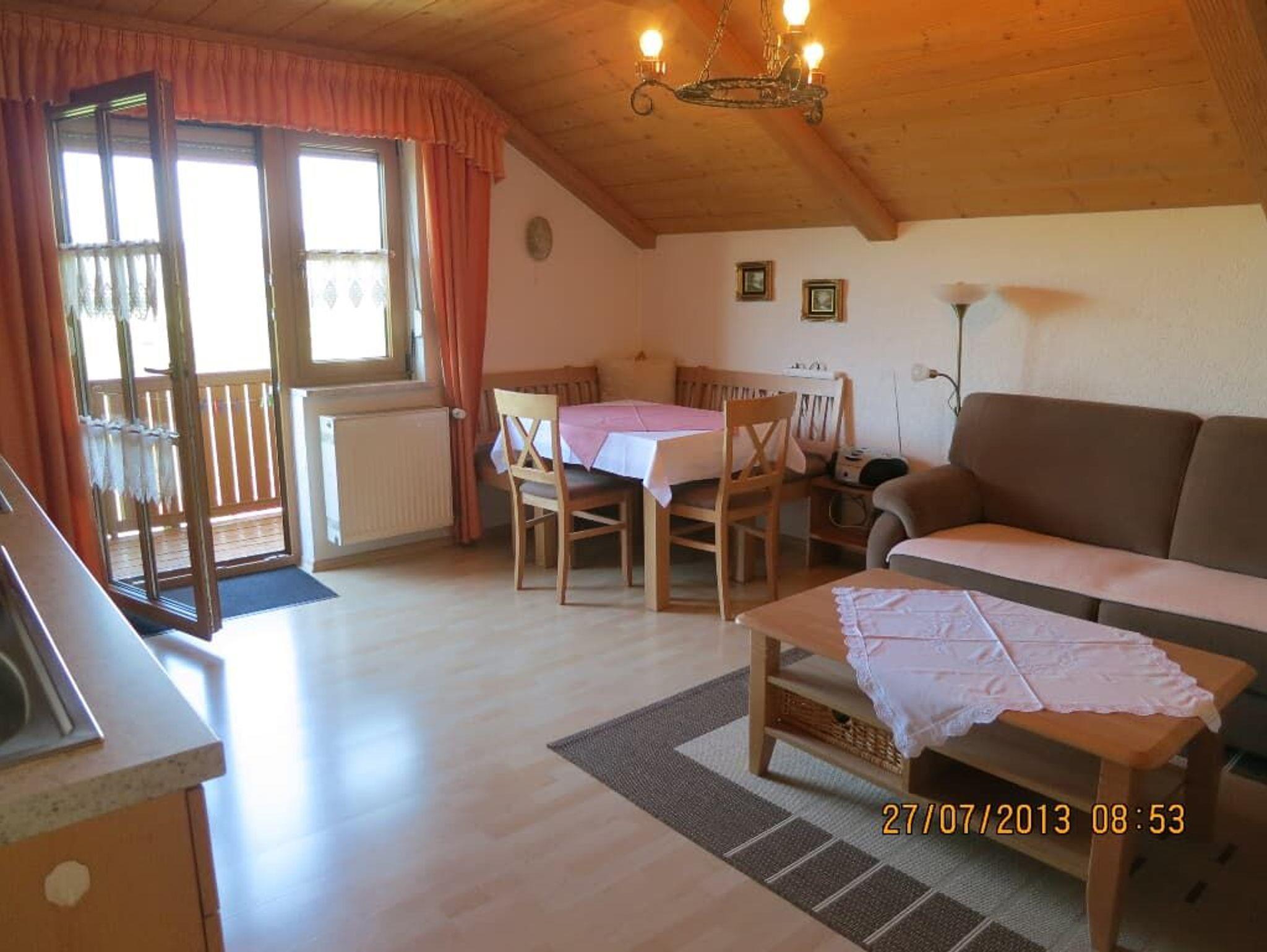 Unsere Ferienwohnungen sind liebevoll eingerichtet. In jeder Wohnung steht eine große Couchgarnitur mit Tisch Die Wohnungen haben alle einen großen Balkon mit Tisch und Stühlen.1 Wohnung Waldesruh befindet sich in einem anderen Haus, am Waldrand in Lam gelegen.