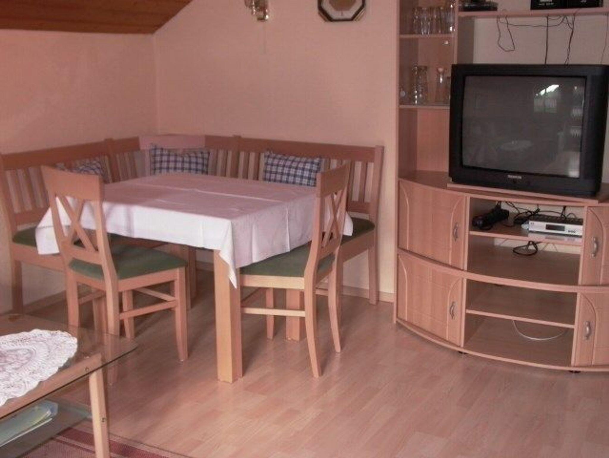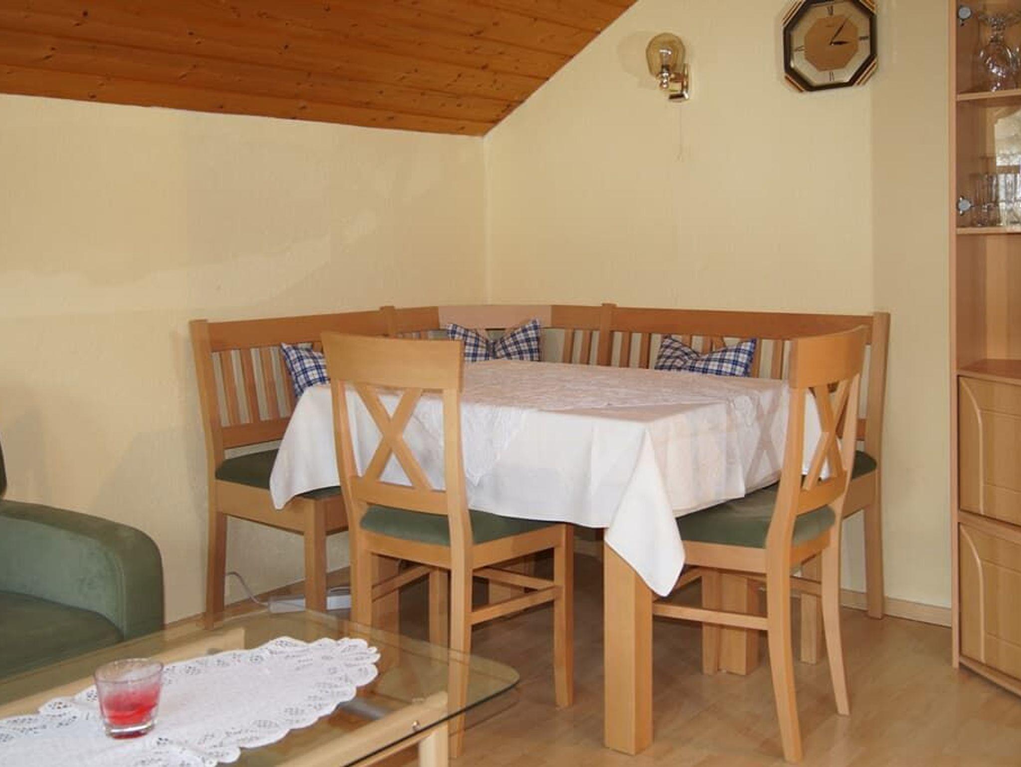 Ruhige,sonnige Ferienwohnung auf der Südseite von Lam, zentrumsnah gelegen. Zeitgerechte Ausstattung mit vielen Extras.2 Doppel- Schlafzimmer, Küchenzeile mit Spülmaschine, Herd m. Backofen,Mikrowelle, Kühlschrank mit Gefrierfach. Essecke mit Eckb. Tisch und Stühle, Eckcouch mit kl. Tisch, Sat TV, Stereoanlage, Telefon mit wichtigen, gespeicherten Nummern.Neu: W-lan. Dusche mit WC. Großer, gut überdachter Balkon. Im Preis enthalten sind: Bett- und Tischwäsche, Hand-, Dusch- und Geschirrtücher, Strom, Heizung und, falls Sie Lust haben, eine Pferdekutschen- oder -schlittenfahrt. Brötchenservice, Kinderbett, Hochstuhl.