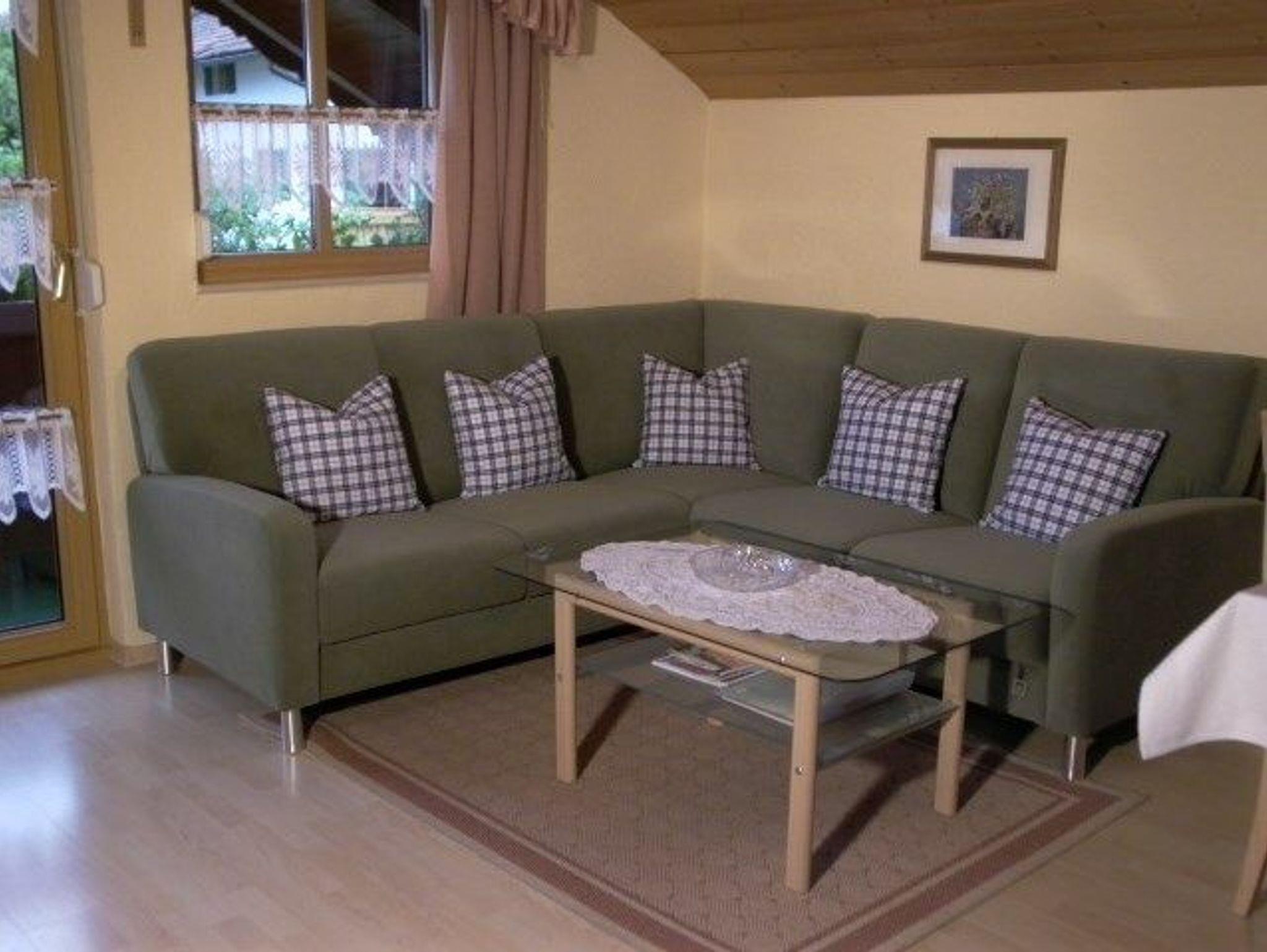 Unsere Ferienwohnungen sind liebevoll eingerichtet. In jeder Wohnung steht eine große Couchgarnitur mit Tisch Die Wohnungen haben alle einen großen Balkon mit Tisch und Stühlen.1 Wohnung Waldesruh befindet sich in einem anderen Haus, am Waldrand in Lam gelegen.