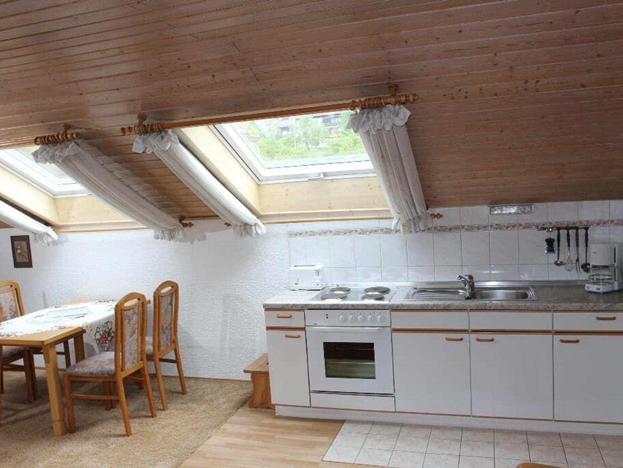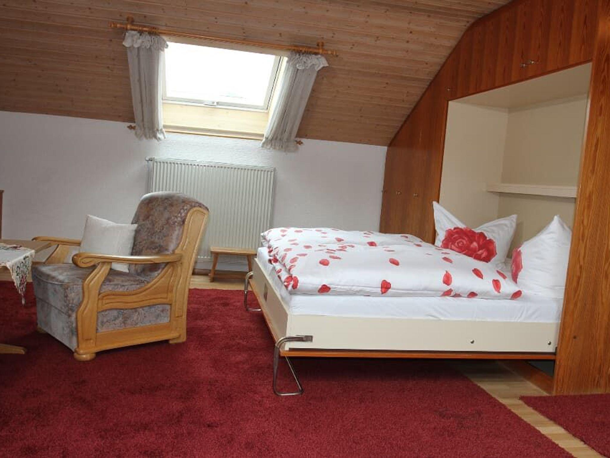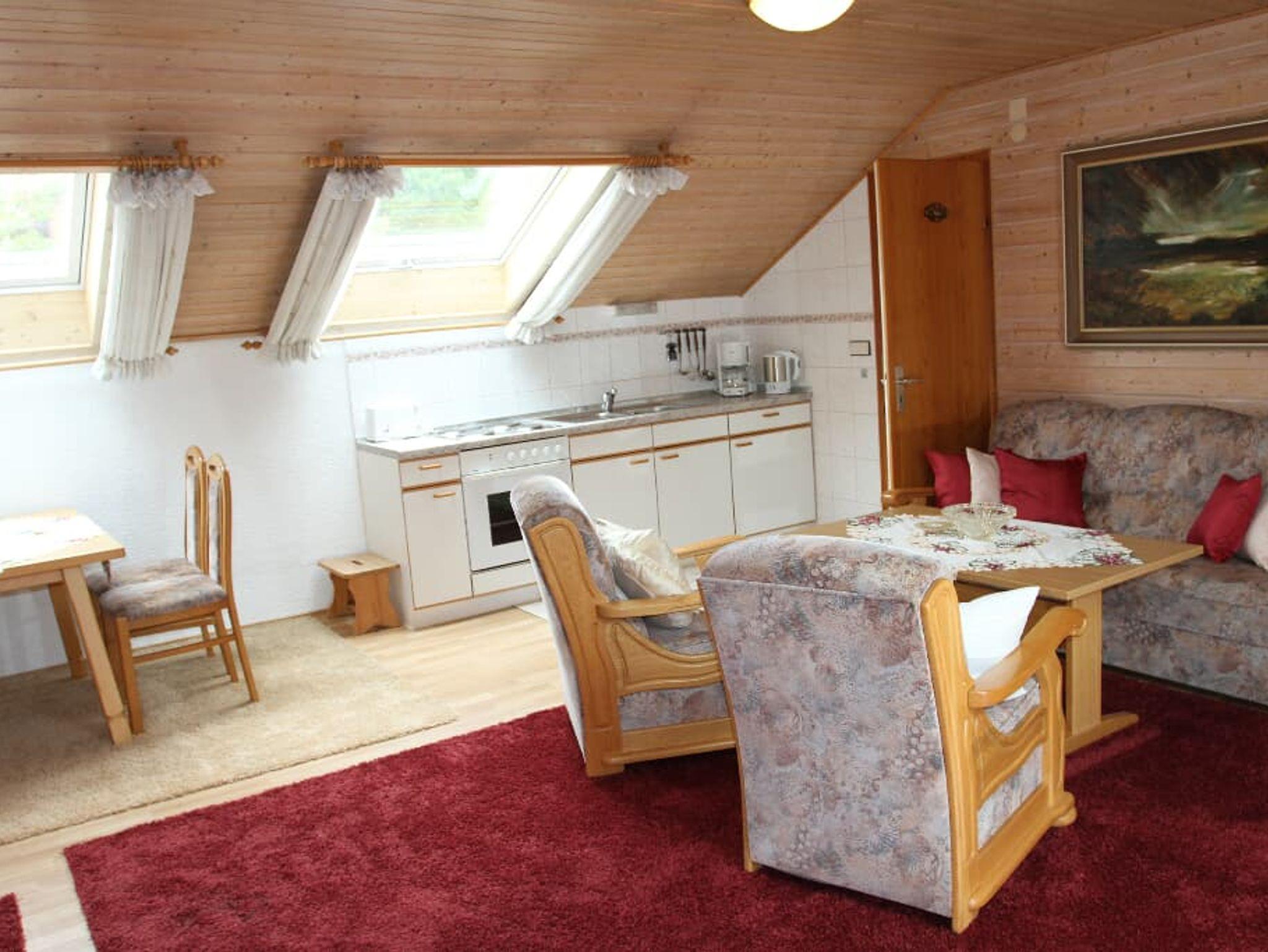 2-Zimmerappartement im Dachgeschossmit Blick in den Garten, Hausberge Osser und Arber
