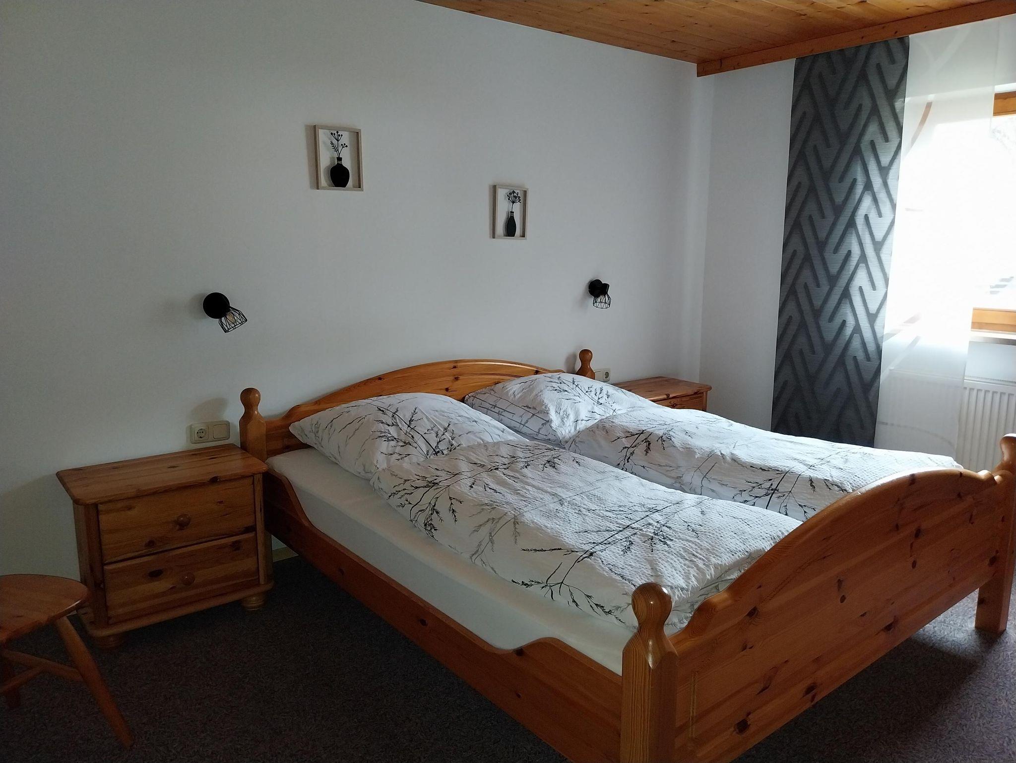 Unsere gemütliche Ferienwohnung mit Balkon zur Südseite bietet Ihnen einen herrlichen Ausblick! Der große Wohnraum mit Küchenzeile, Essecke und Sitzecke (TV mit Sat-Anschluss), die beiden Schlafzimmer (jeweils mit Doppelbett) und ein Bad mit Dusche und WC bieten genug Platz für 1-4 Personen. Separater Eingang.