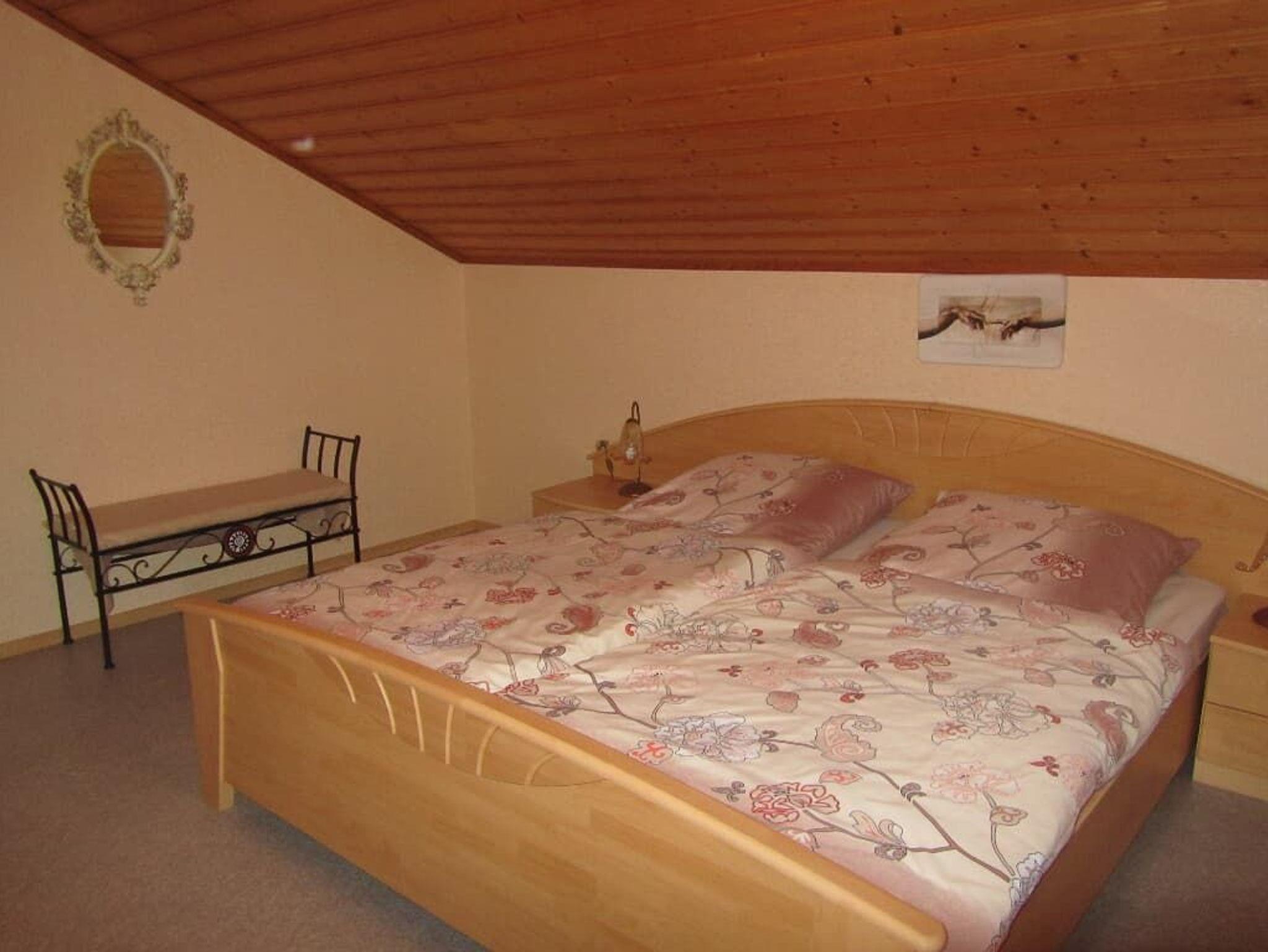 Folgende Räumlichkeiten stehen zur Verfügung: Küche: Kühlschrank mit Gefrierfach, E-Herd (Cerankochfeld) mit Backofen, Geschirrspüler, Mikrowelle, Eierkocher, Toaster, Kaffeemaschine, Wasserkocher, Esstisch, Stühle, Sat-TV (Flachbild), Geschirrtücher, Tischwäsche, Putzutensiliien Wohnzimmer: Couch, Couchtisch, Sideboard SatTV(Flachbild) Schlafzimmer: 2 Doppelzimmer, 1 Einzelzimmer (Betten bezogen) Dusche/WC, Handtücher, Duschtücher, Handtuchtrockner. Balkon von Küche aus begehbar, Wlan Kinderreisebett inclusive Bettwäsche, Kinderzustellbett 70x140 inclusive Bettwäsche Hochstuhl, Sandkasten, Nestschaukel, Rutsche, Spielzeug