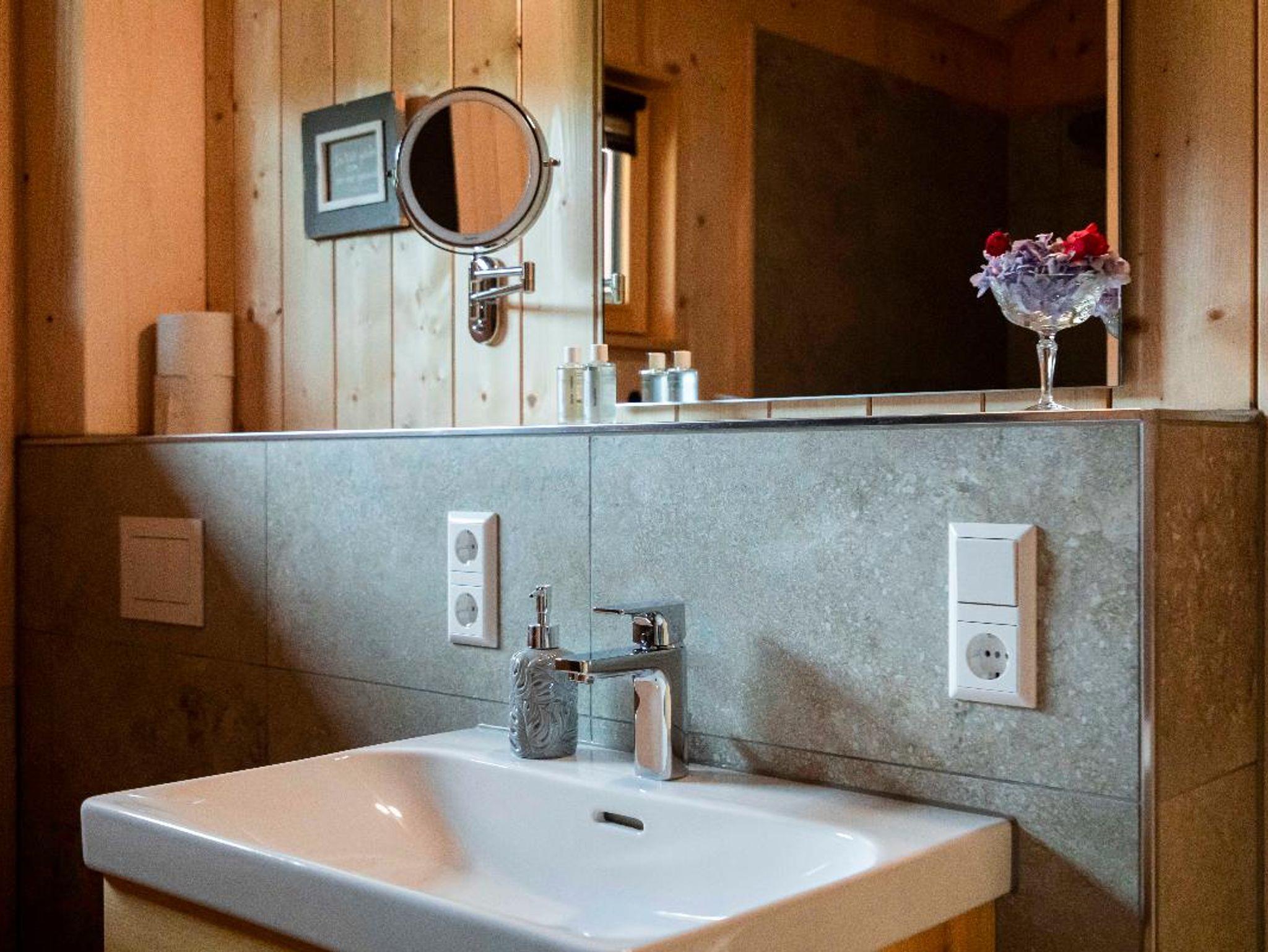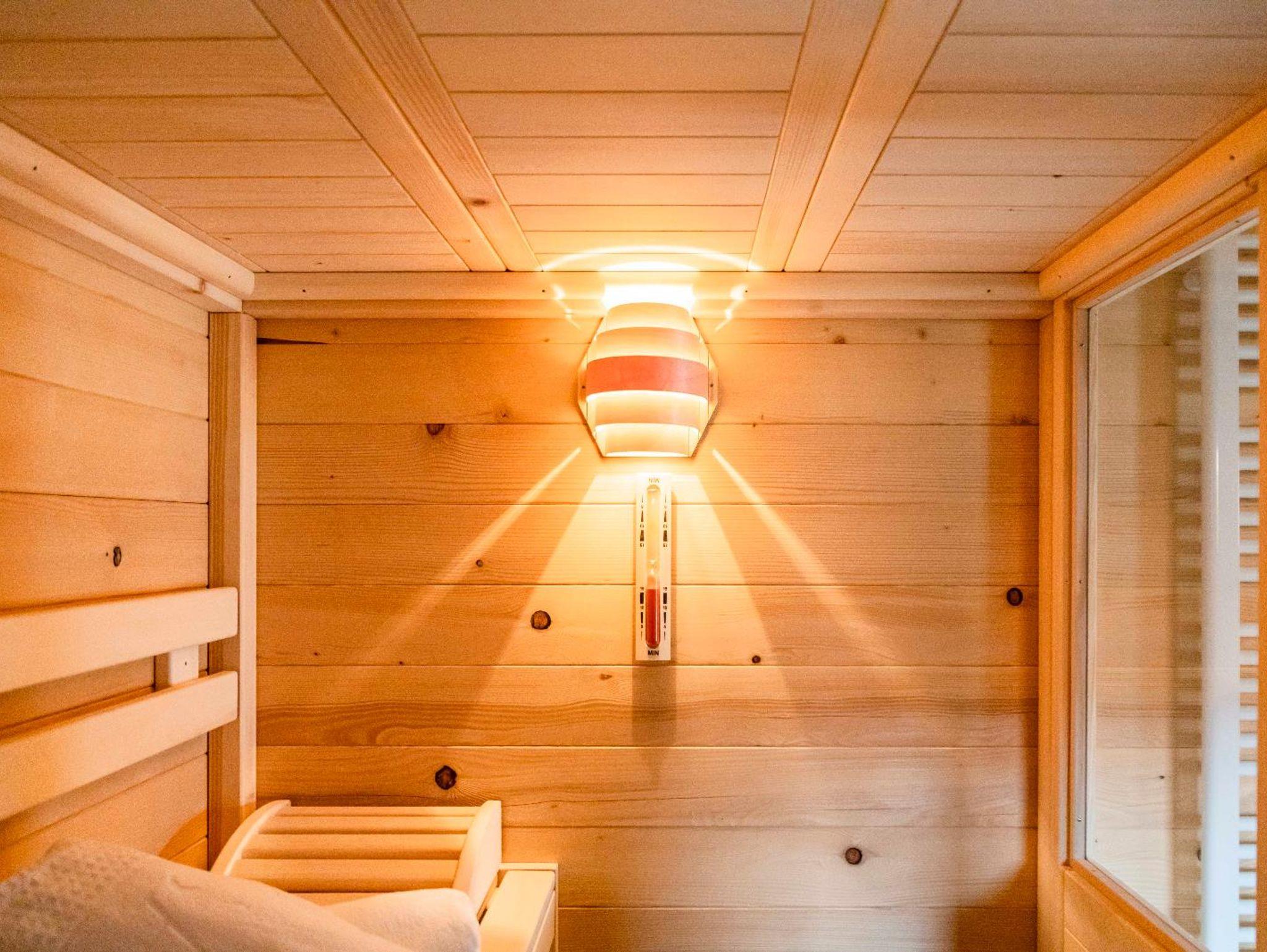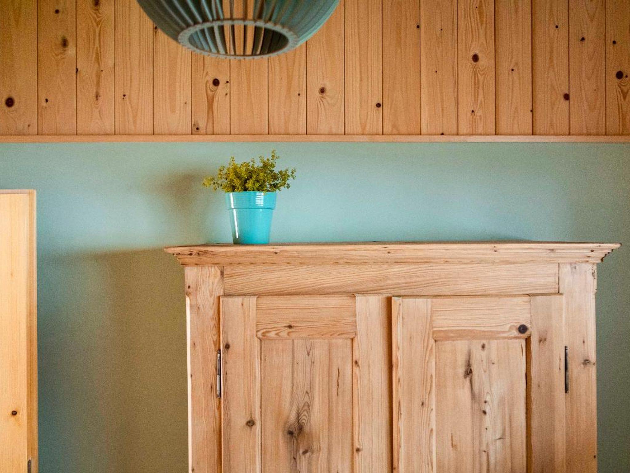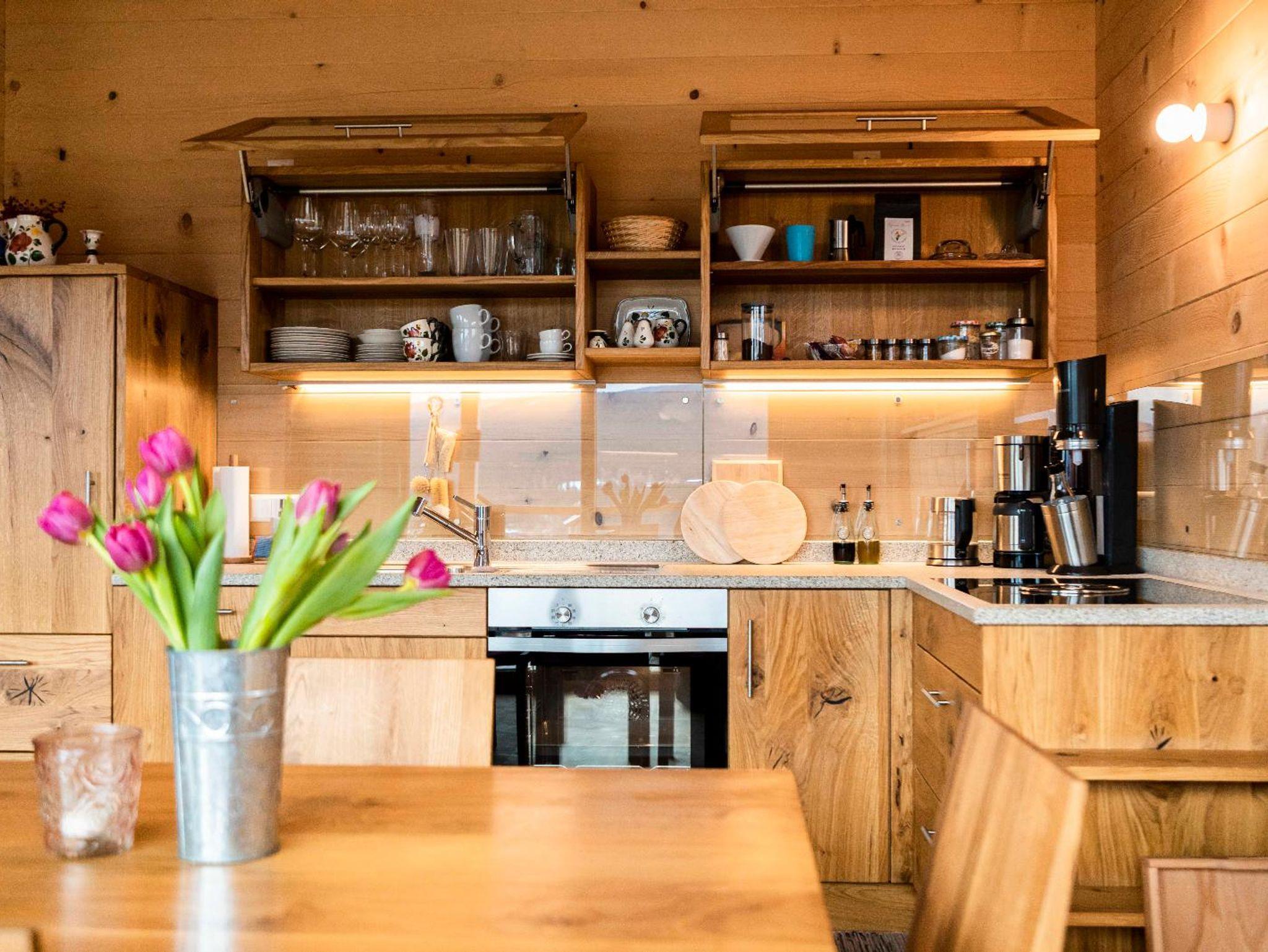 Die Vollholzküche aus unserem eigenen Eichenholz verfügt über Kochfeld mit BORA-Abzug, Backofen, Kühlschrank inkl. Gefrierfach und Spülmaschine. Im Wohnzimmer finden Sie eine gemütliche Couch mit Schlaffunktion, einen kleinen Schreibtisch, Flat-TV und Radio. Das Badezimmer ist mit Finnischer- und Bio-Sauna, Regendusche und Fußbodenheizung ausgestattet. Im Schlafzimmer sorgen unbehandelte Möbel, Doppelbetten ohne Metall (1,80 m x 2,00/2,10 m) sowie abgeschirmte Nachttischlampen, Naturlatexmatrazen und ökologische Bettwaren für eine gesunde Atmosphäre. Unsere großzügige, überdachte Panorama-Terrasse mit Sitzmöglichkeit und zwei hölzernen Ruheliegen lädt zum Faulenzen und Genießen ein. Das Highlight im Außenbereich ist die Feuerwassertasse.