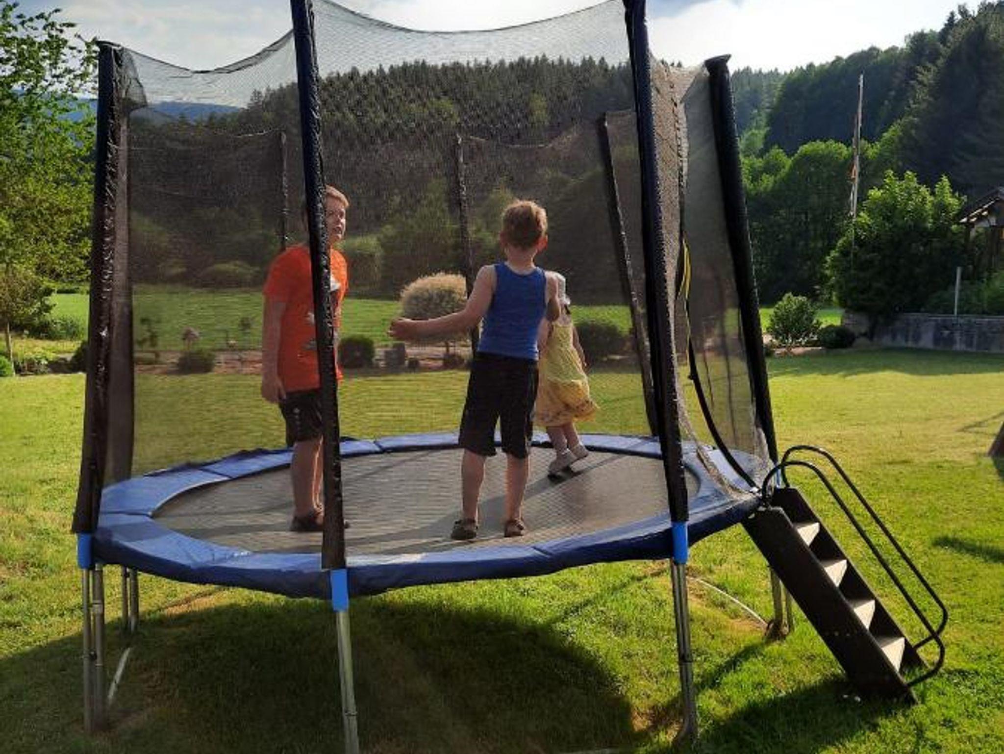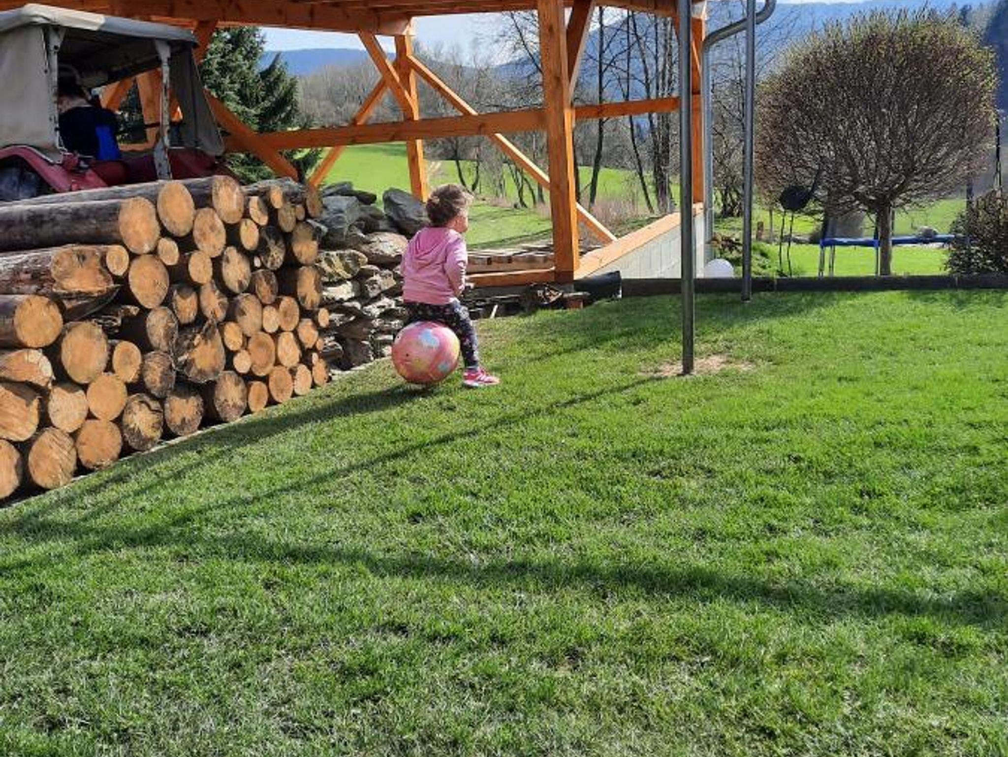 Spielwiese mit Spielgeräten, Tretfahrzeugen, Trampolin stehen kostenlos zur Verfügung. Traktorfahrt mit unseren Oldtimern nach Absprache.