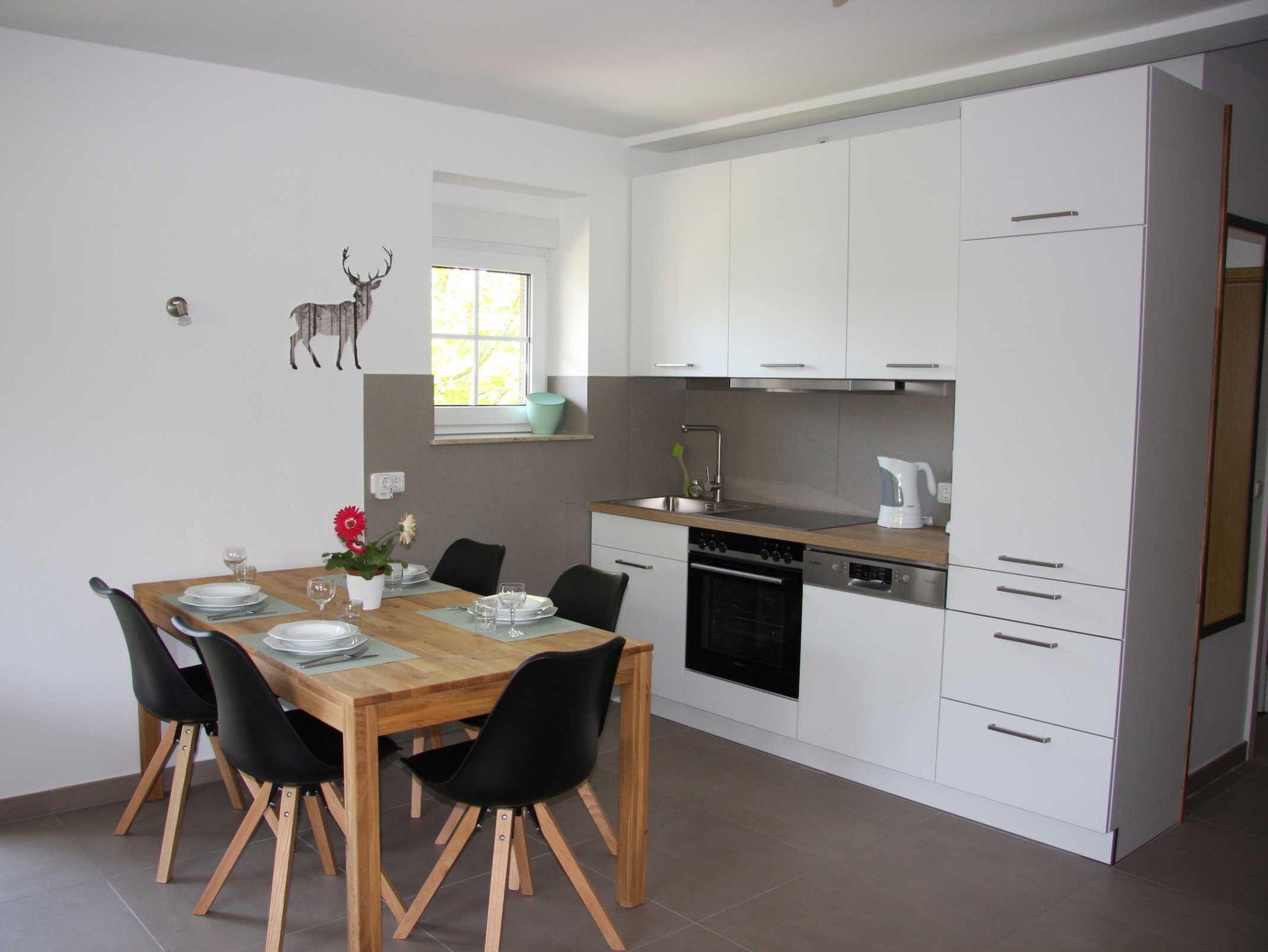 • Cerankochfeld, Backofen, Spülmaschine, Kühlschrank mit Gefrierfach, Kaffeemaschine, Wasserkocher, Toaster