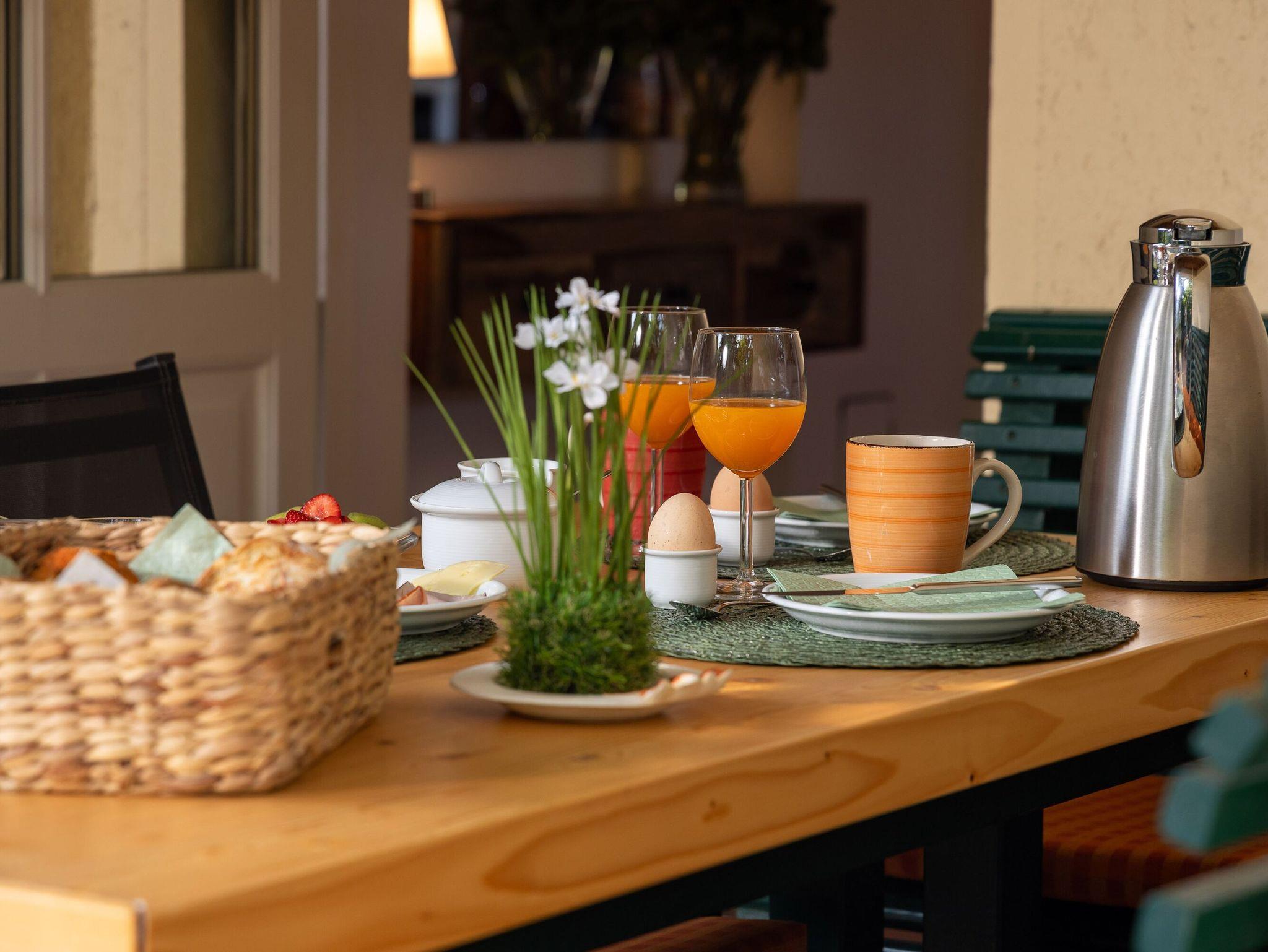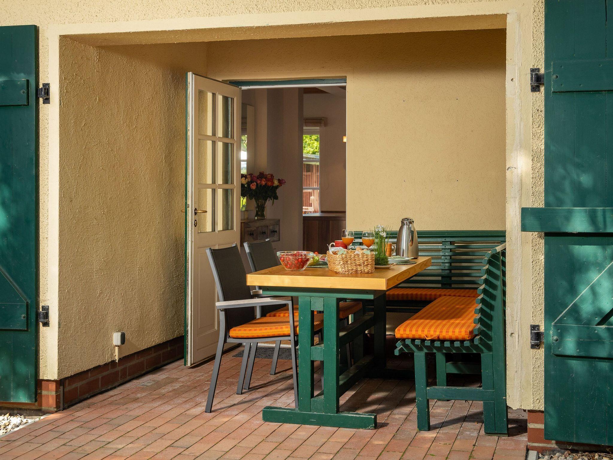 Die offene Küche lässt das Herz aller Hobbyköche höher schlagen. Sie sieht nicht nur chic aus, sondern ist mit Ceranherd, Mikrowelle, Backofen, Kühlschrank mit Gefrierfach, Geschirrspüler, Kaffeemaschine, Wasserkocher und Toaster sowie allem nötigen Besteck und Geschirr allerbestens ausgestattet. Speisen können Sie wahlweise am großen Esstisch im Wohnzimmer oder bei passendem Wetter auch auf der überdachten Frühstücksterrasse, wo Sie die Morgensonne zu Gast haben.