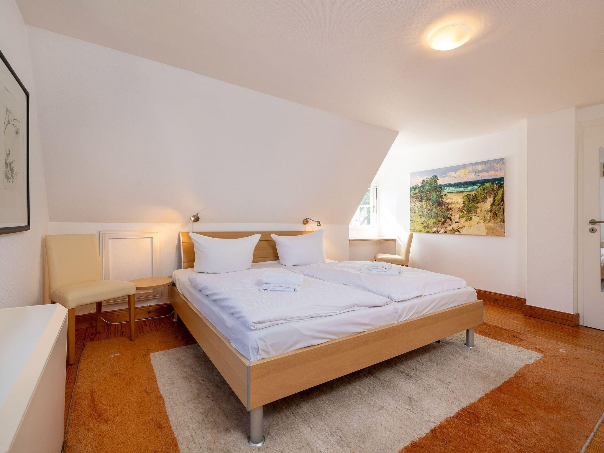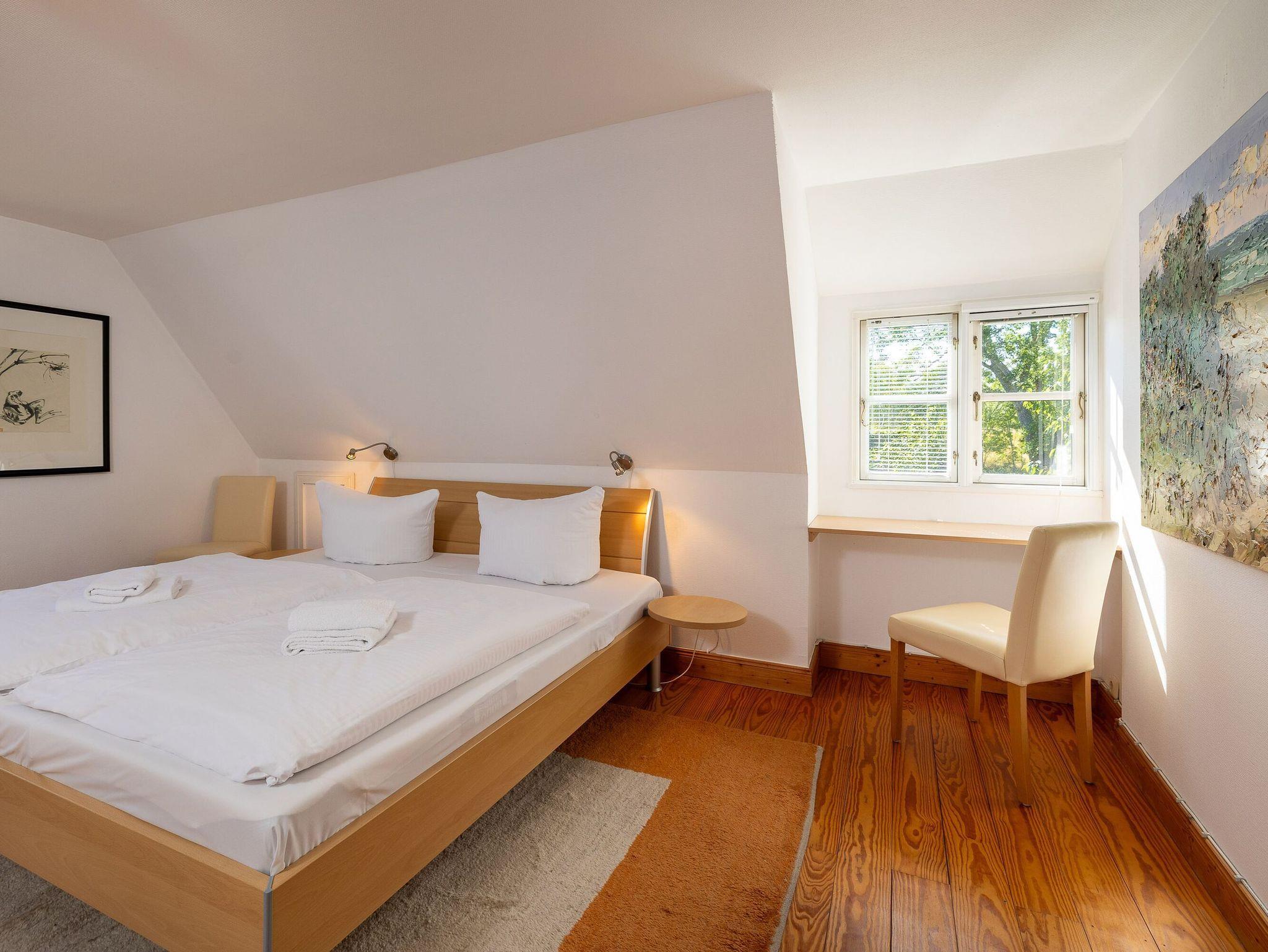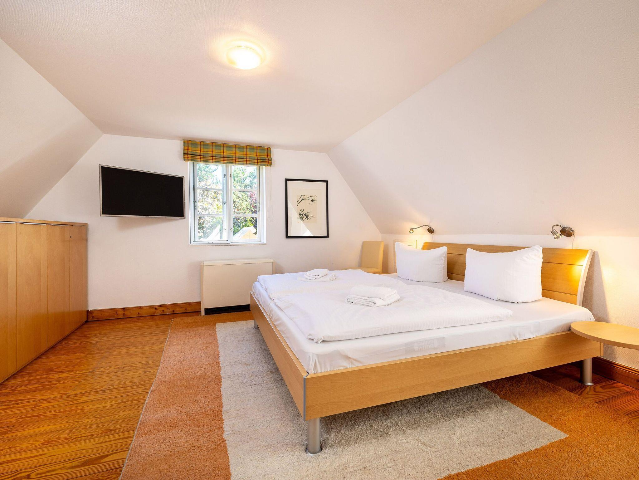 Ein paar Treppenstufen höher finden Sie im Dachgeschoss Ihre beiden Schlafzimmer mit jeweils einem komfortablen Doppelbett. Hier werden Sie himmlisch nächtigen. Durch die bei Bedarf geöffneten Fenster versehen mit Insektenschutzgittern kommt im Sommer eine kühle Brise vom nicht weit entfernten Meer. Beide Schlafzimmer verfügen auch über einen zusätzlichen Fernseher. Ein weiteres Duschbad/WC rundet diese Etage ab.