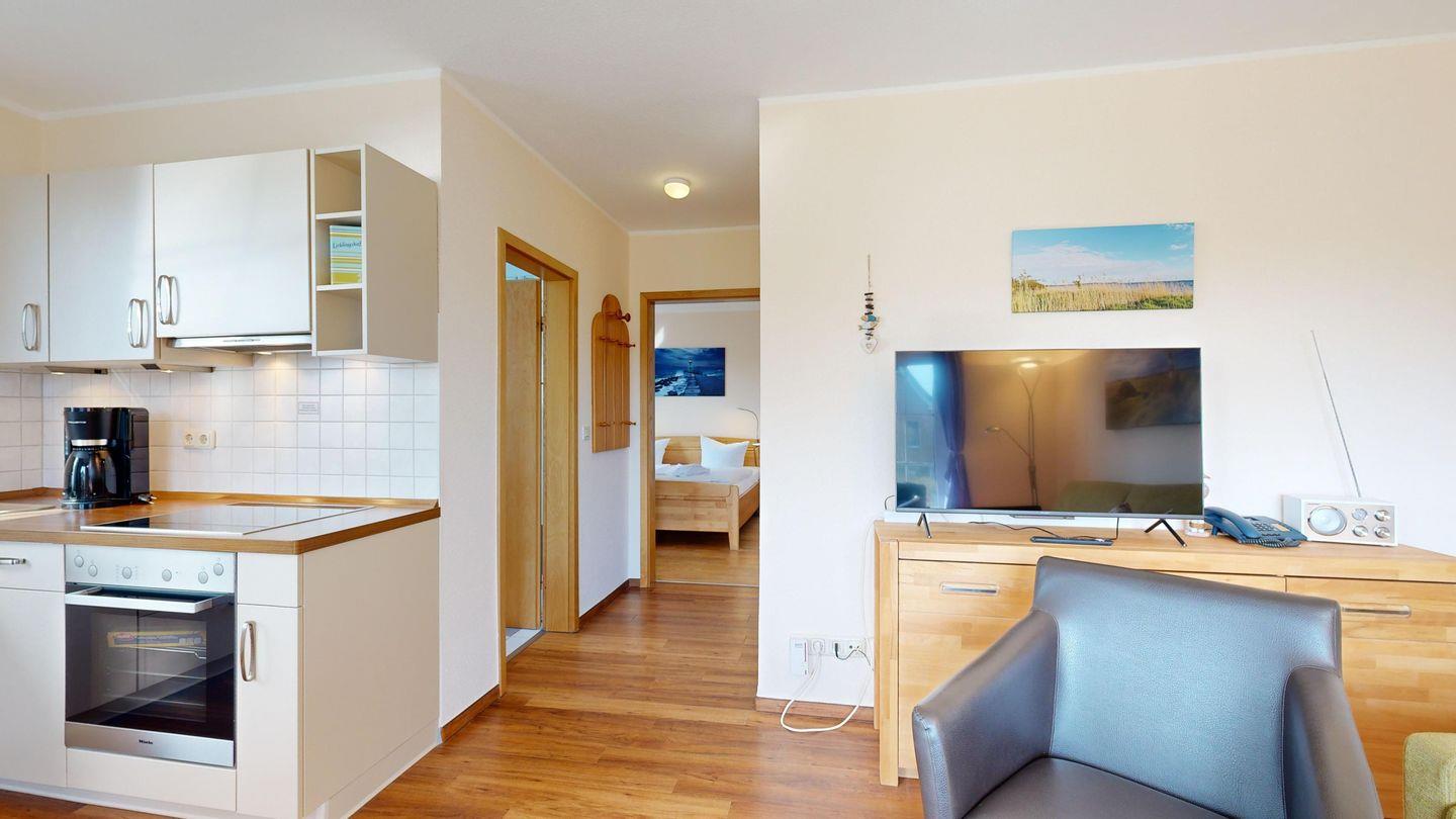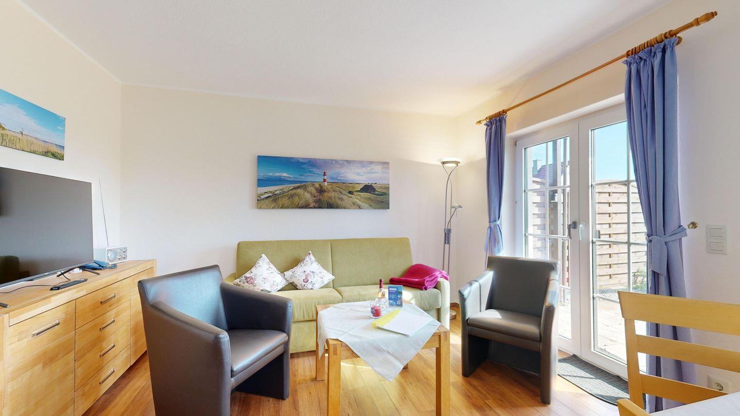 * Wohnzimmer: Couchgarnitur (Schlafgelegenheit für 1 Personen), Smart-TV, Radio mit CD,