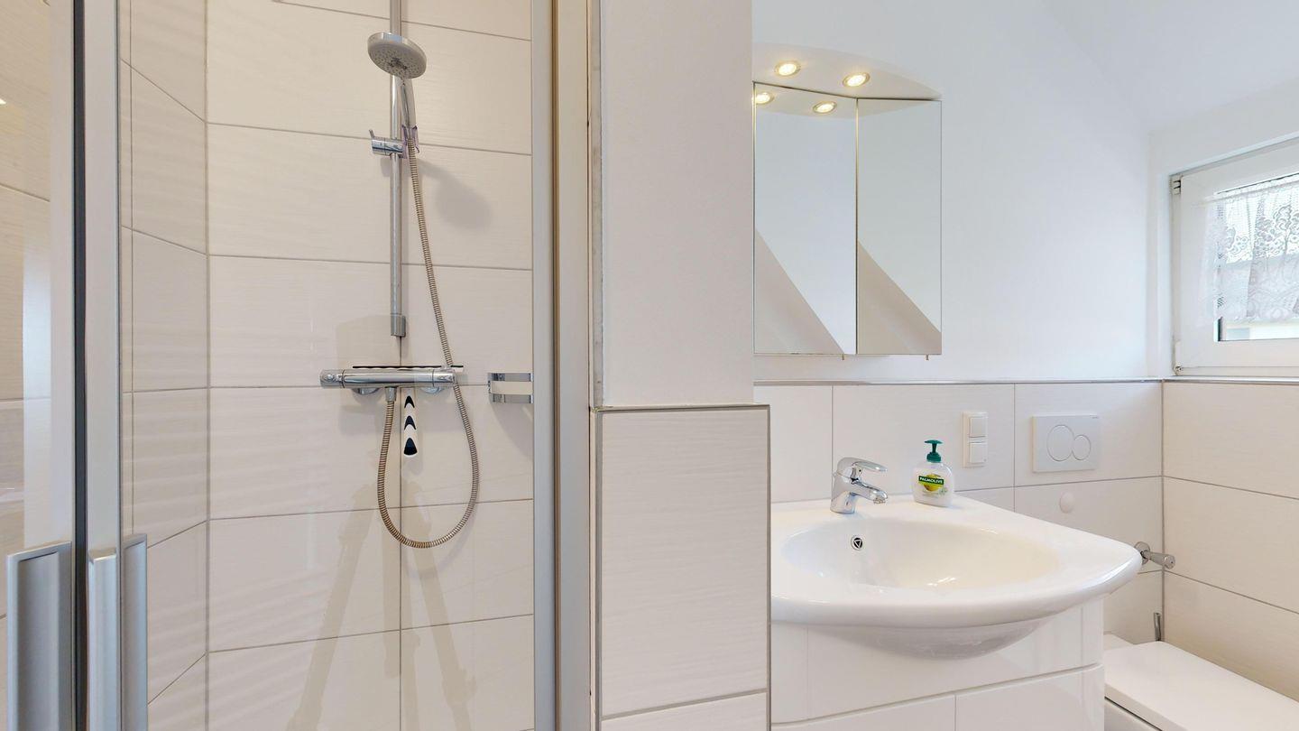 * 1 Badezimmer mit Dusche, WC und Föhn