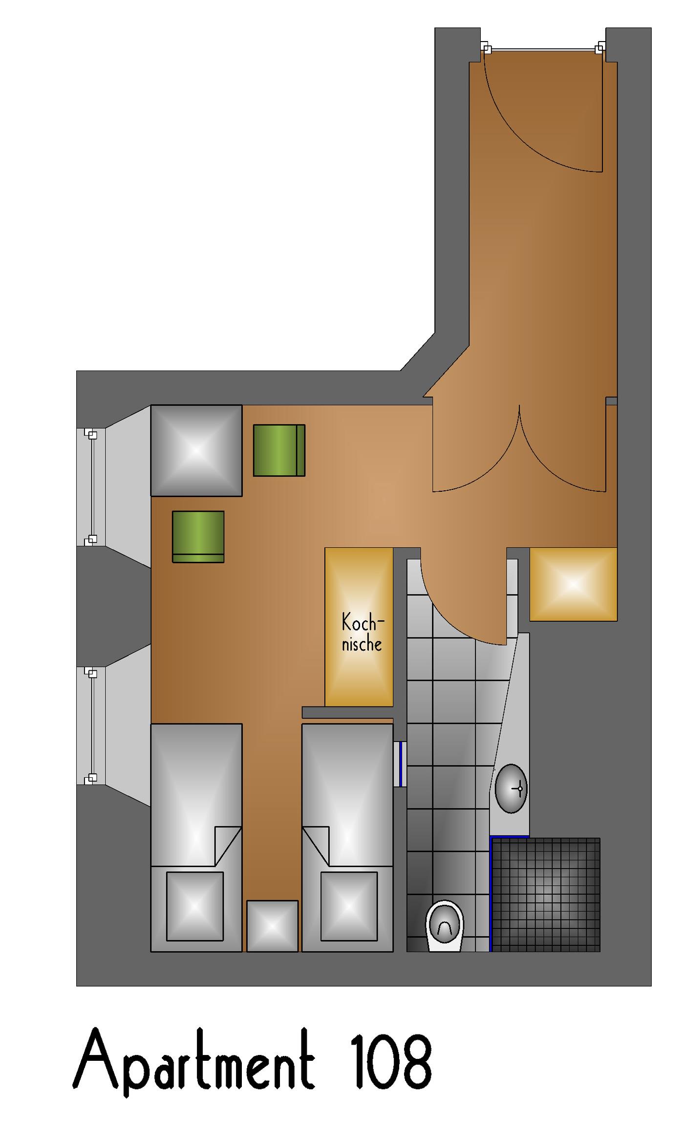 Das Apartment ist nur über eine Treppe erreichbar.