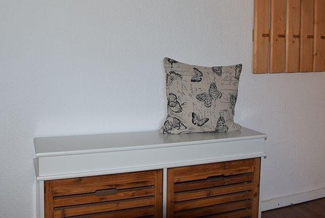 Die Wohnung verfügt über 1 Schlafzimmer mit 2 Einzelbetten (Betten können zusammen stehen oder als 2 Einzelbetten auseinander geschoben werden), 1 Schlafzimmer mit 1 Tagesdoppelbett (einzeln oder zu zweit nutzbar/ausziehbar).