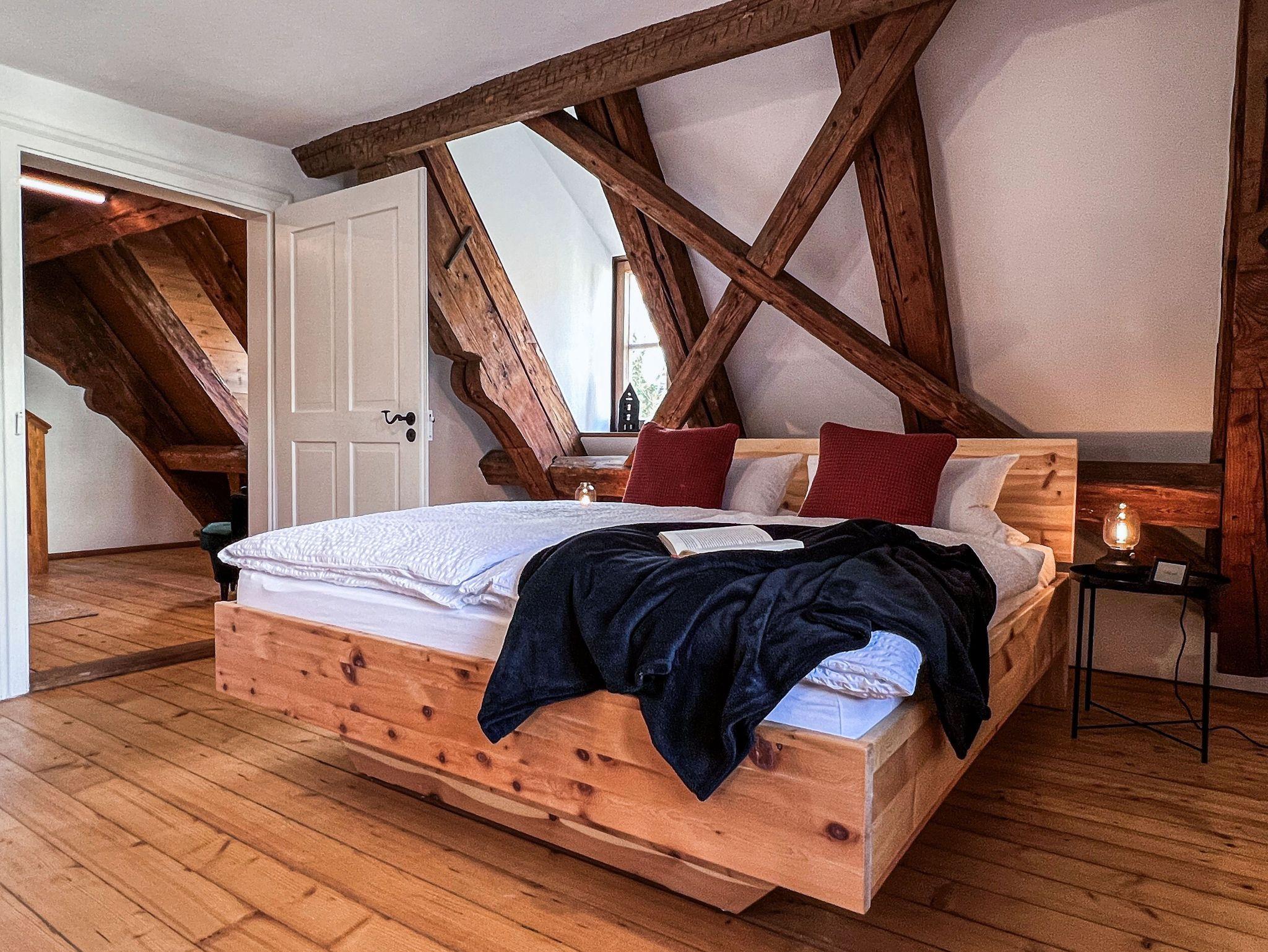 Doppelbett (180 x 200 cm) aus Zirbenholz befindet sich ebenfalls auf