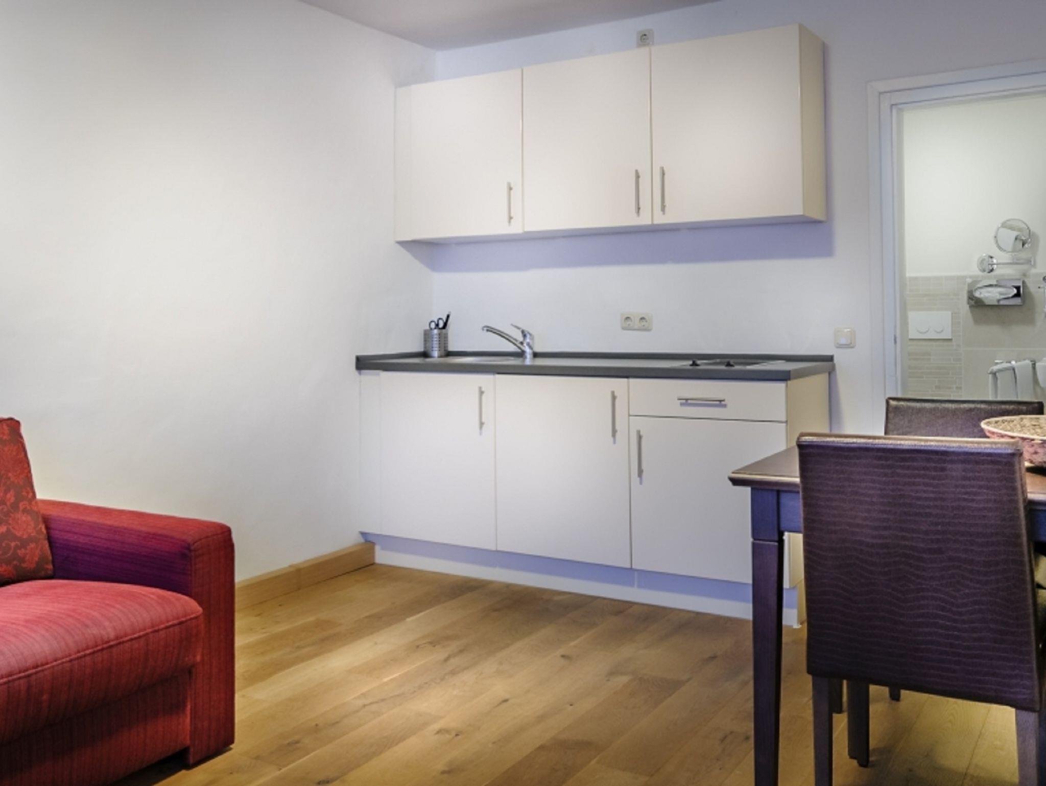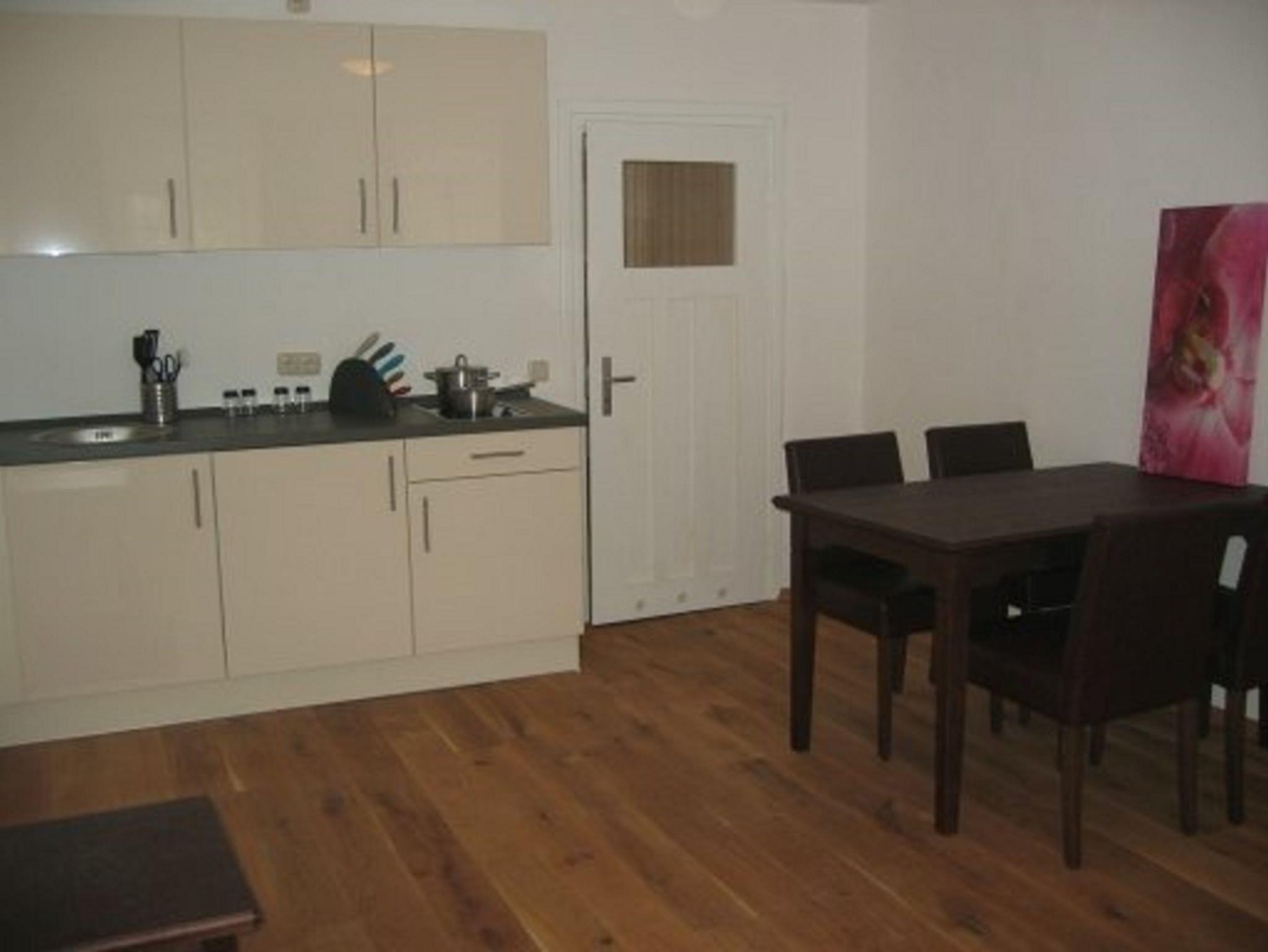 Das helle und geräumige Apartment mit 40qm verfügt über ein Doppelbett und ein Schlafsofa im Wohnzimmer. Auf den gemütlichen Sitzgelegenheiten mit Flachbild-TV können Sie entspannte Abende verbringen. Das Badezimmer mit Dusche, WC, Fön und Handtücher rundet das Gesamtbild ab. Das Apartment ist mit einer Küchenzeile, die mit einem Kühlschrank, einer Mikrowelle, Backofen und einem Kochfeld ausgestattet ist. Das WLAN und die öffentlichen Parkplätze können Sie kostenfrei nutzen.