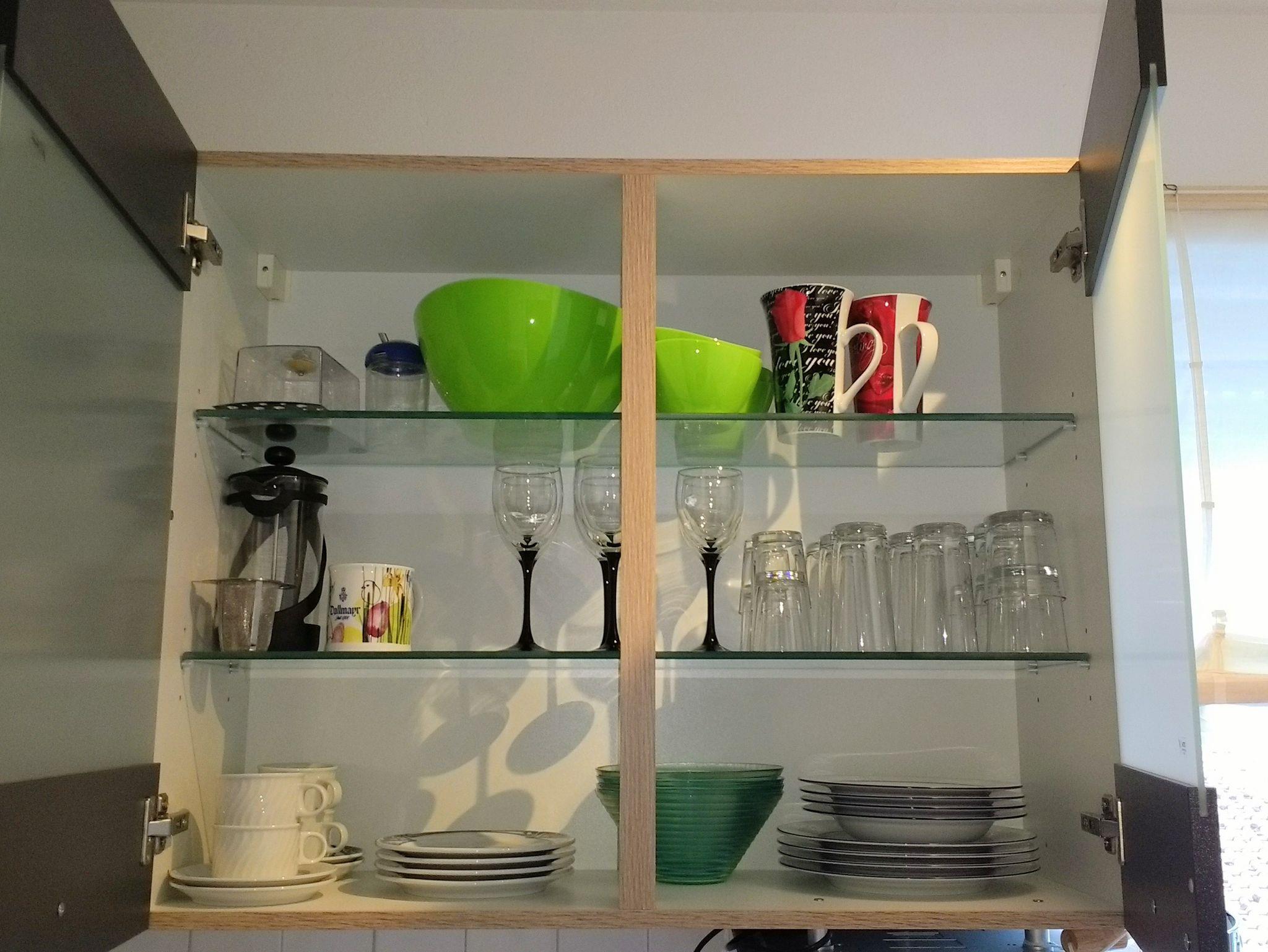 Die Wohnung ist möbliert mit einem modernen Doppelbett (1,80m x 2,00m) mit Fußbank, gemütlicher Doppelsitzer-Couch vollausgestatteter Küche mit Essbereich, Spülmaschine, Tee-, Kaffeemaschine, Wasserkocher, Kühl-Gefrierschrank mit 3 Sterne-Fach, außerdem Mikrowelle sowie Radio-CD-Player. In der Garderobe befinden sich zwei weitere Schränke. Während Ihres Aufenthaltes stellen wir kostenfrei Espresso, Kaffee (Kapselmaschine) und Tee für Sie bereit. Nach Absprache befüllen wir auch ihren Kühlschrank bereits vor Ihrer Ankunft.