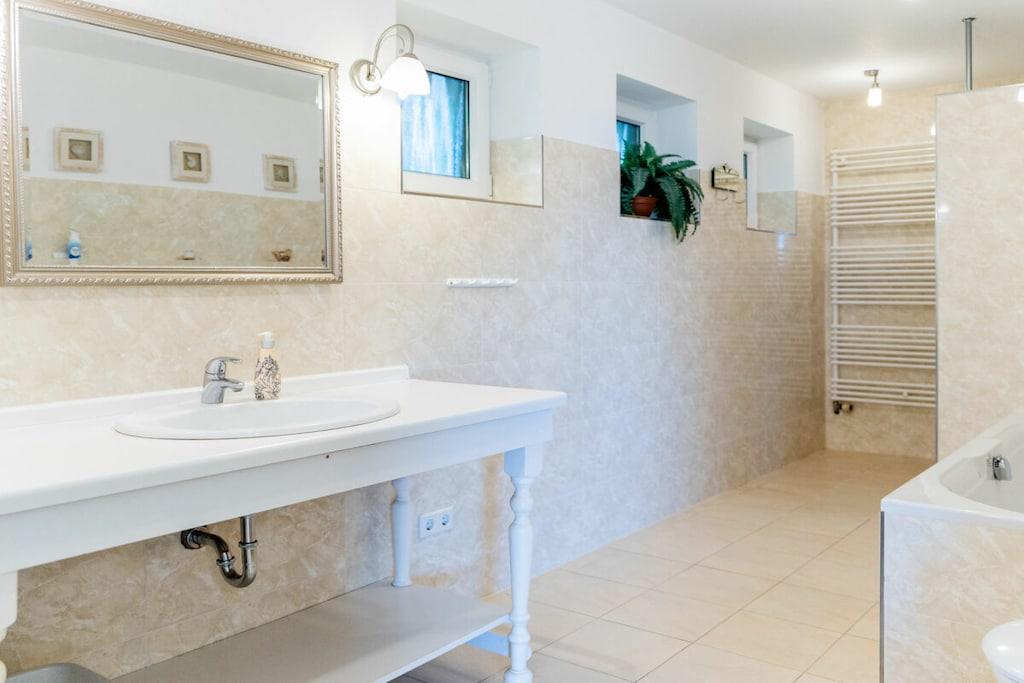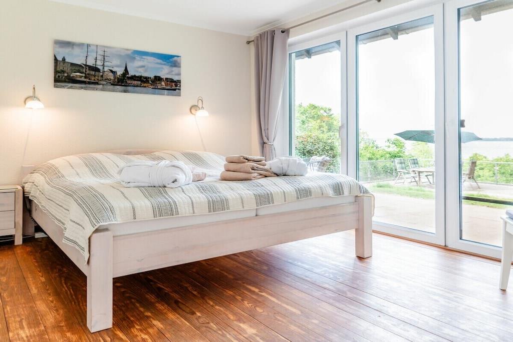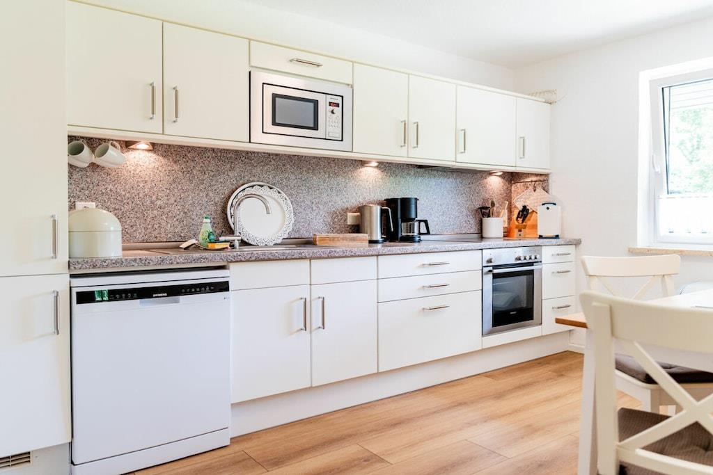 The Seeblick house is approximately 180 square meters and features three terraces. The living room has a comfortable, large sofa with an unobstructed view of the Baltic Sea. The entire house is centrally heated, and a wood-burning stove radiates cozy warmth whenever you desire. Even the dining room offers a magnificent view of the water, and the kitchen is fully equipped with everything you need for convenience. A bedroom with a walk-in closet and an adjoining large bathroom with a bathtub, shower, toilet, and bidet is also located on the ground floor. Three further bedrooms (two single rooms with sea views and one double room) and a shower room/toilet are located on the upper floor. And for sauna enthusiasts, we've thought of everything. The basement has been converted into a sauna area.