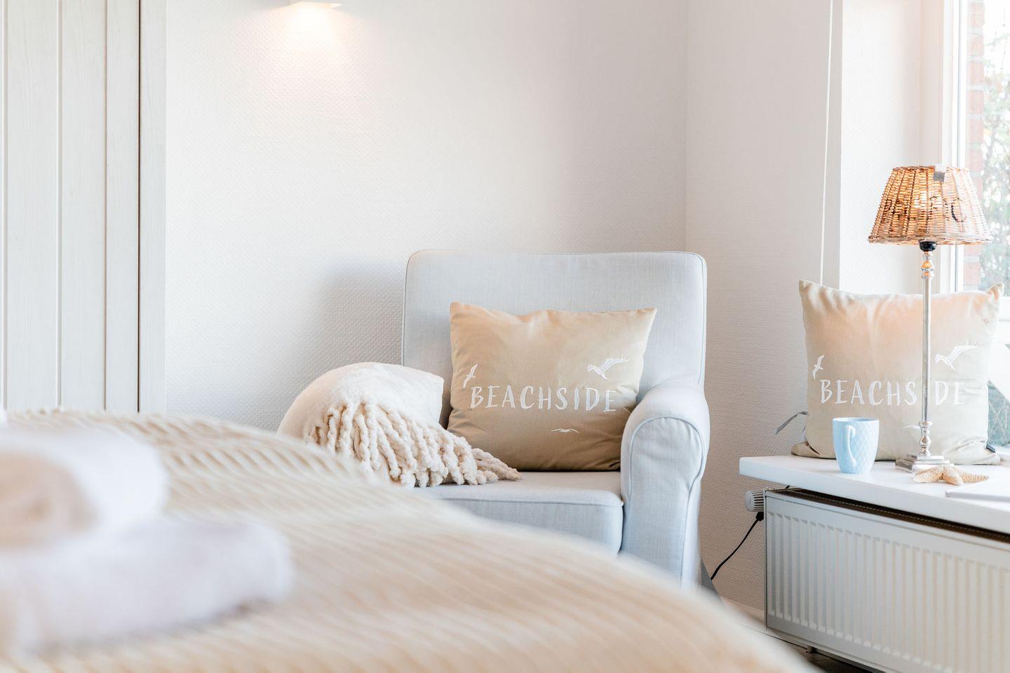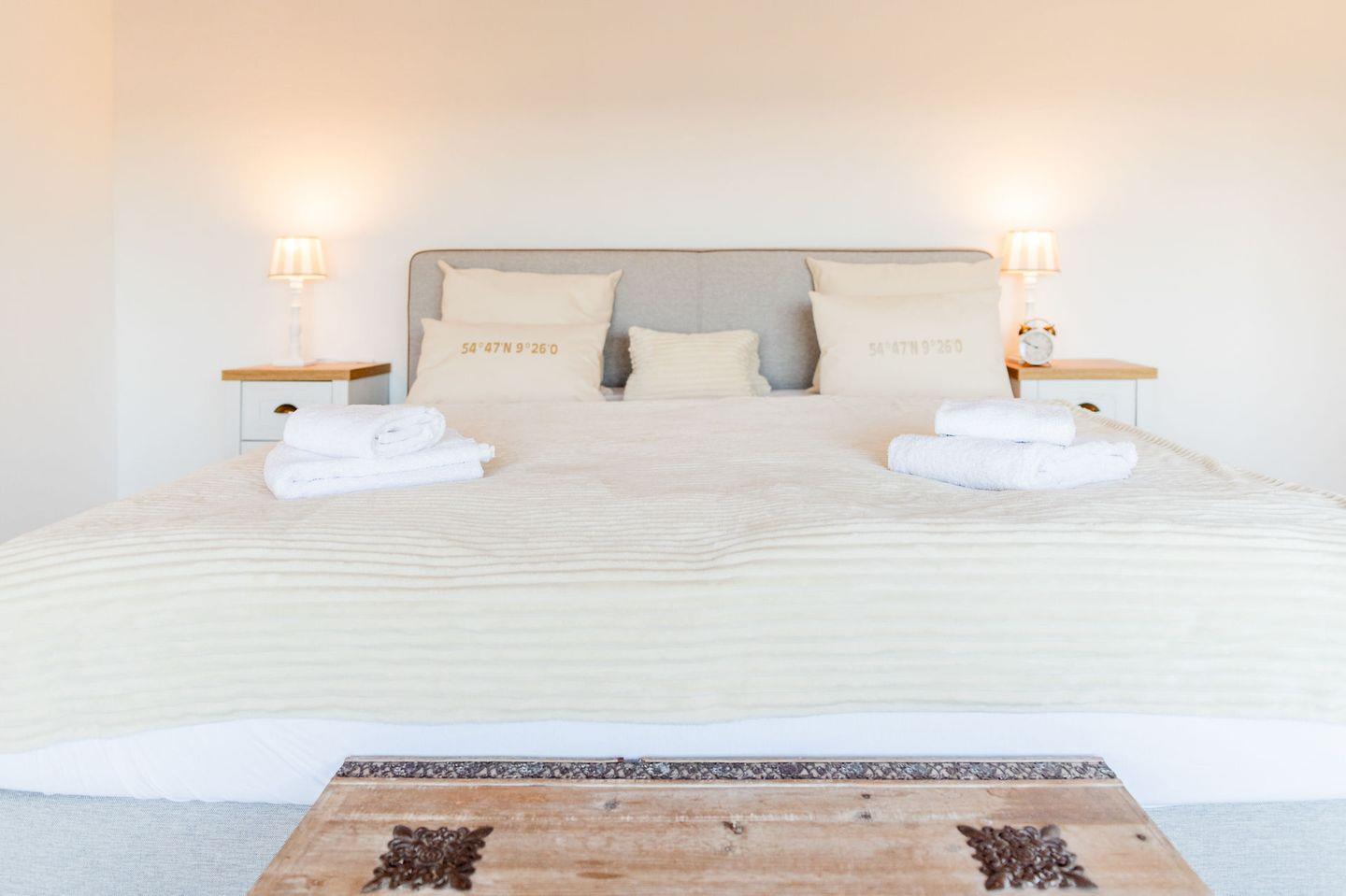 Stell dir vor: Du wachst morgens auf, öffnest die Augen und siehst das Wasser direkt vor dir. Aus dem Bett blickst du über die Wellen, die sanft ans Ufer rollen. Der Meerblick begleitet dich durch den Tag – ob beim Aufwachen, beim Lesen auf dem Sofa oder beim entspannten Glas Wein am Abend.