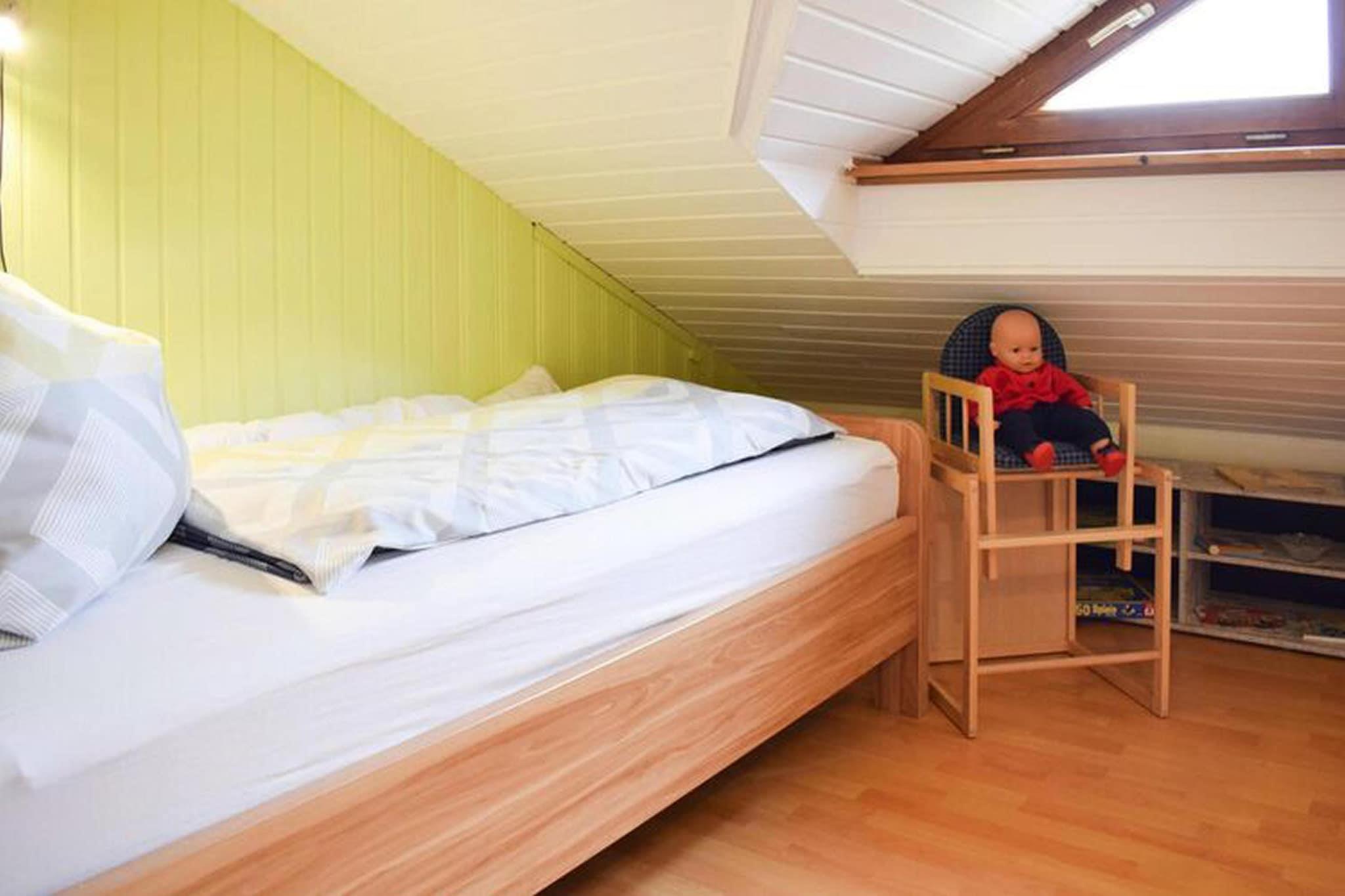 In the middle of the Bavarian Forest lies the community of Langdorf in original and intact nature and this comfortably furnished holiday home. Couples, friends and small families are welcome here to spend a relaxing and active holiday in beautiful Lower Bavaria. In Langdorf you will find well-developed ski areas that appeal to both beginners and advanced skiers. Especially in winter, hearts beat faster here: with the ski lifts Glasberg, Lohwaldhang, Zell and the Arberbahn you can enjoy pure snow fun. Another highlight is the cross-country ski trail, which runs just a few meters from the accommodation. The apartment is on the top floor and has pleasantly furnished rooms, a pretty, well-equipped kitchen, a living room with a comfortable sofa and TV, and a bathroom with a shower. If required, a cot and high chair are available. You can park on site.