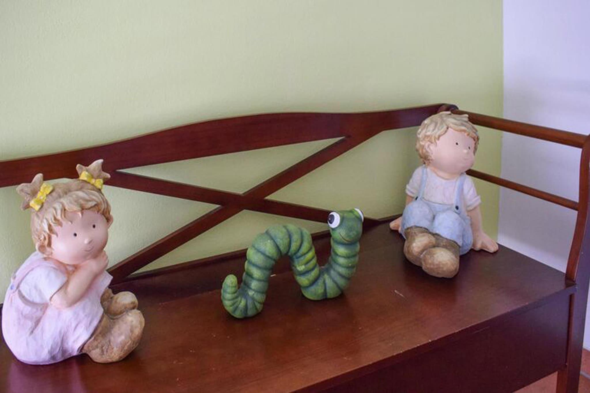 Attic: (Kitchen(electric kettle, toaster, cooker, coffee machine, microwave, fridge, fridge-freezer), Living/diningroom(TV, dining table, seating area), bedroom(double bed), bedroom(single bed), bathroom(shower, washbasin, toilet), cot, balcony, garden furniture, high chair, Sunscreen) parking
