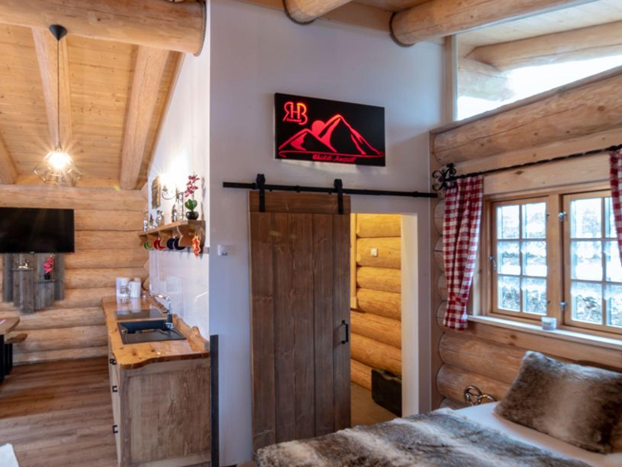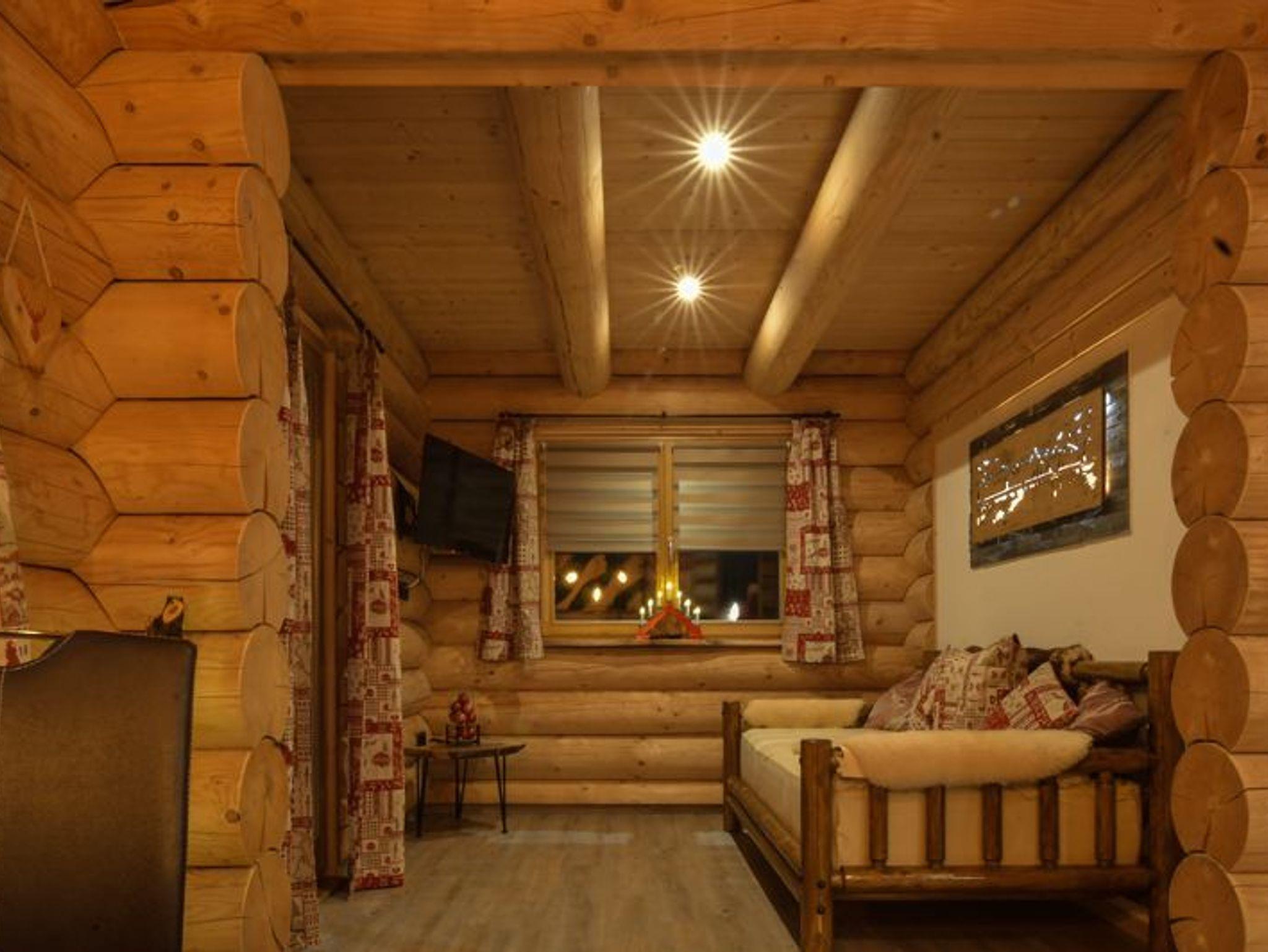 Das Chalet besticht innen und außen mit seinem rustikalen Flair in der Rundstammbauweise. Ein Teil der Einrichtung wurde in liebevoller Handarbeit eigens von der Familie Ellerbeck stilgerecht gefertigt. So ist der gemütliche Wohnbereich mit, einem Sofa, SAT-TV, WLAN und einer komplett eingerichteten Küchenzeile mit Essecke ausgestattet. Über das separate WC mit Dusche kann man direkt in die integrierte Sauna gelangen. Die abgeschlossenen Terrasse bietet einen schönen Blick über das Dorf und lädt mit Lounge-Möbeln bei schönem Wetter zum Verweilen ein. Unser Anliegen ist es, Ihnen einen möglichst erholsamen und angenehmen Aufenthalt bieten zu können. An unserer sich im Hof befindlichen zertifizierten Naturquelle (Quelle des Lichts) können Sie sich jederzeit erfrischen.