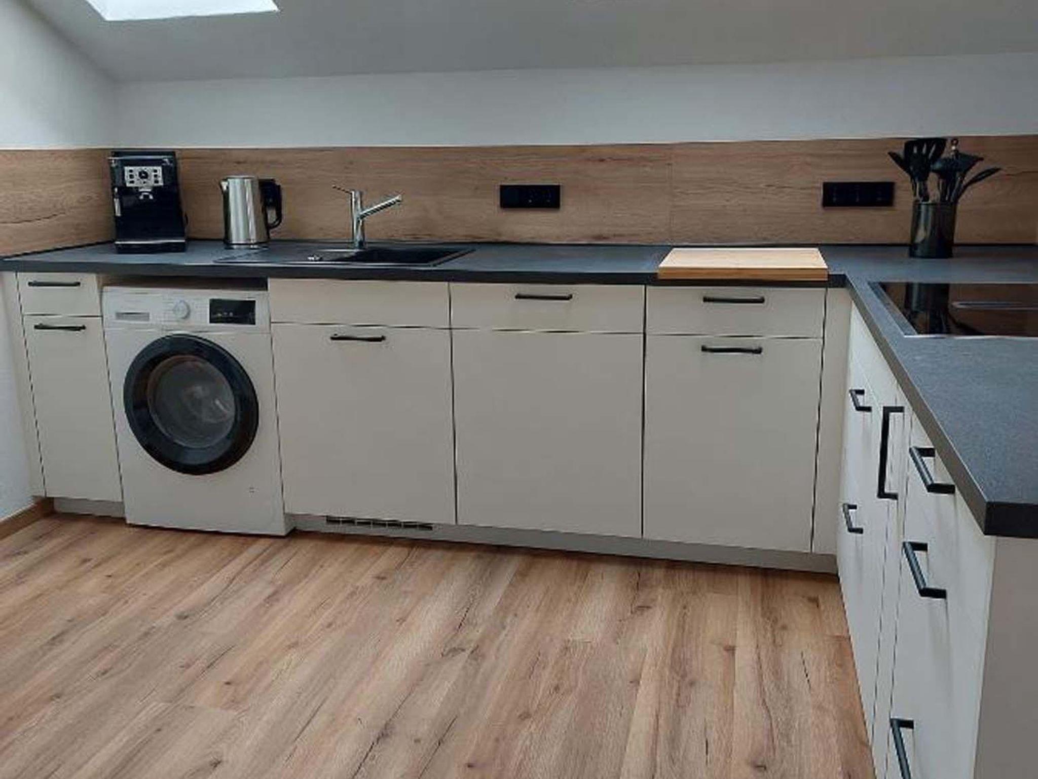 Das gemütliche Wohnzimmer mit Ledercouch und großem Flachbildschirm Sat-TV lädt zum Verweilen ein. Der komplett ausgestattete offene Küchenbereich mit Geschirrspüler, Kühlschrank, Gefrierschrank, E-Herd, Backofen, Mikrowelle, Wasserkocher, Kaffeevollautomat und Toaster lässt keine Wünsche offen.