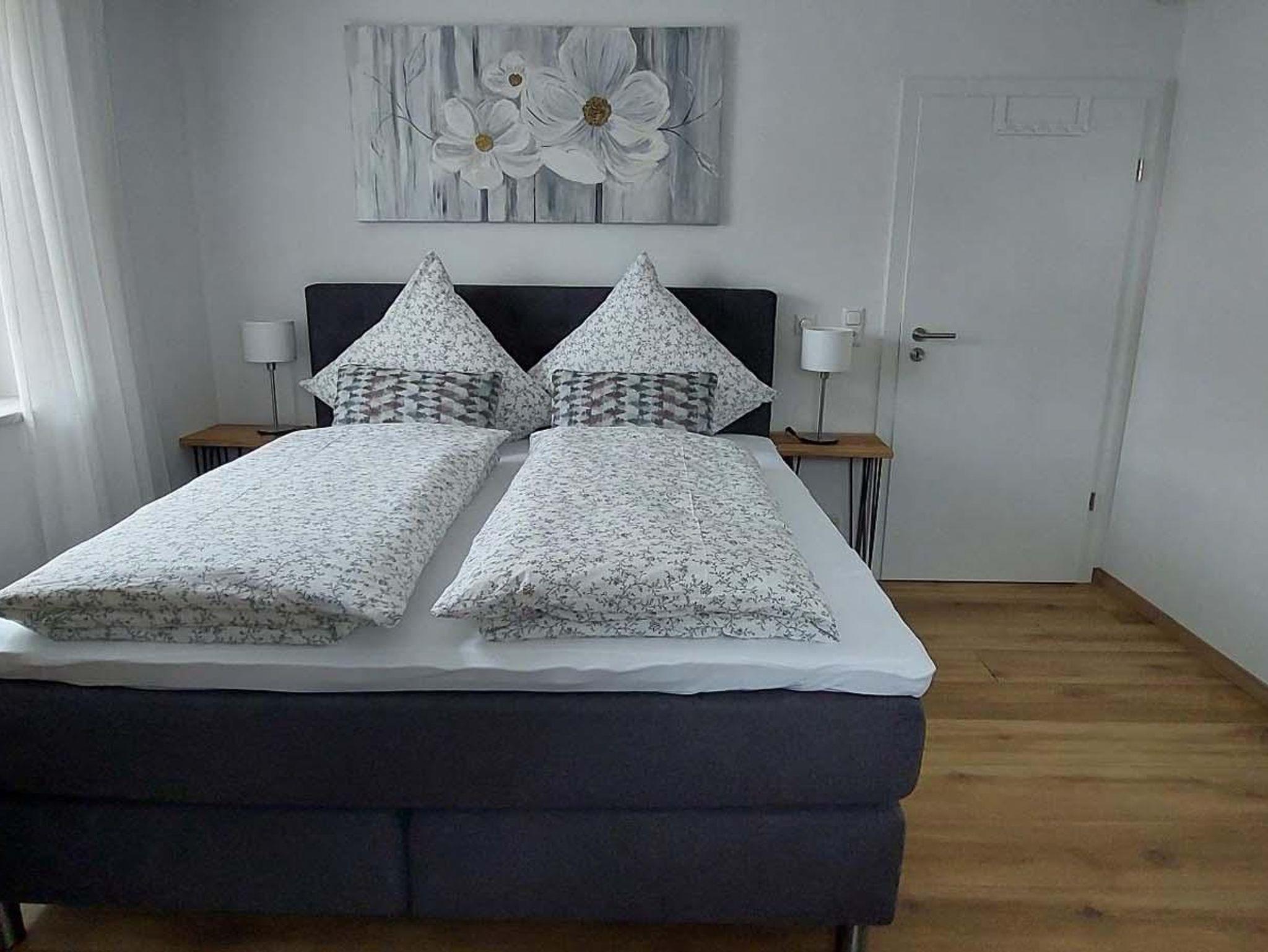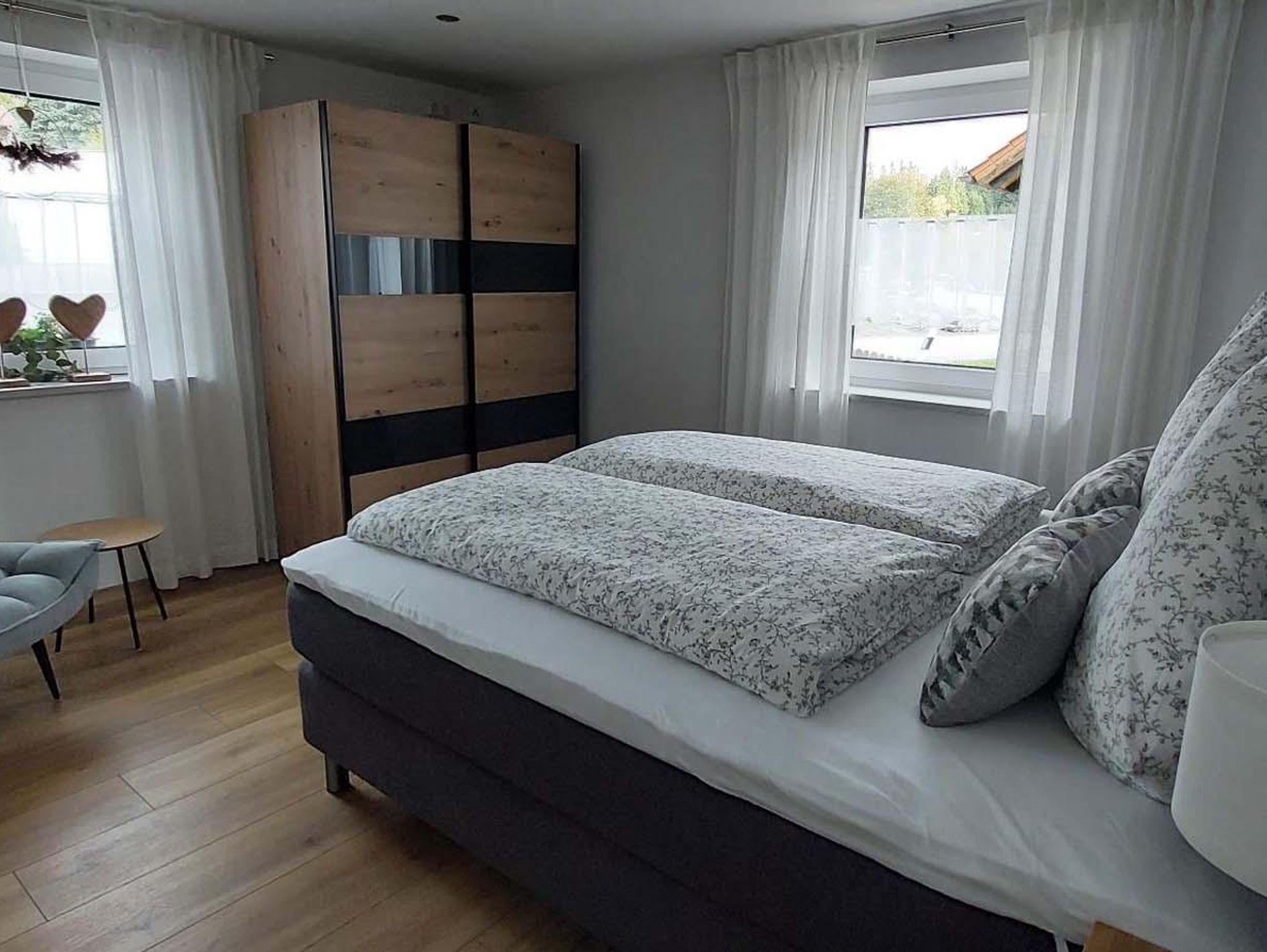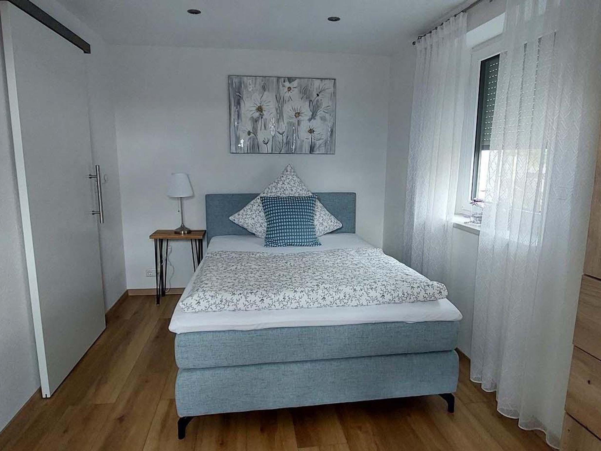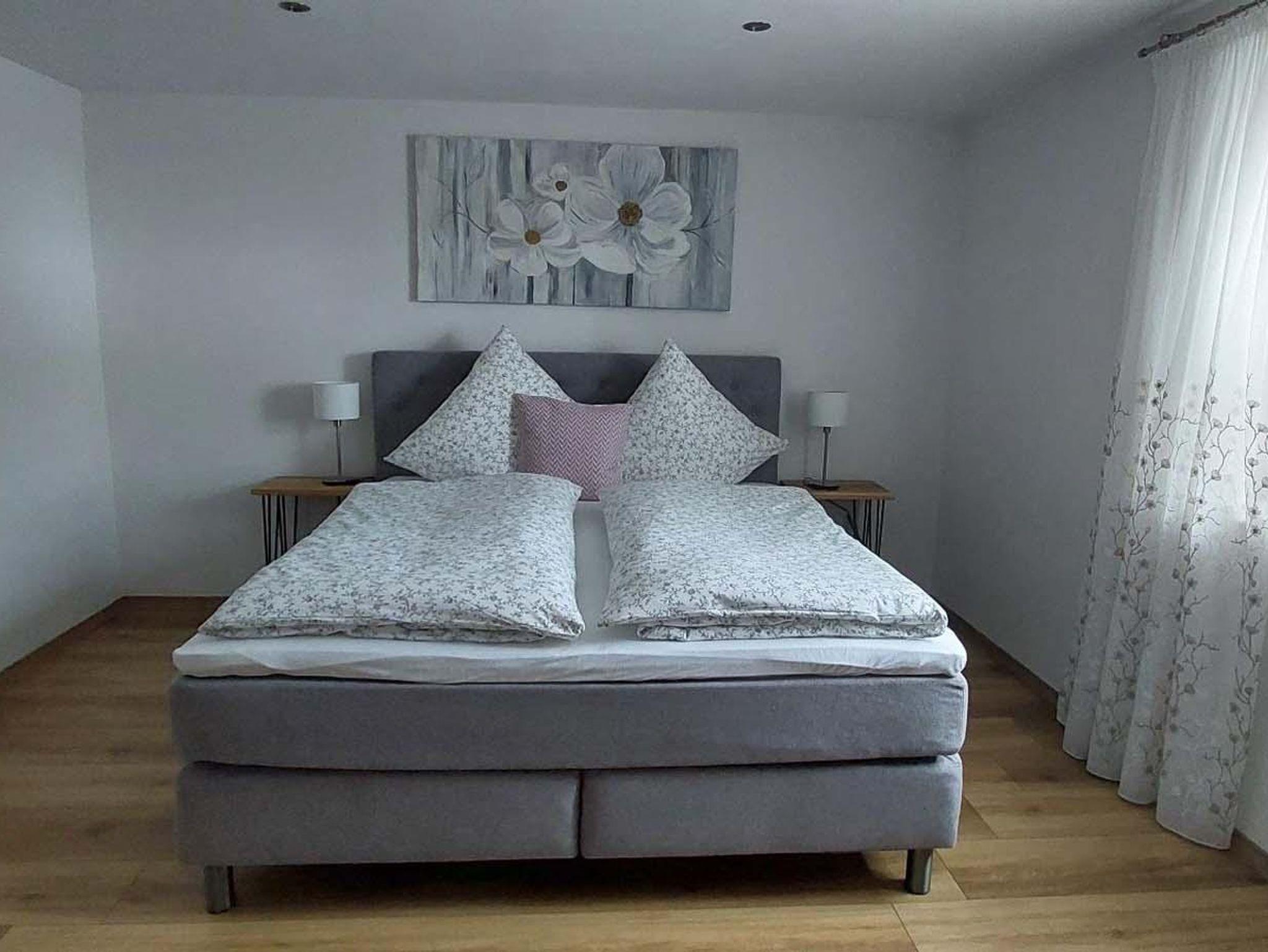 Die Ferienwohnung verfügt über 3 separate moderne Schlafzimmer mit Boxspringbett. 2 Zimmer mit Doppelbetten 180x200m, 1 Zimmer mit Einzelbett 140x200m.