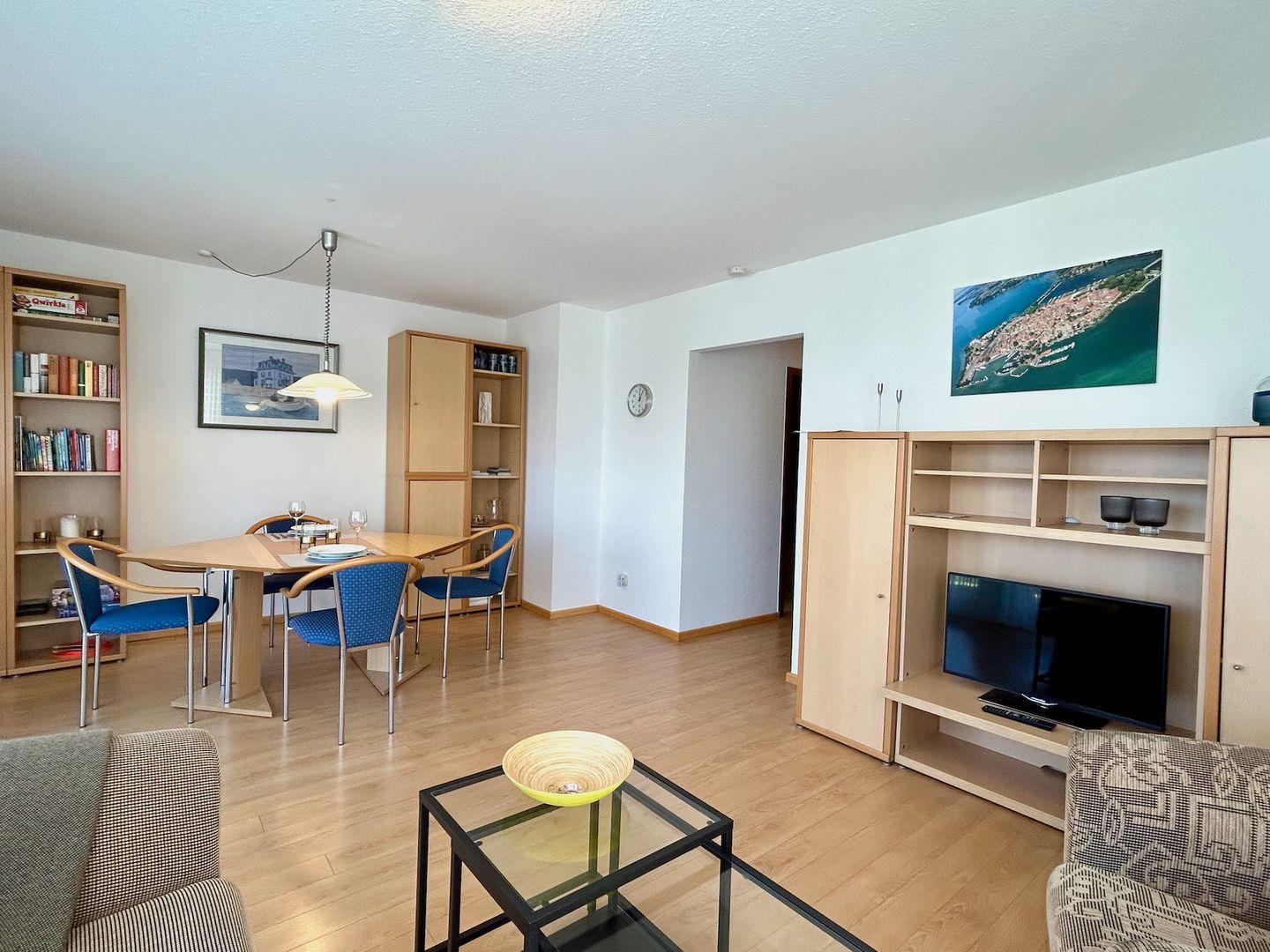 Diese Ferienwohnung ist ausgestattet für 2 Erwachsene und 2 Kinder, diese schlafen dann im Wohnzimmer auf dem Schlafsofa. Zur Ferienwohnung gehört ein Tiefgaragenplatz. Fahrräder können Sie auch auf dem Tiefgaragenplatz abstellen.