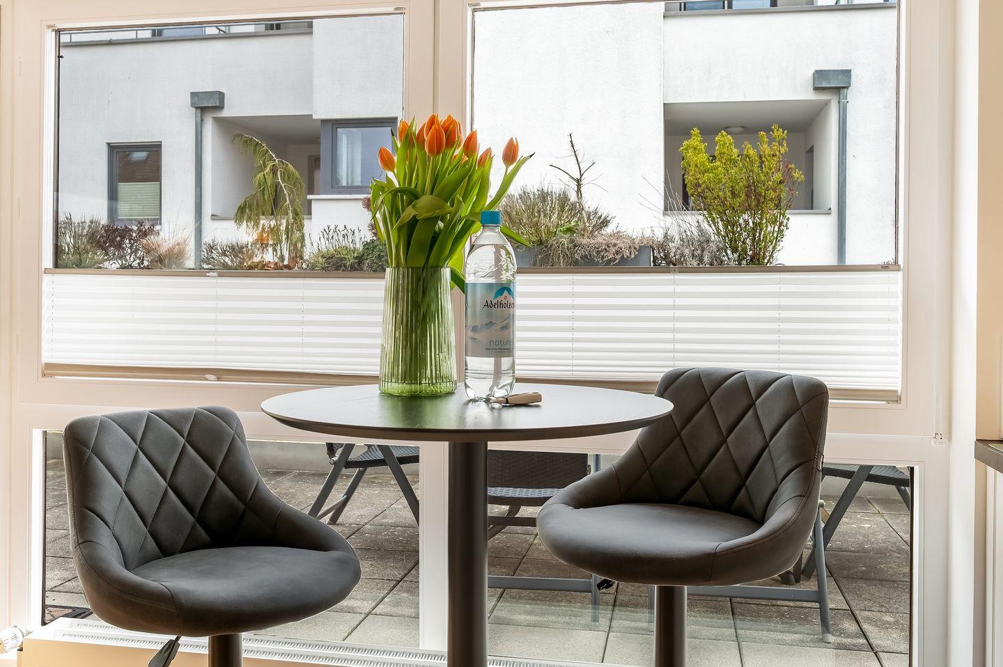Genießen Sie entspannte Urlaubstage in der Ferienwohnung „Morgensonne“, einer lichtdurchfluteten, großzügigen 78 m² großen Unterkunft in Langenargen. Die moderne und stilvolle Ausstattung sorgt für höchsten Komfort. Zwei gemütliche Schlafzimmer, jeweils mit TV, bieten erholsamen Schlaf. Ein Schlafzimmer ist zudem mit einer Klimaanlage ausgestattet – ebenso wie das Wohnzimmer, sodass auch an heißen Tagen ein angenehmes Raumklima herrscht. Die neue Couch kann bequem in eine weitere Schlafgelegenheit für die 5. Person umgewandelt werden. Das geräumige Badezimmer mit ebenerdiger Dusche sowie ein zusätzliches Gäste-WC bieten Komfort für alle. Die offene Küche mit hochwertigen Geräten und Kochfeld mit integriertem Abzug lädt zum gemeinsamen Kochen ein. Ein besonderes Highlight ist die große, überdachte Loggia, auf der Sie bereits am Morgen die ersten Sonnenstrahlen beim Frühstück genießen können.