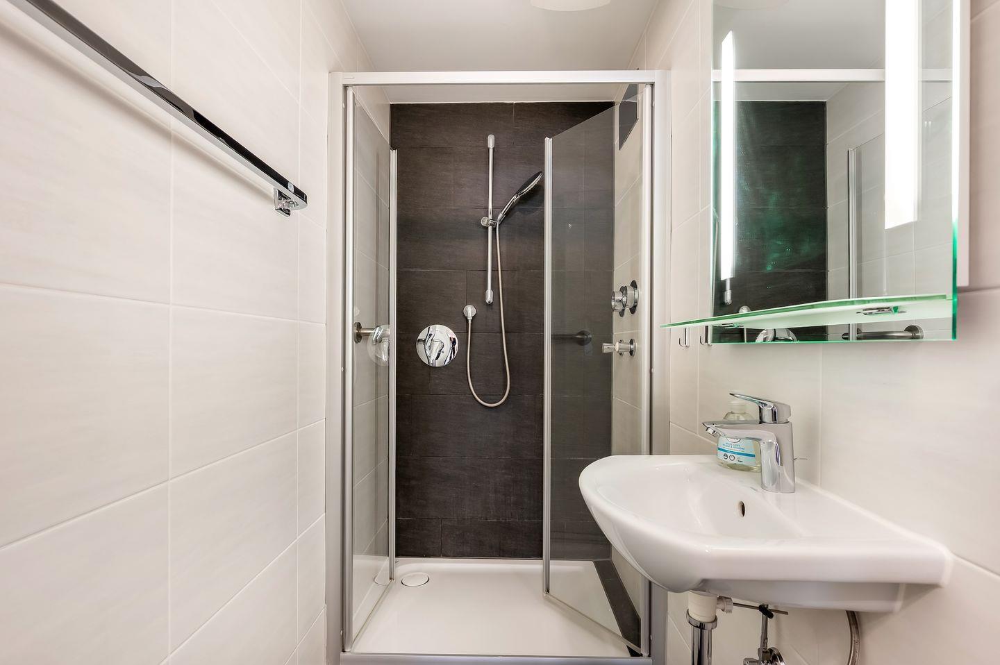 Das Badezimmer verfügt über eine Dusche und separates WC. Für zusätzlichen Komfort stehen Ihnen eine Waschmaschine, Wäscheständer, Bügeleisen und Bügelbrett zur Verfügung – besonders praktisch bei längeren Aufenthalten oder aktiven Urlaubstagen am Bodensee.