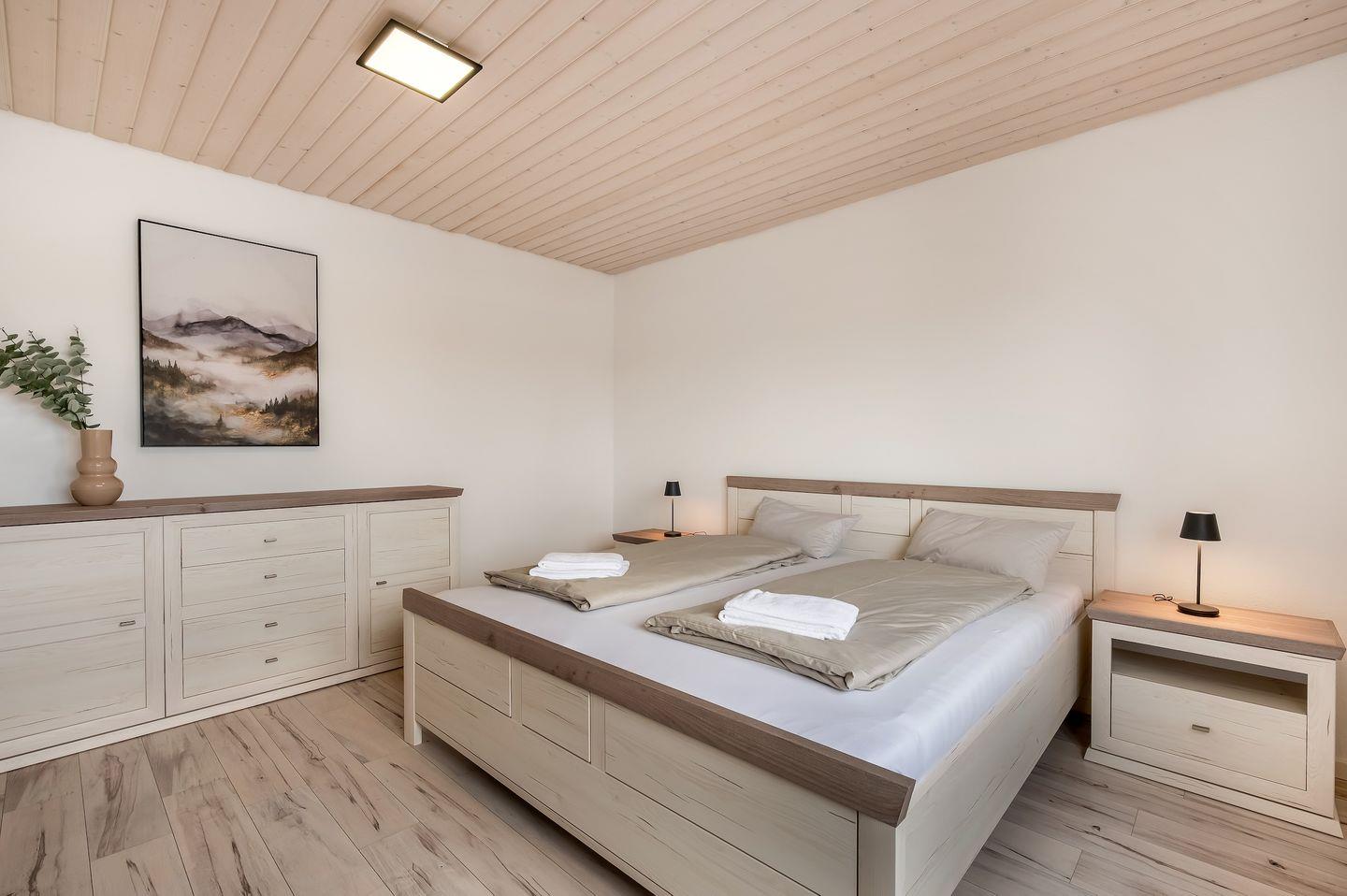 Der helle Wohnbereich lädt mit einer gemütlichen Sofaecke, einem einladenden Essbereich und einem großzügigen Esstisch zum Entspannen und Verweilen ein. Für Ihre Unterhaltung steht ein moderner TV mit Kabel- und Digitalanschluss zur Verfügung. Selbstverständlich profitieren Sie auch von kostenfreiem WLAN mit einer schnellen Internetverbindung ab 100 Mbit/s – ideal für Streaming, Arbeiten oder die Urlaubsplanung.