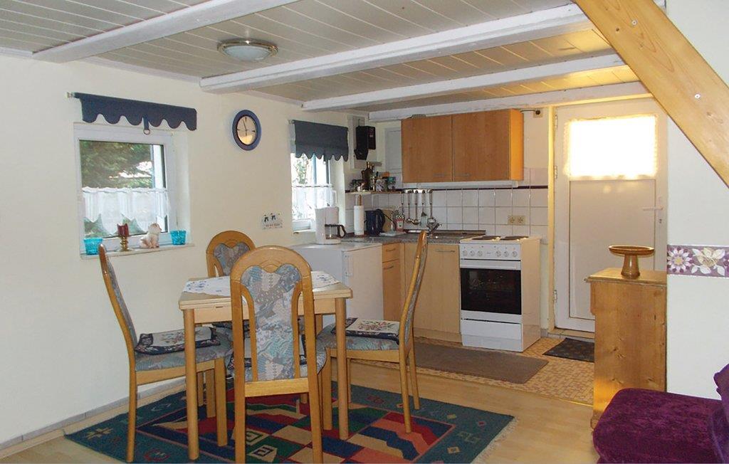 Dieses hübsche, kleine Ferienhaus steht auf dem Gartengrundstück des Vermieters und ist nur wenige Minuten vom Saaler Bodden entfernt. Zur Ostsee sind es ca. 20 km. Das Haus ist geschmackvoll und gemütlich eingerichtet. Zu den Schlafräumen ins Dachgeschoss (mit Schrägen) führt eine steile Treppe. Die kleinen Schlafräume sind durch eine Schiebetür getrennt. Eine kleine Küche ist in den Wohnraum integriert. Mietfahrräder erhalten Sie beim Vermieter auf Anfrage.