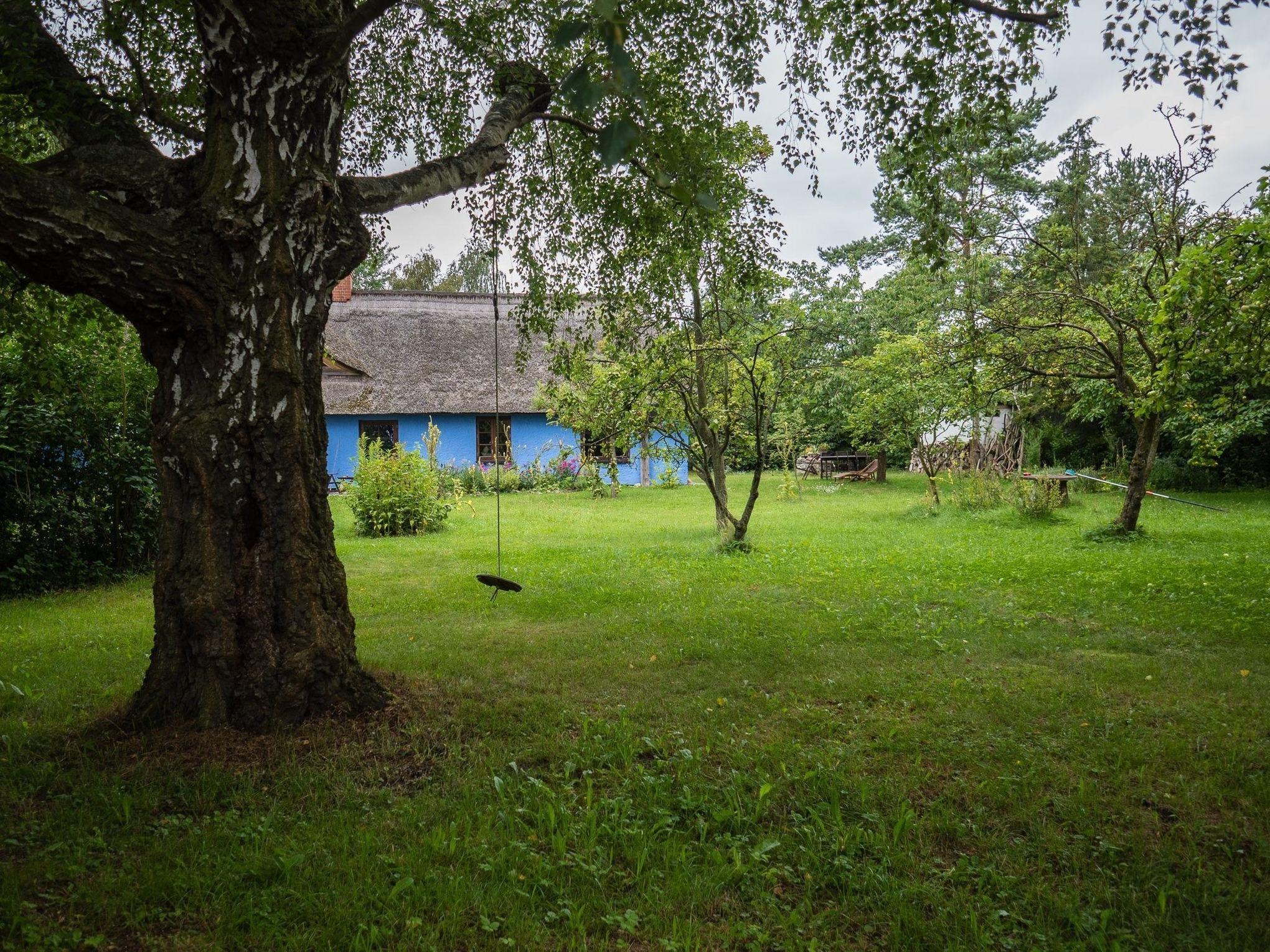 Das reetgedeckte blaue Haus und der Kastanienhof liegen in einem kleinem (staatlich anerkannten) Erholungsort am Saaler Bodden am Rande des Natonalparks Pommersche Boddenlandschaft.
