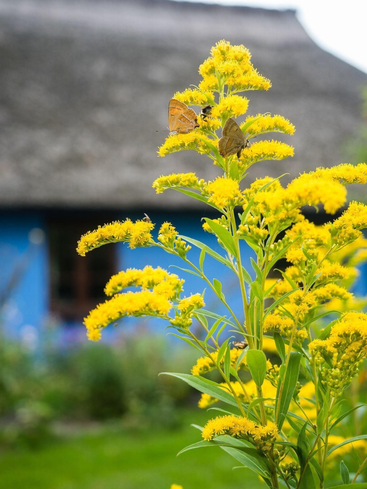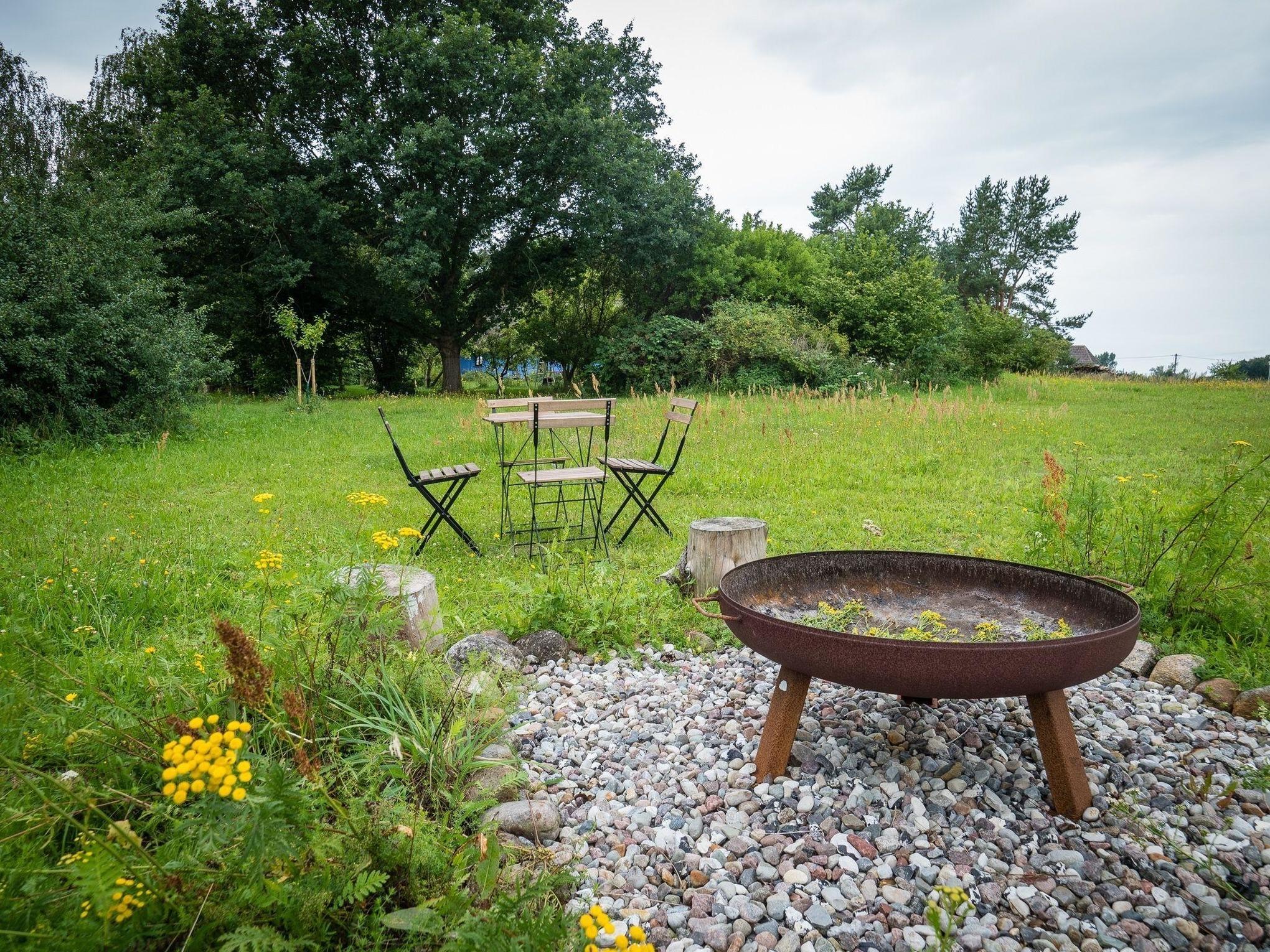 Der Garten ist bewusst naturnah gestaltet. Obstbäume, Eichen, eine riesige Birke, Hochbeete, Stauden und wilde Wiesen schenken vielen Tieren Lebensraum. Rehe bevölkern die frühen Morgenstunden, eine Fuchsfamilie liebt es, im Garten zu tollen, wenn die Süßkirschen von den Staren nach unten fallen. Sitzecken an verschiedenen Orten laden zum Verweilen ein, auch an einer Feuerschale.