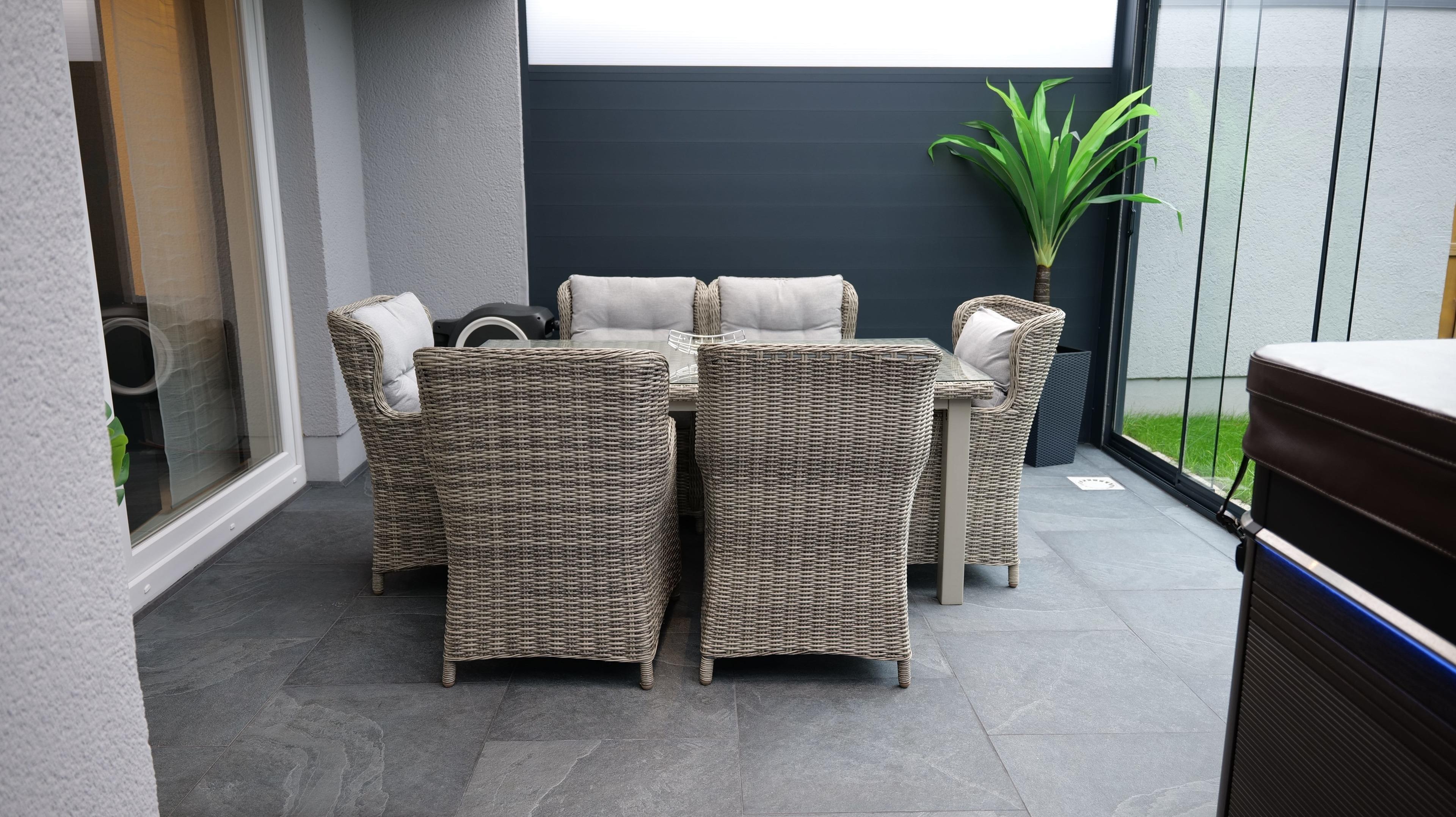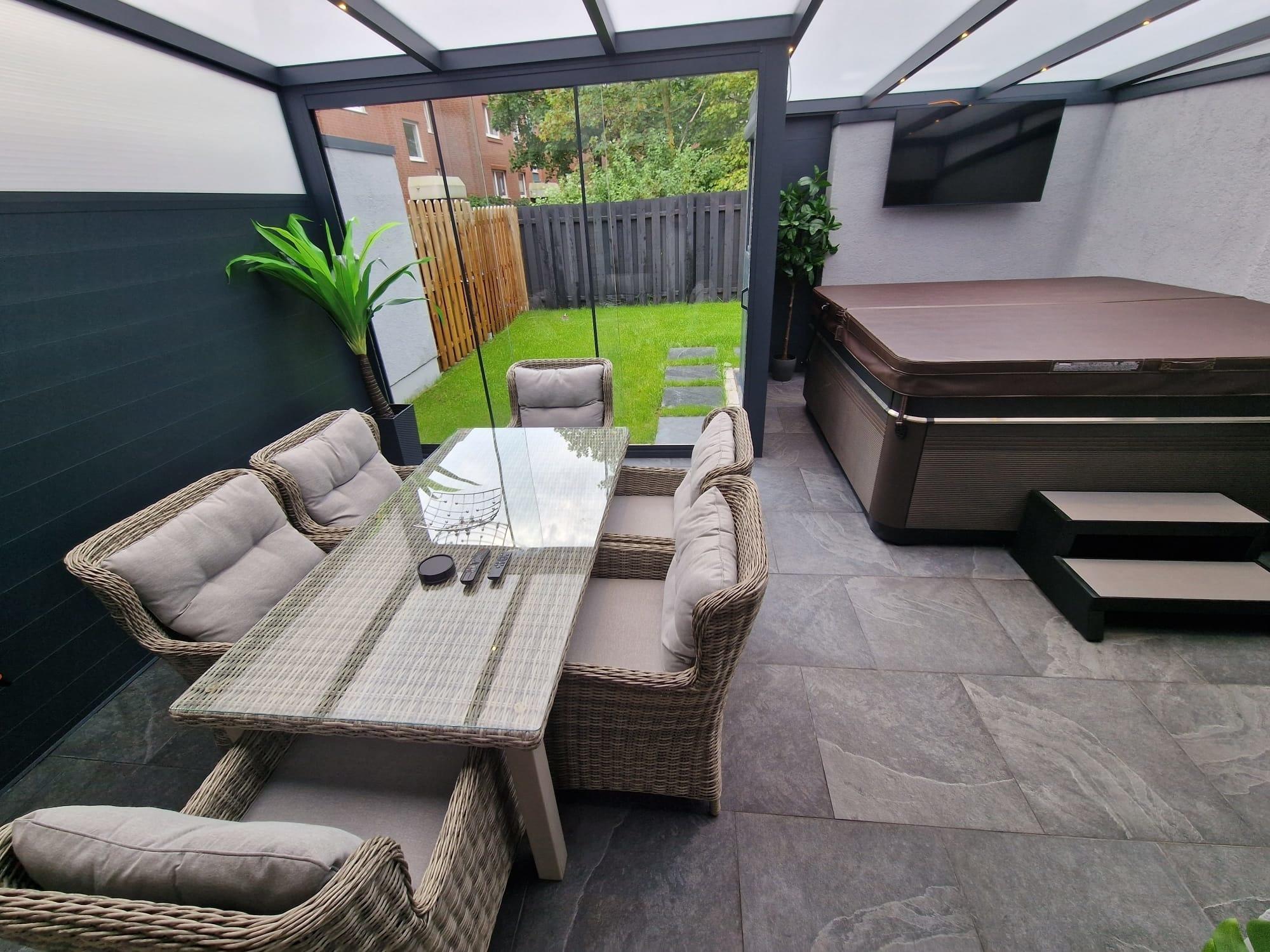Im Erdgeschoss befindet sich das Herzstück des Hauses, das gemütliche, moderne Wohnzimmer mit Zugang zum Garten, Terrasse und dem offen gehaltenen Esszimmer. Unser Wintergarten mit Whirlpool bietet euch die optimale Erholung, mit der Möglichkeit zeitgleich ein Heimkino-Erlebnis durch angrenzenden 55 Zoll Smart-TV zu genießen.