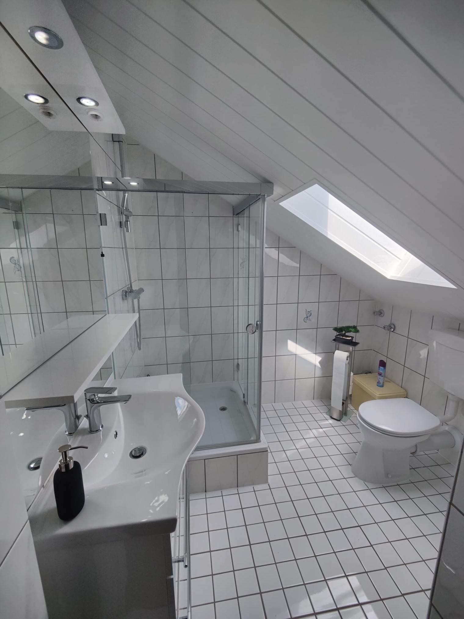 Im ausgebauten Dachgeschoss finden sich insgesamt ein Studio-Zimmer mit 4 Einzelbetten sowie ein weiteres Schlafzimmer mit Ensuite-Badezimmer inklusive praktischer Dusche.