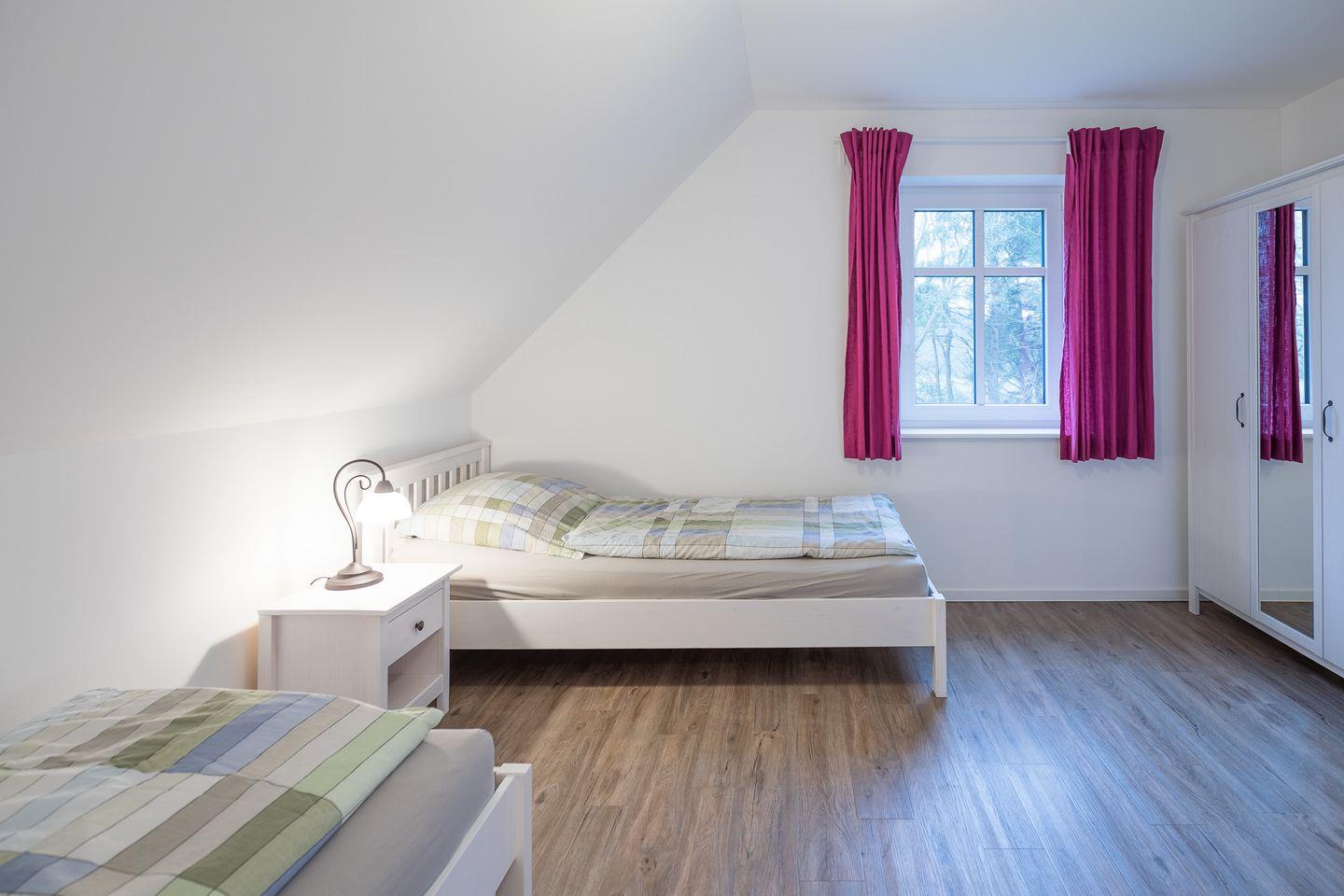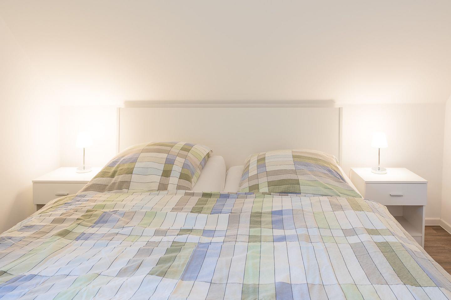 Das ca. 120 qm große Ferienhaus ist modern und exklusiv im skandinavischen Charme eingerichtet. Die drei Schlafzimmer im Obergeschoss bieten Platz für bis zu 6 Personen. Ein Schlafzimmer wurde mit zwei Einzelbetten ausgestattet, die anderen jeweils mit einem Doppelbett (180 x 200). Ihre Betten sind bei Ihrer Ankunft liebevoll bezogen. Eines der Schlafzimmer ist zusätzlich mit einem TV ausgestattet.
