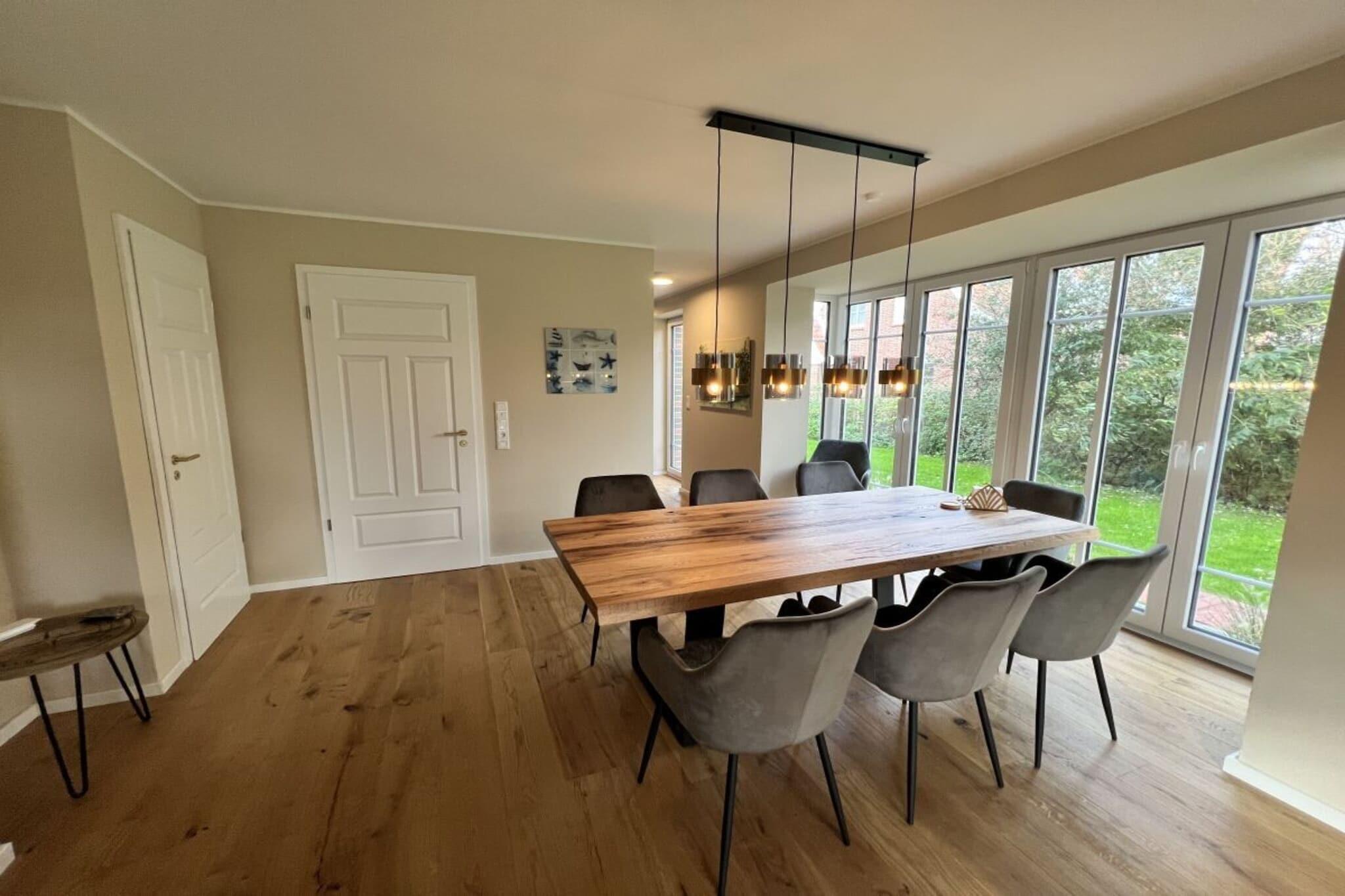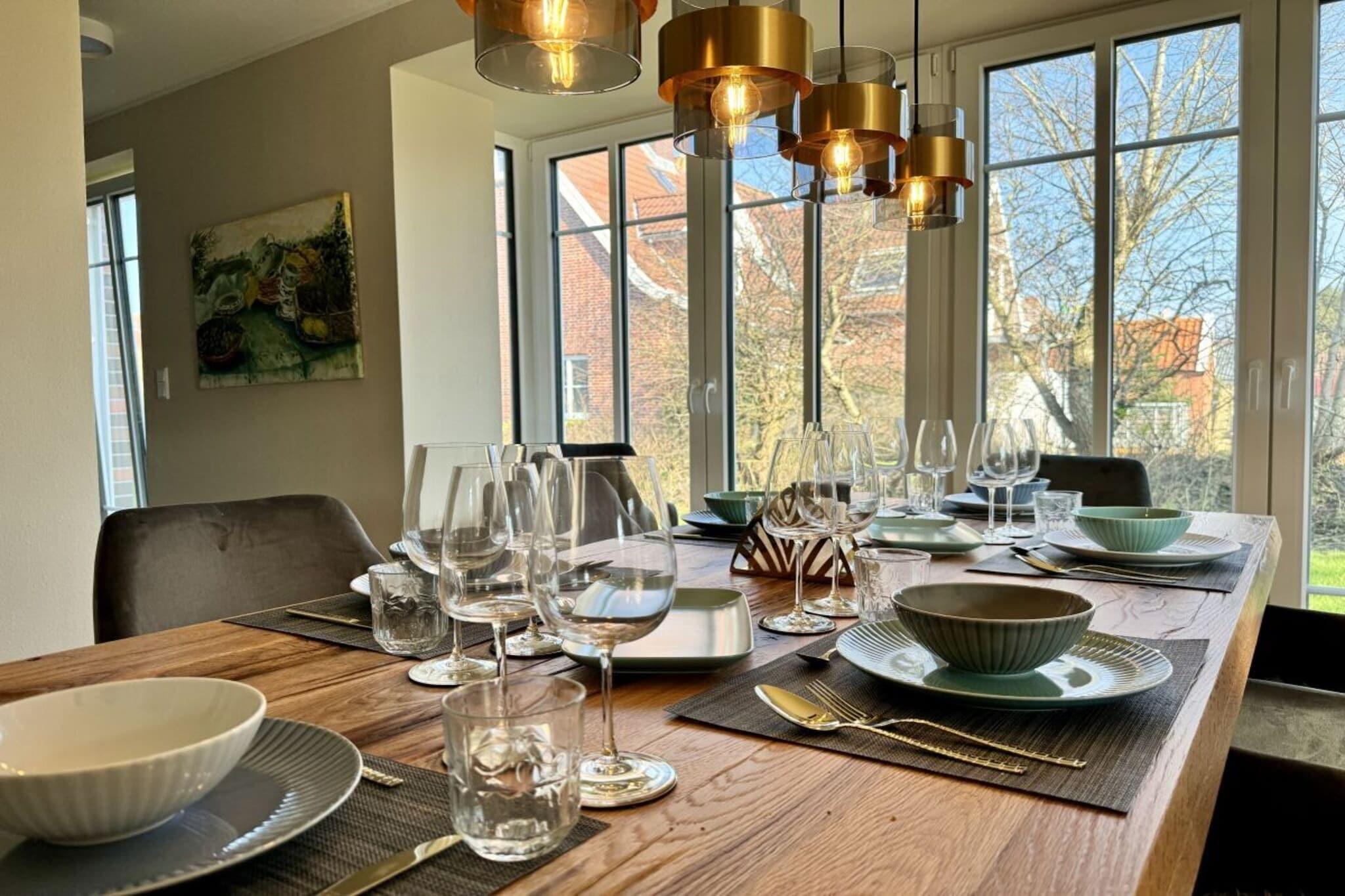 This stylish 114 m² holiday apartment extends over three floors and offers two bedrooms and three bathrooms. The spacious living and dining area and the fully equipped kitchen with Miele appliances invite you to relax. You can relax in the large garden with terrace and garden furniture. Additional amenities such as a washing machine, dryer, SmartTVs in all rooms and a games console round off the offer. Perfect for a comfortable and relaxing holiday!