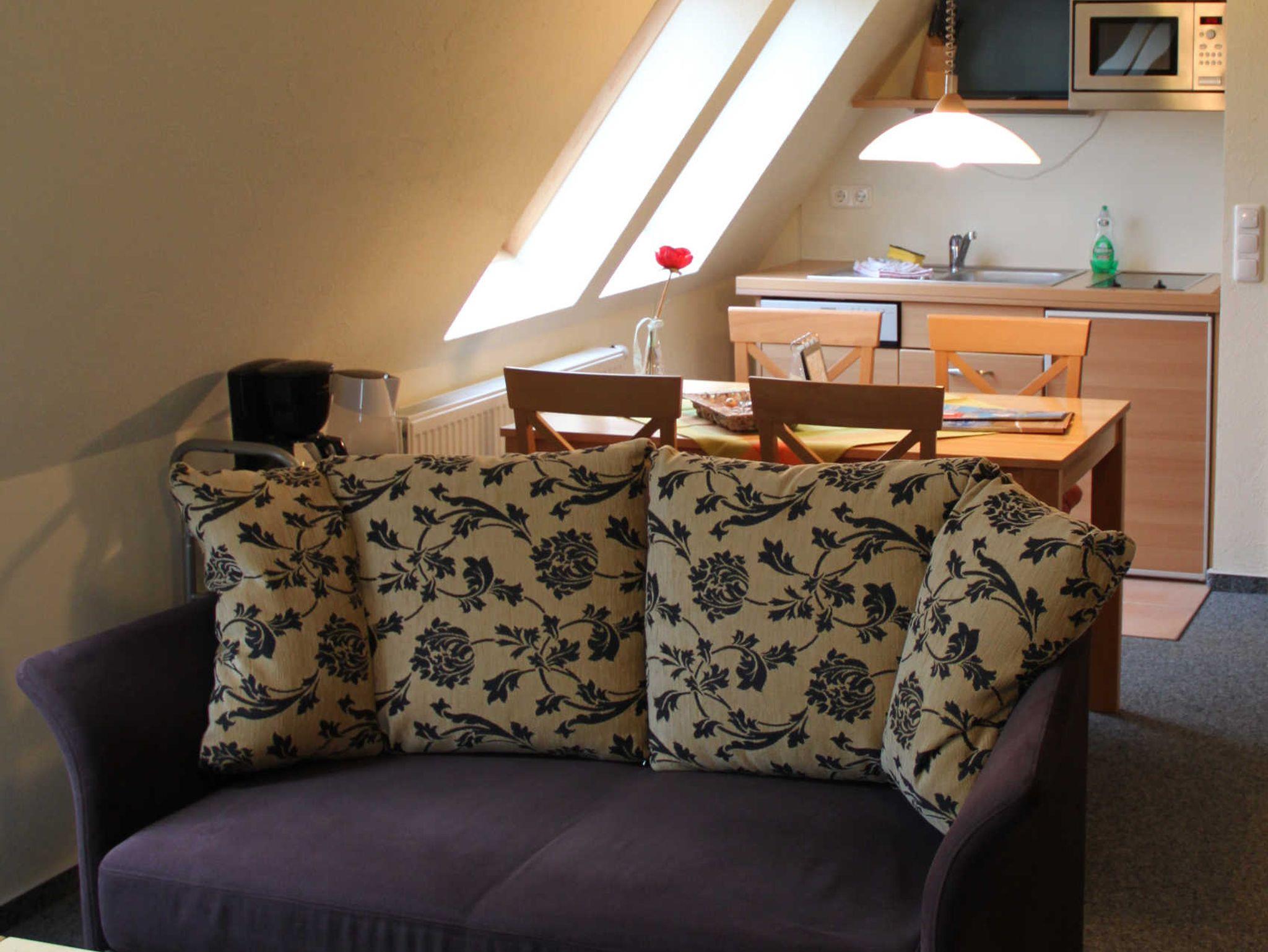 Im Haus befinden sich Ferienwohnungen und Maisonette-Wohnungen mit Gartenanteil.
