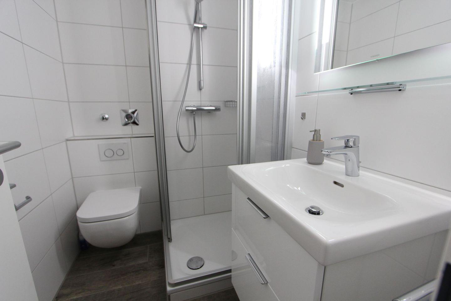 Obergeschoss, ca. 53 m², 1 Wohnzimmer, 1 Schlafzimmer (Doppelbett), 1 Schlafzimmer (2 Einzelbetten), Bad, komplett ausgestattete Einbauküche, TV , HiFi-Anlage, Kinderbett, Hochstuhl, Bettwäsche, Handtücher, Balkon + 2 Stühle, Münz-Waschmaschine und Trockner im separaten Hauswirtschaftsraum