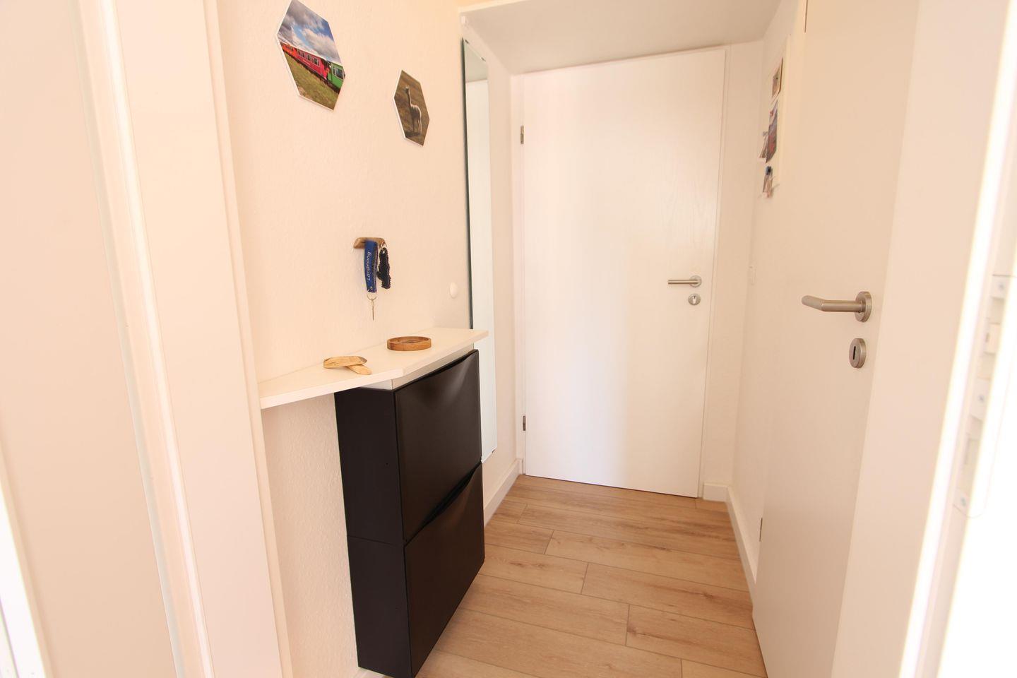 Sie bietet Euch auf ca. 40 m² ausreichend Platz für bis zu 3 Personen. Im hellen Wohnzimmer befindet sich eine Essecke und eine gemütliche Couch.