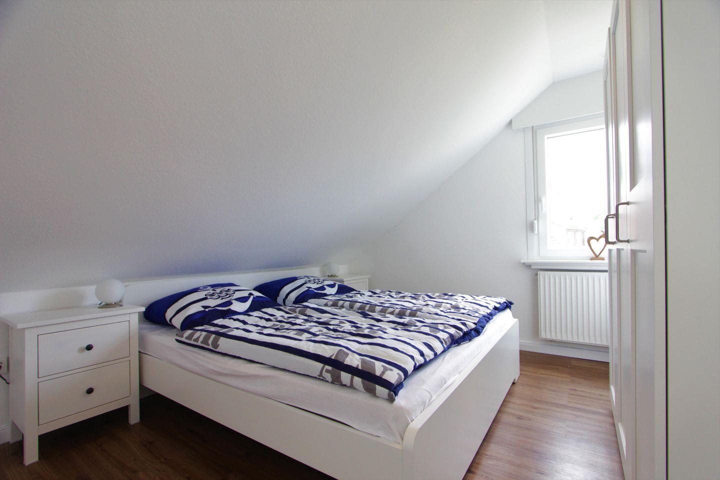 Im Obergeschoss / Dachgeschoss finden Sie zwei gemütliche Schlafzimmer mit großen Doppelbetten mit den Maßen 1,80 m x 2,00 m.