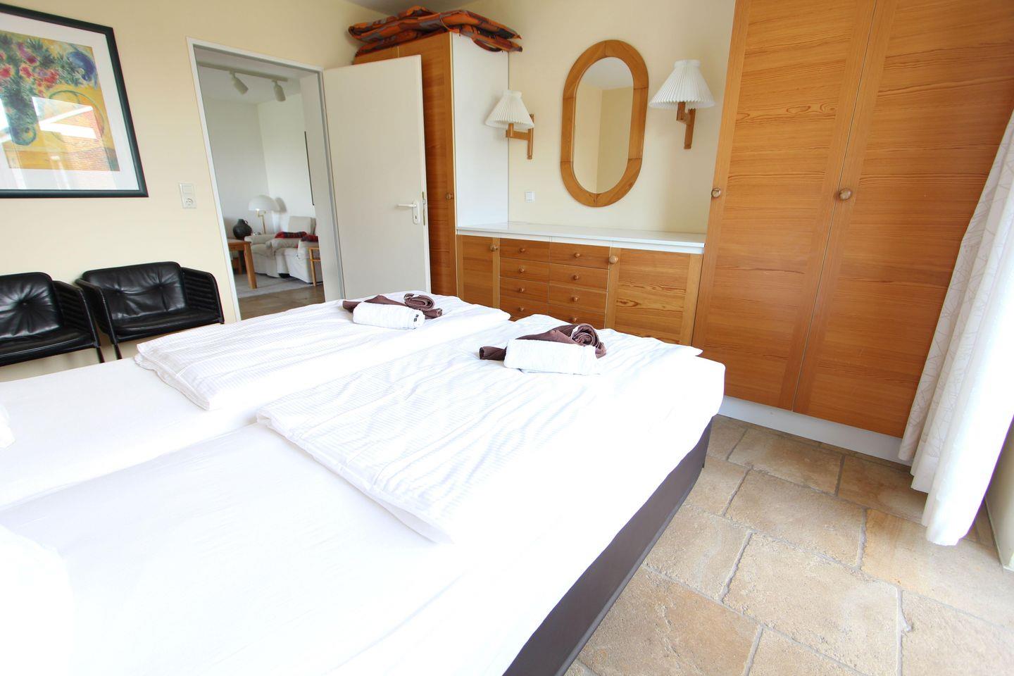 Das Hauptschlafzimmer ist mit einem modernen Boxspringbett ausgestattet (200 cm x 210 cm).
